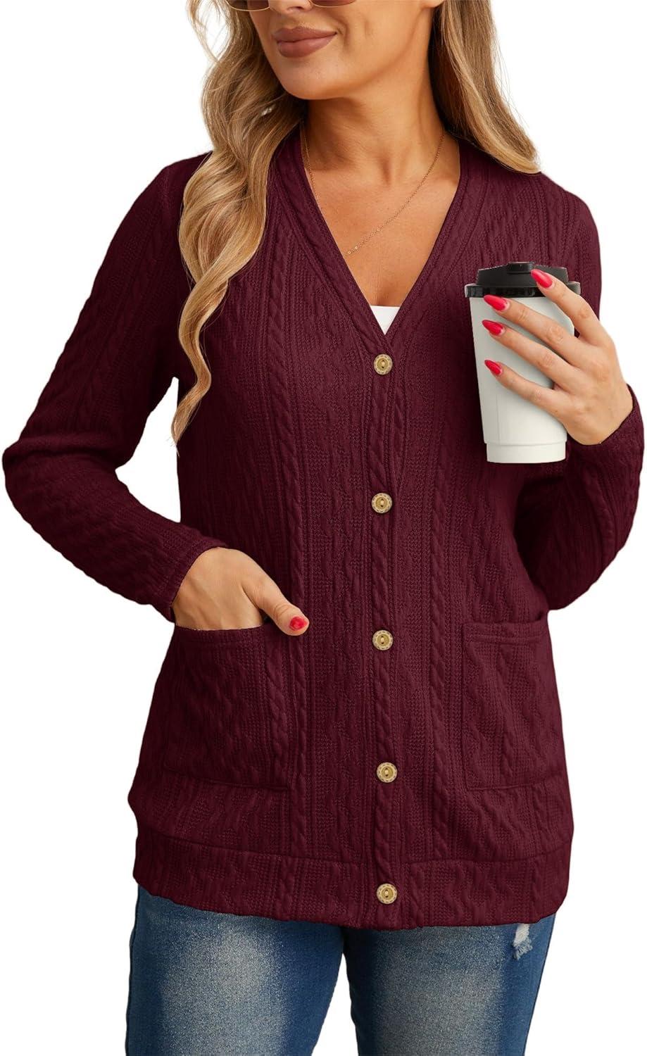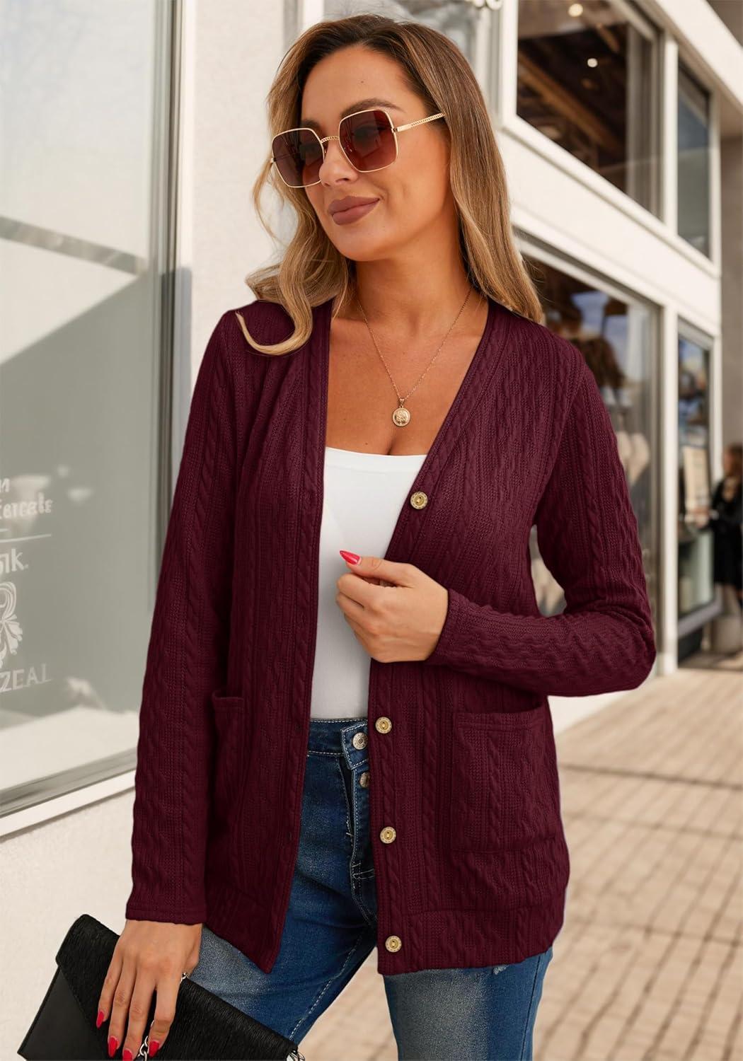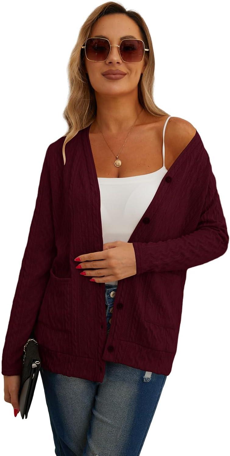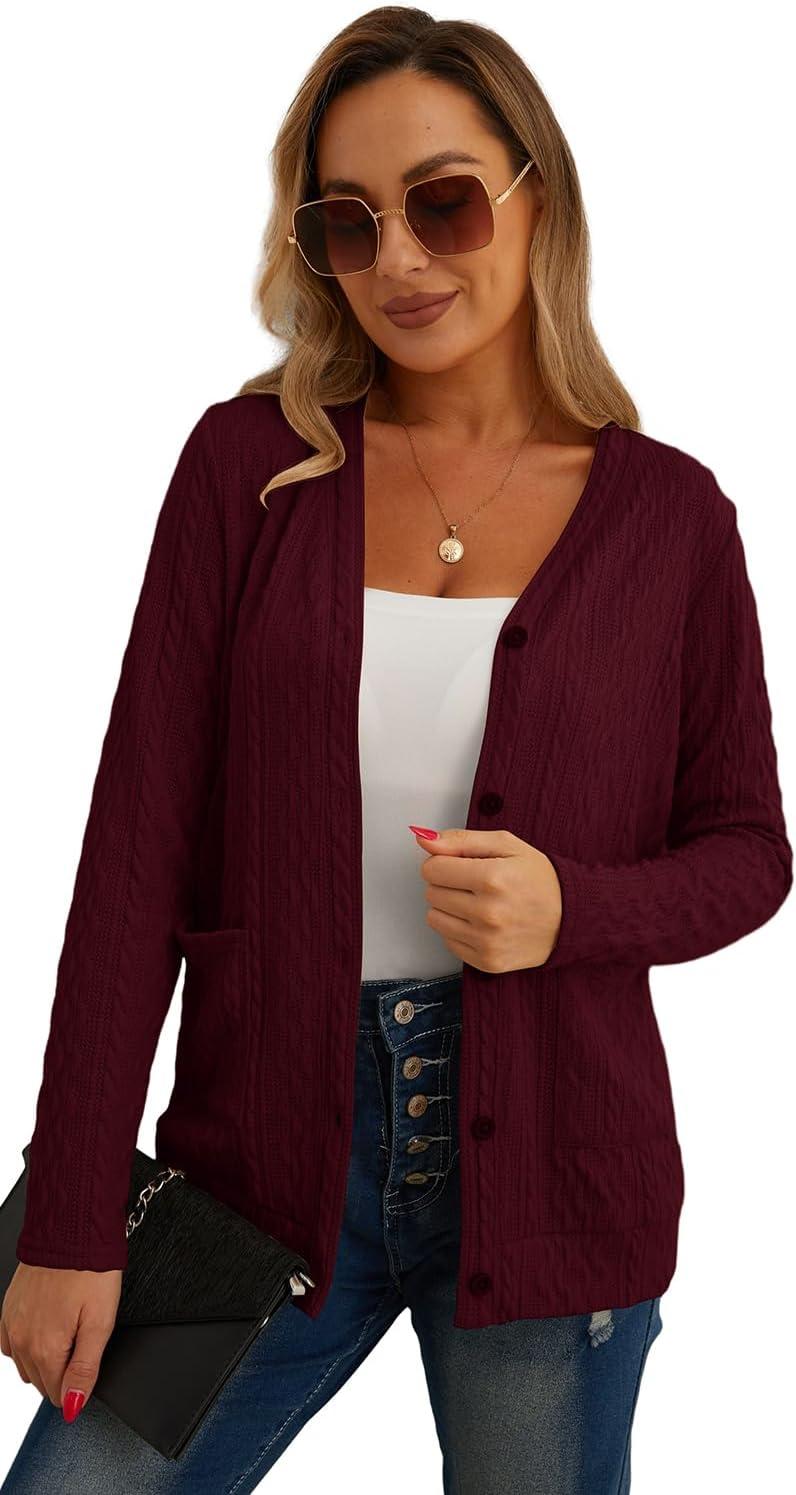GRECERELLE Women’s Lightweight Cardigan Sweater Casual Long Sleeve Knit Cardigan Open Front Outwear Jacket with Pockets(07 Wine Red)