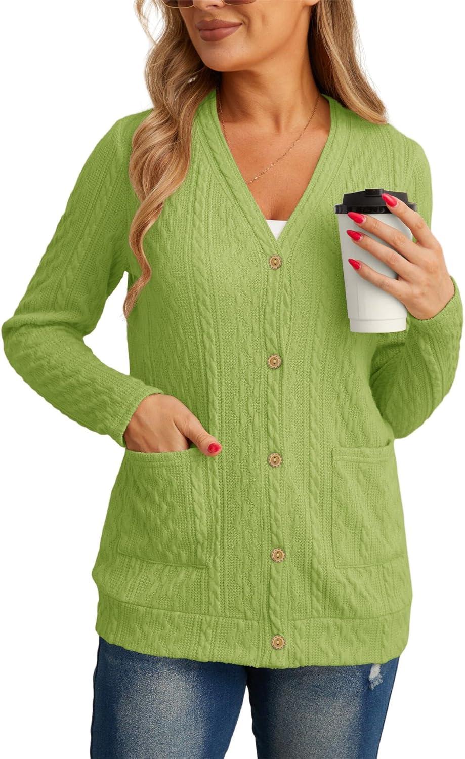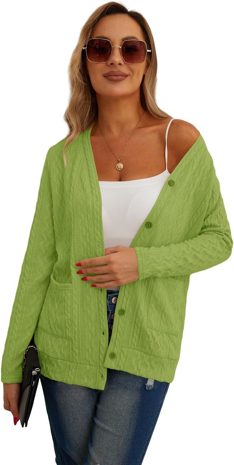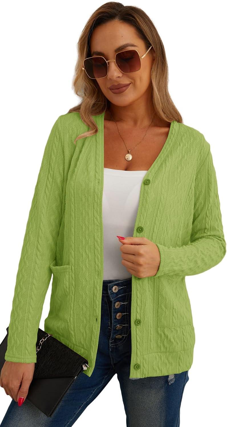 GRECERELLE Women's Lightweight Cardigan Sweater Casual Long Sleeve Knit Cardigan Open Front Outwear Jacket with Pockets(11 Grass Green)