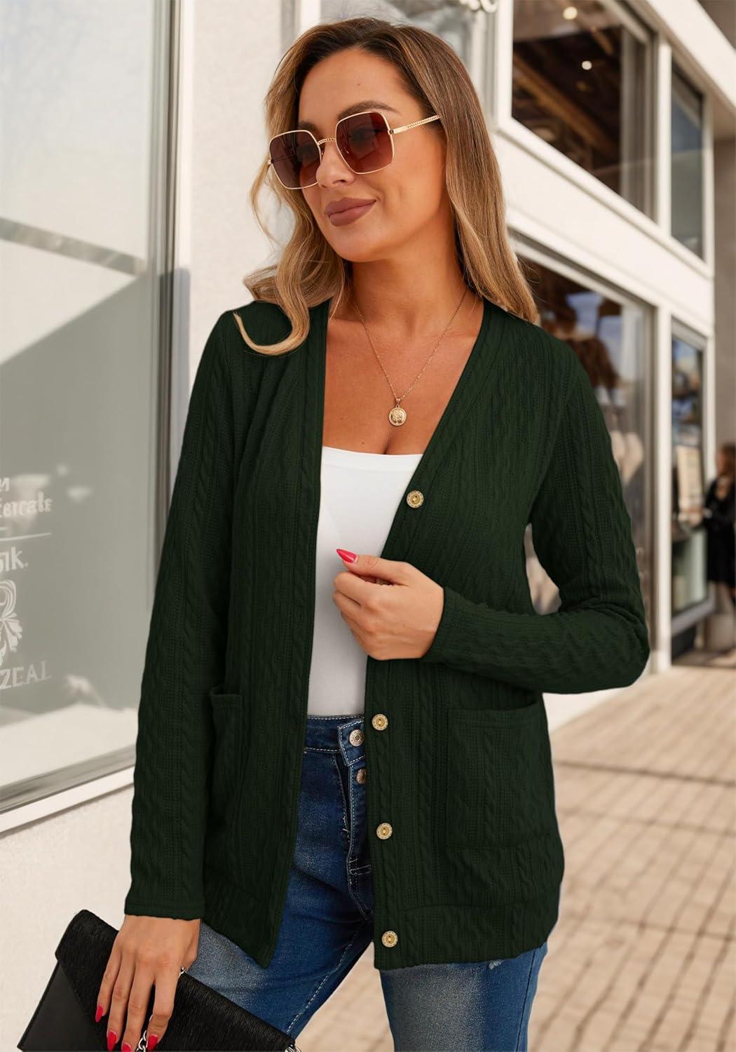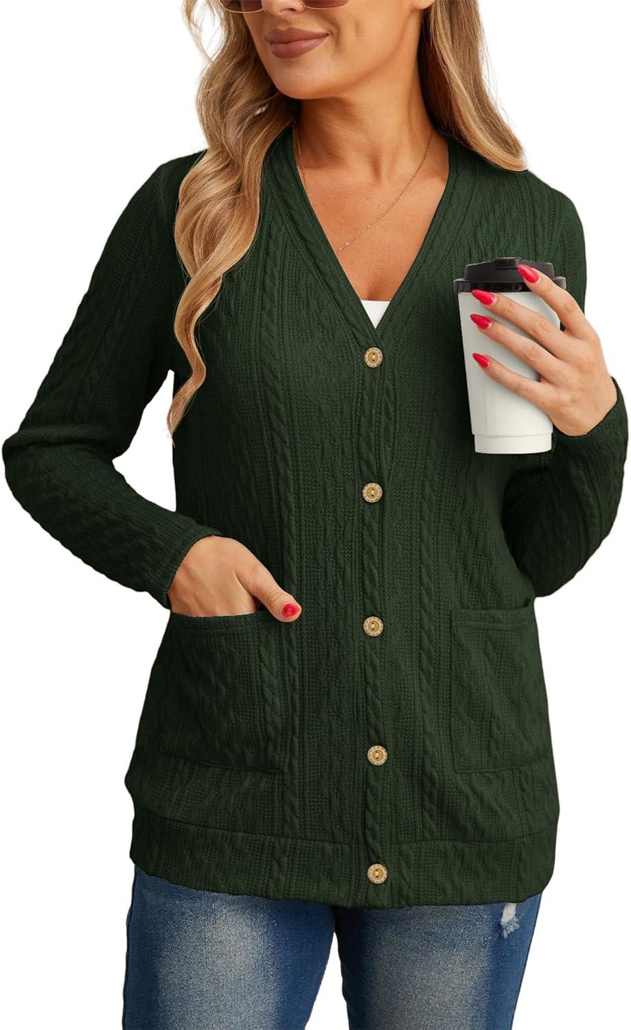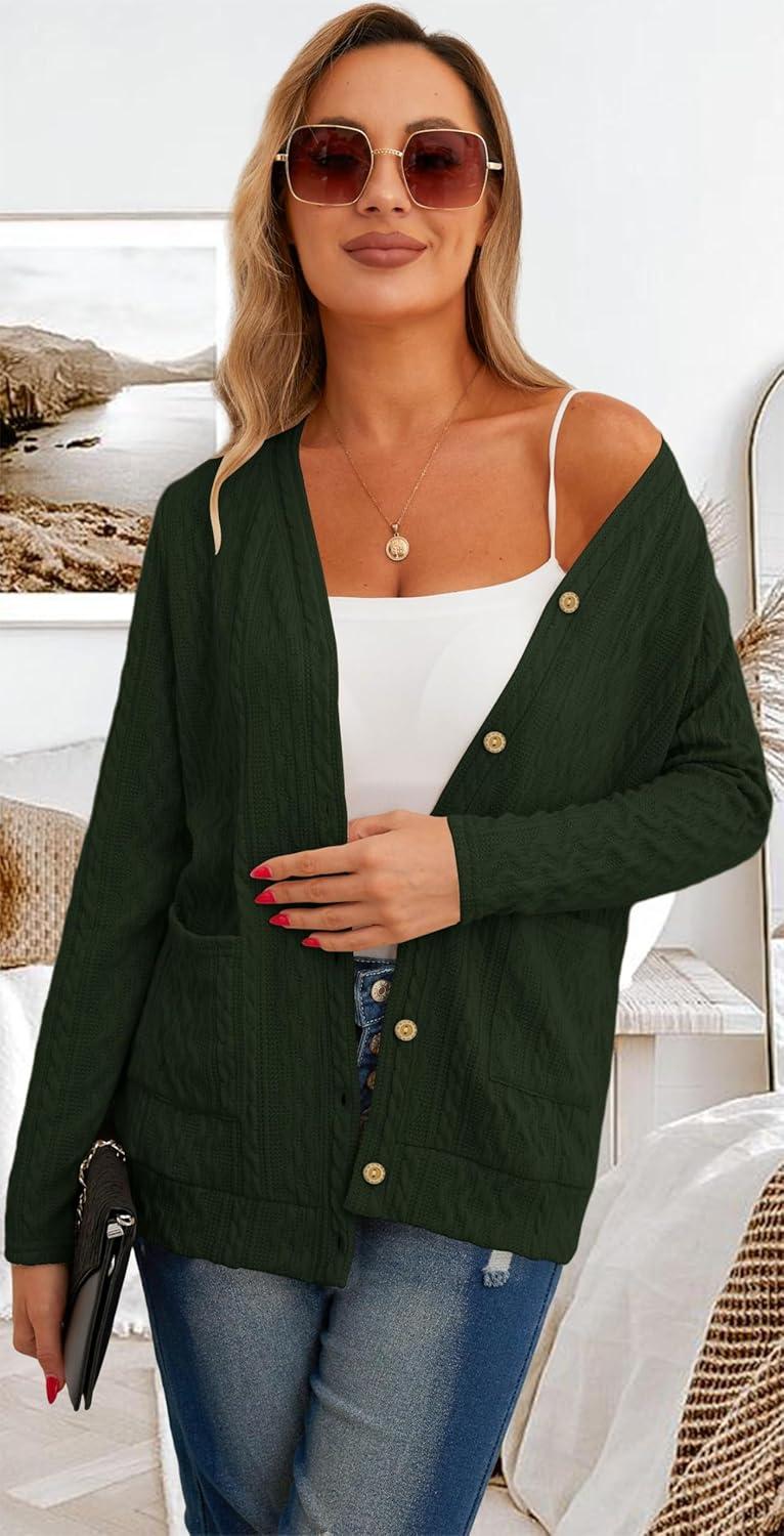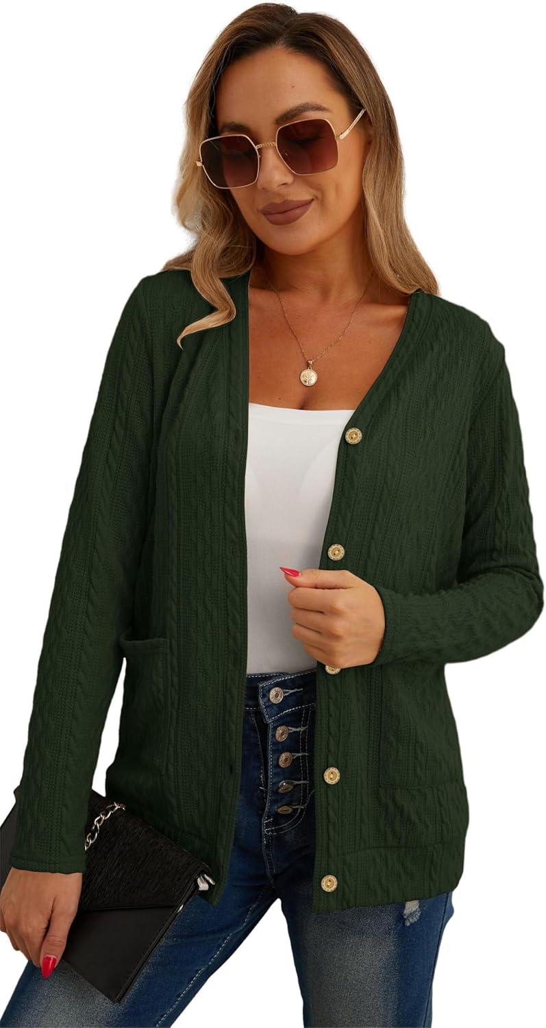 GRECERELLE Women’s Lightweight Cardigan Sweater Casual Long Sleeve Knit Cardigan Open Front Outwear Jacket with Pockets(16 Army Green)