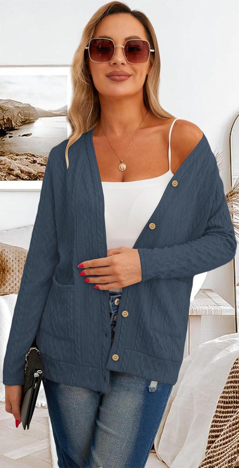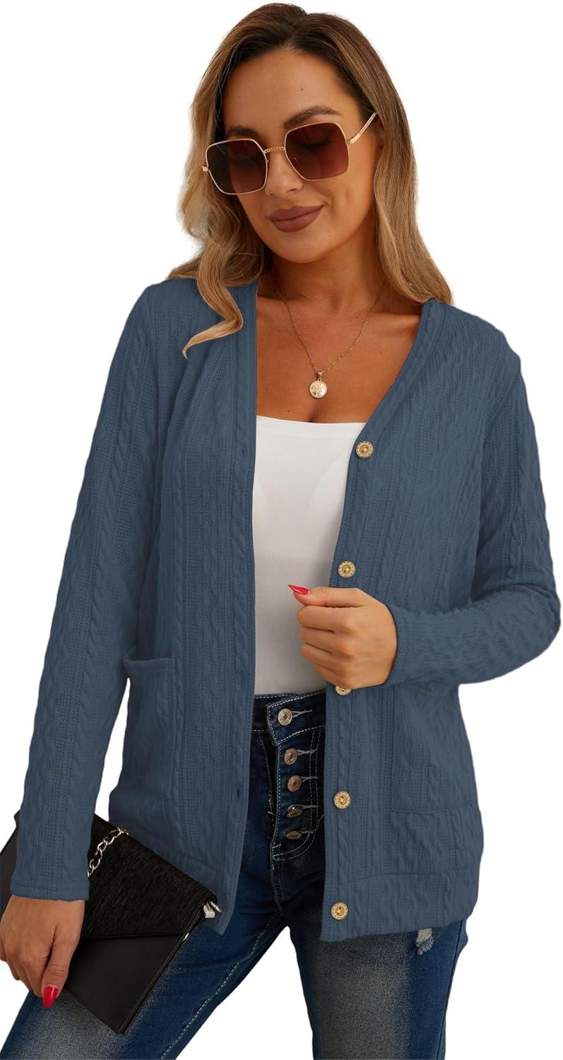 GRECERELLE Women’s Lightweight Cardigan Sweater Casual Long Sleeve Knit Cardigan Open Front Outwear Jacket with Pockets(17 Denim Blue)