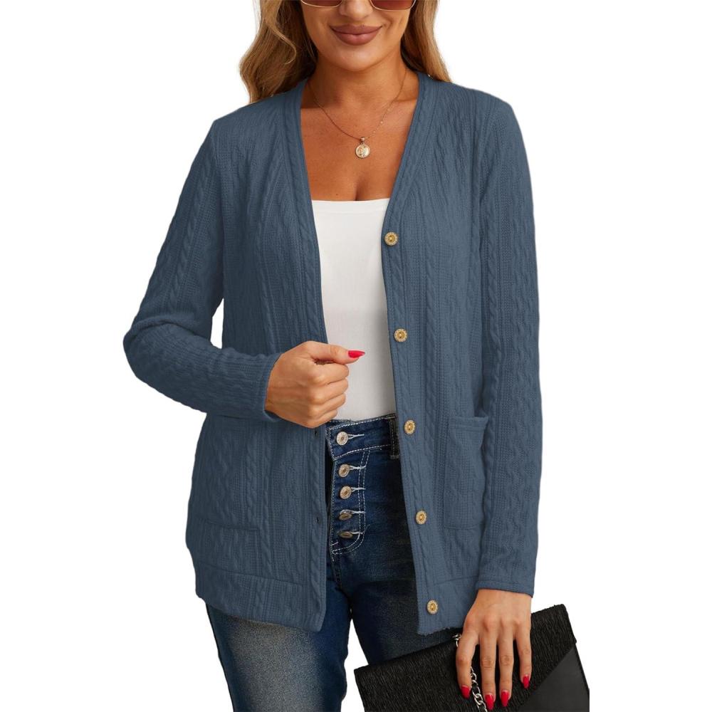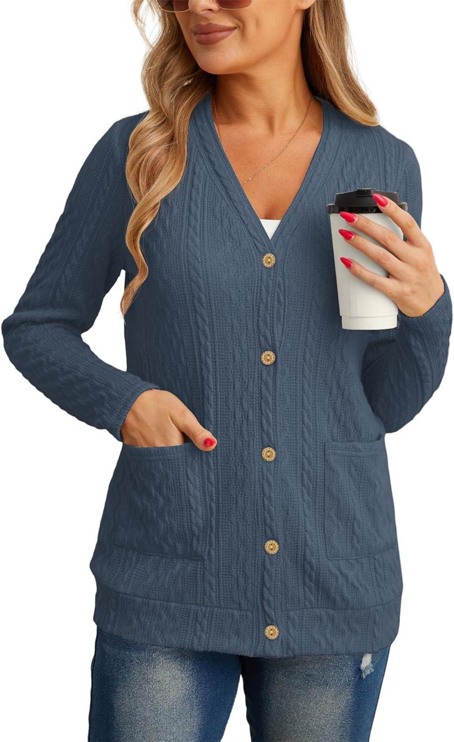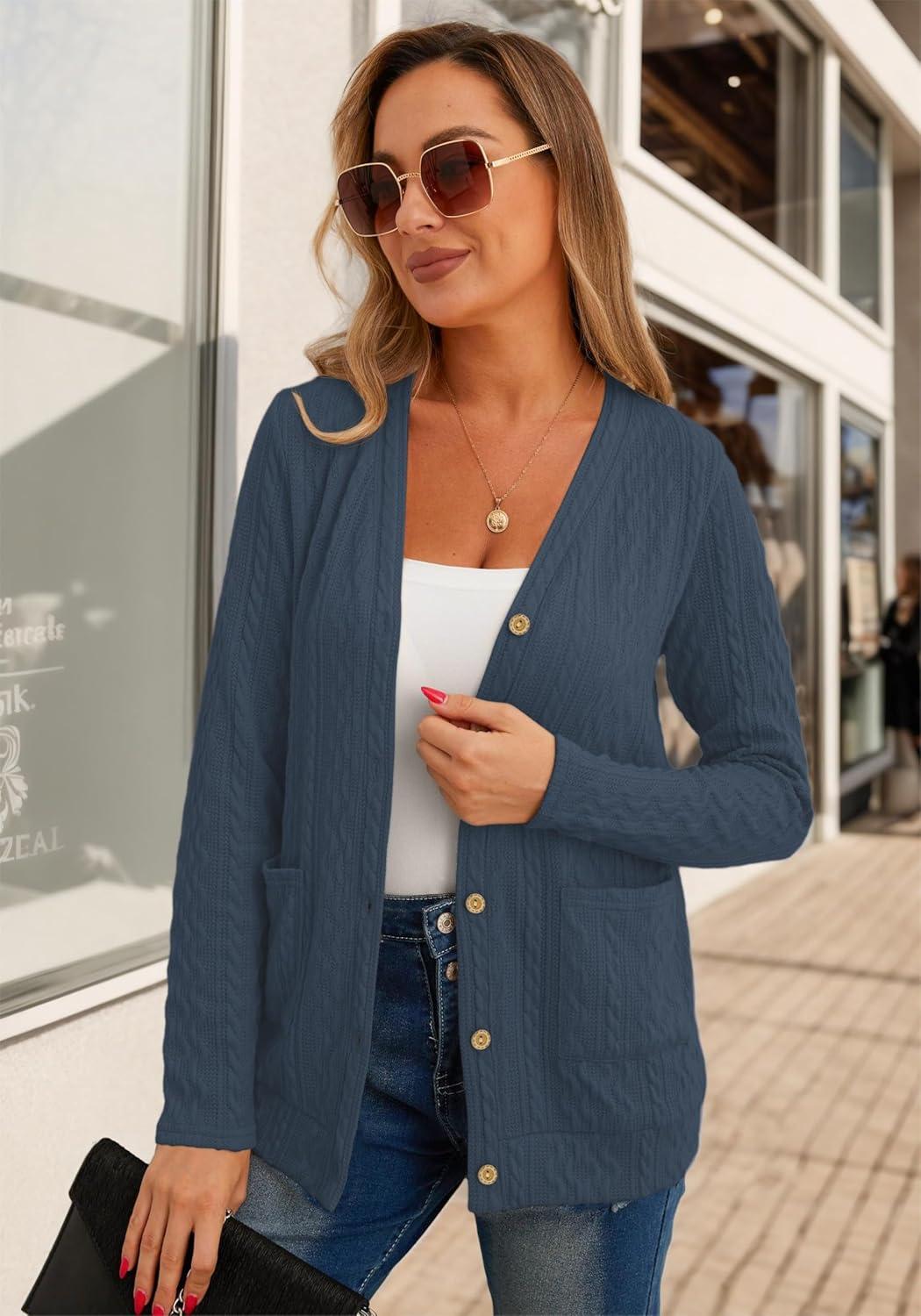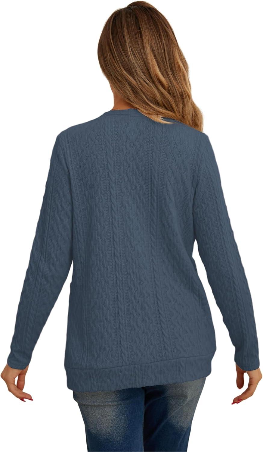 GRECERELLE Women's Lightweight Cardigan Sweater Casual Long Sleeve Knit Cardigan Open Front Outwear Jacket with Pockets(17 Denim Blue)