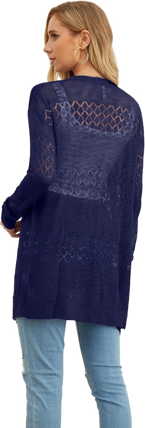 GRECERELLE Women's Lightweight Crochet Long Sleeve Loose Casual Open Front Cardigan Drape Sweaters Boho Summer Beach Coverups(Navy Blue)