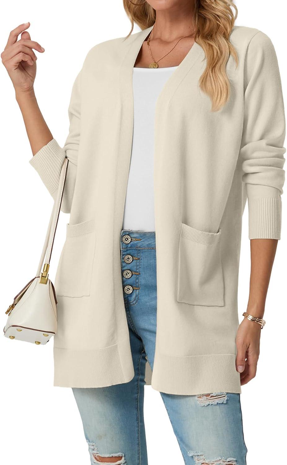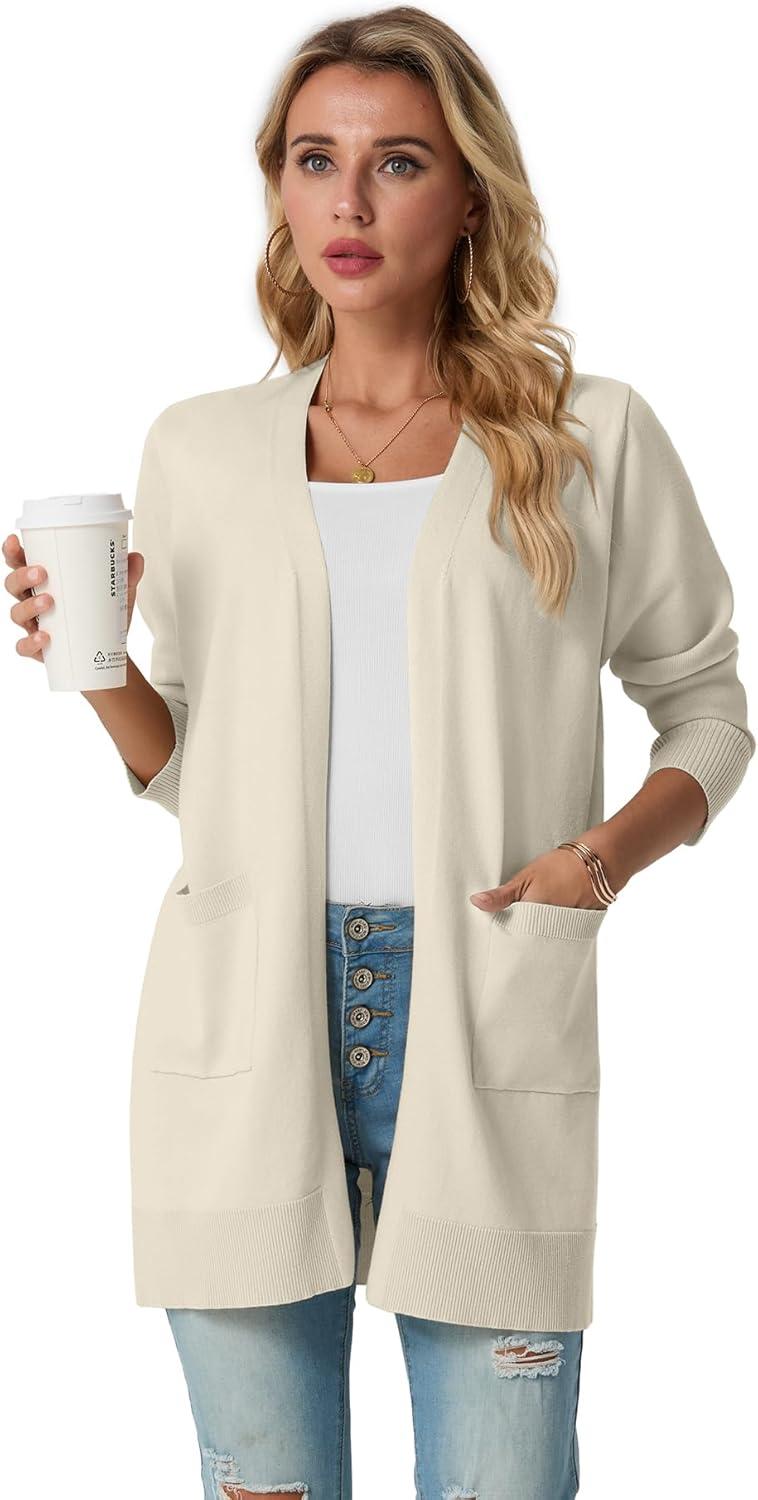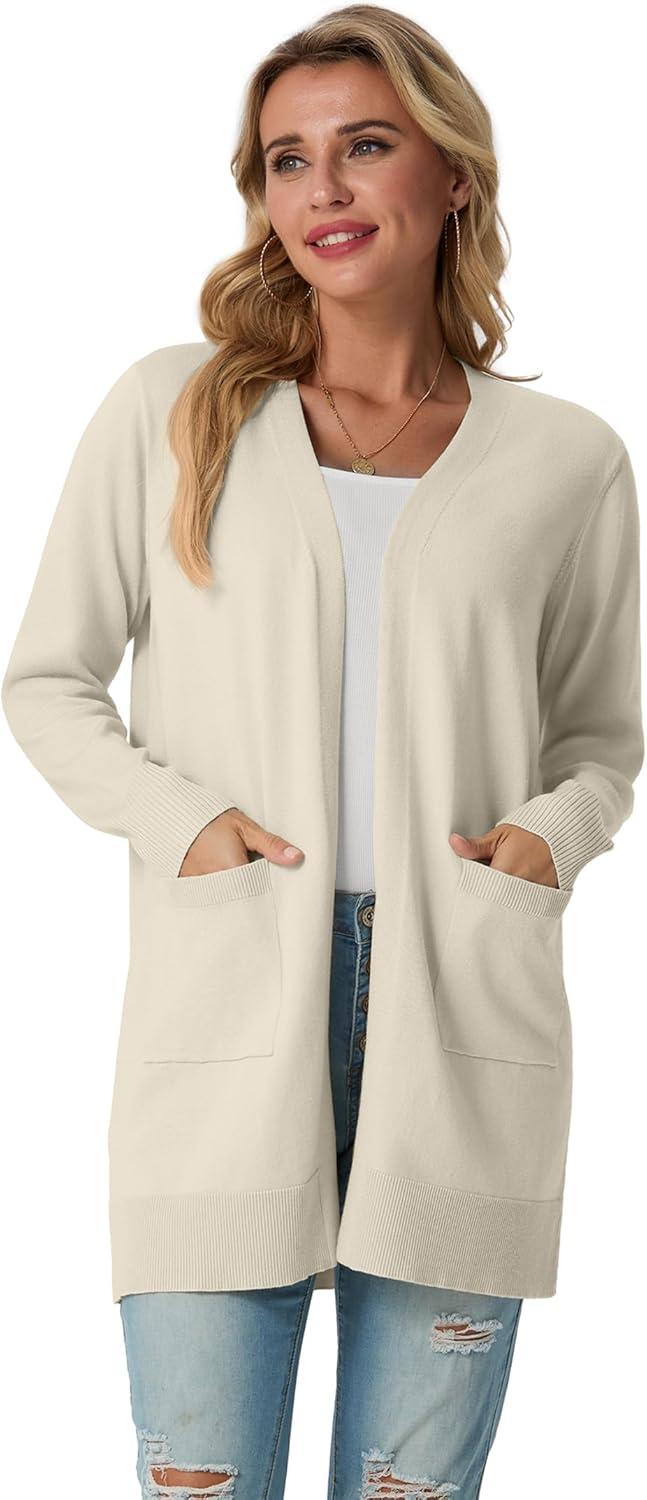 GRECERELLE Womens Lightweight Open Front Casual V-Neck Long Cardigan Sweater with Pockets, S-2XL(Oatmeal)