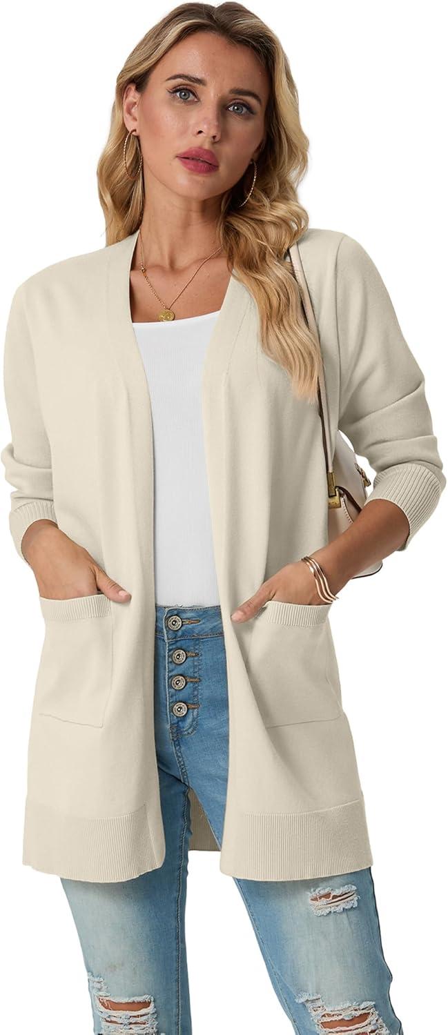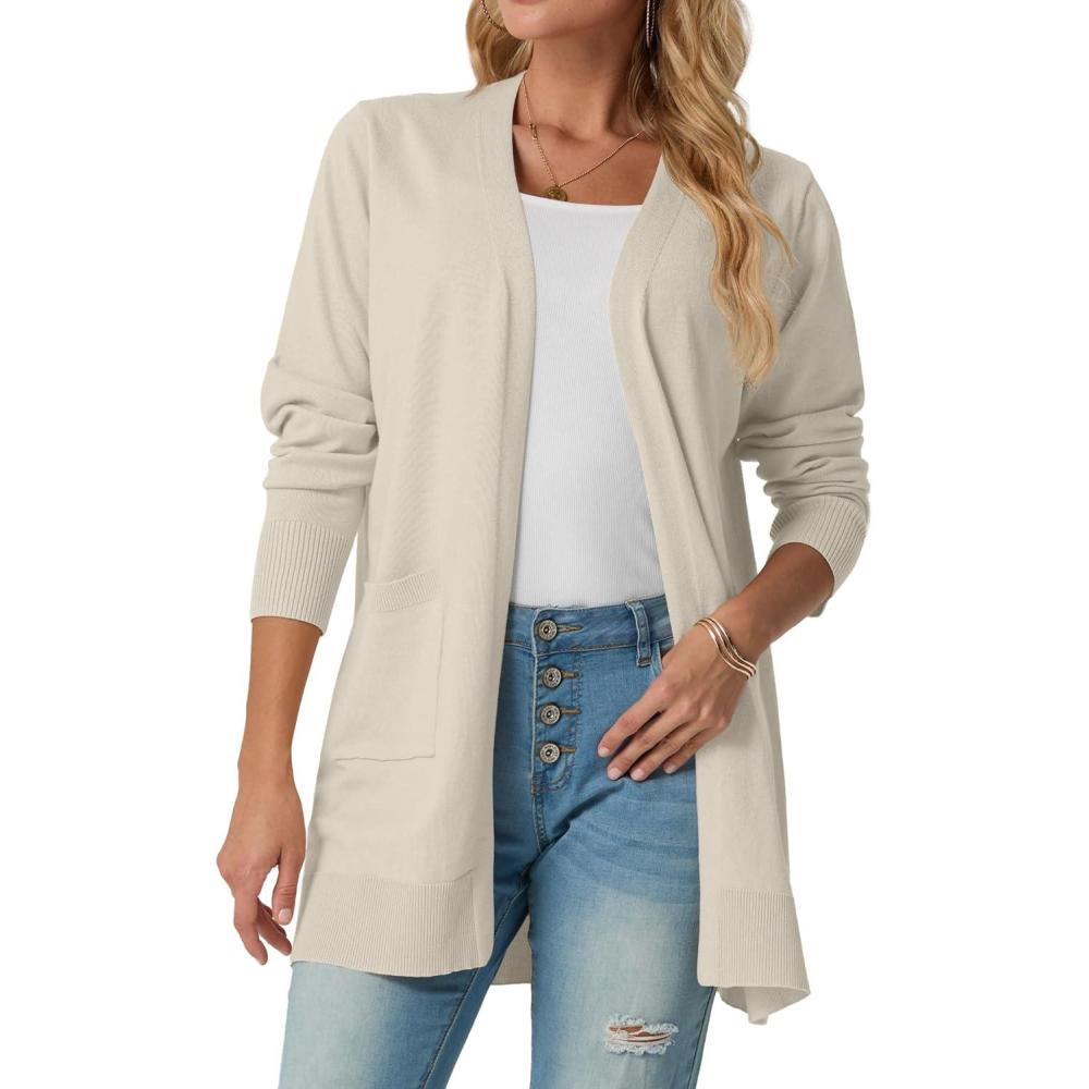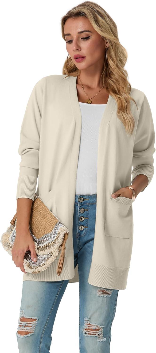 GRECERELLE Womens Lightweight Open Front Casual V-Neck Long Cardigan Sweater with Pockets, S-2XL(Oatmeal)