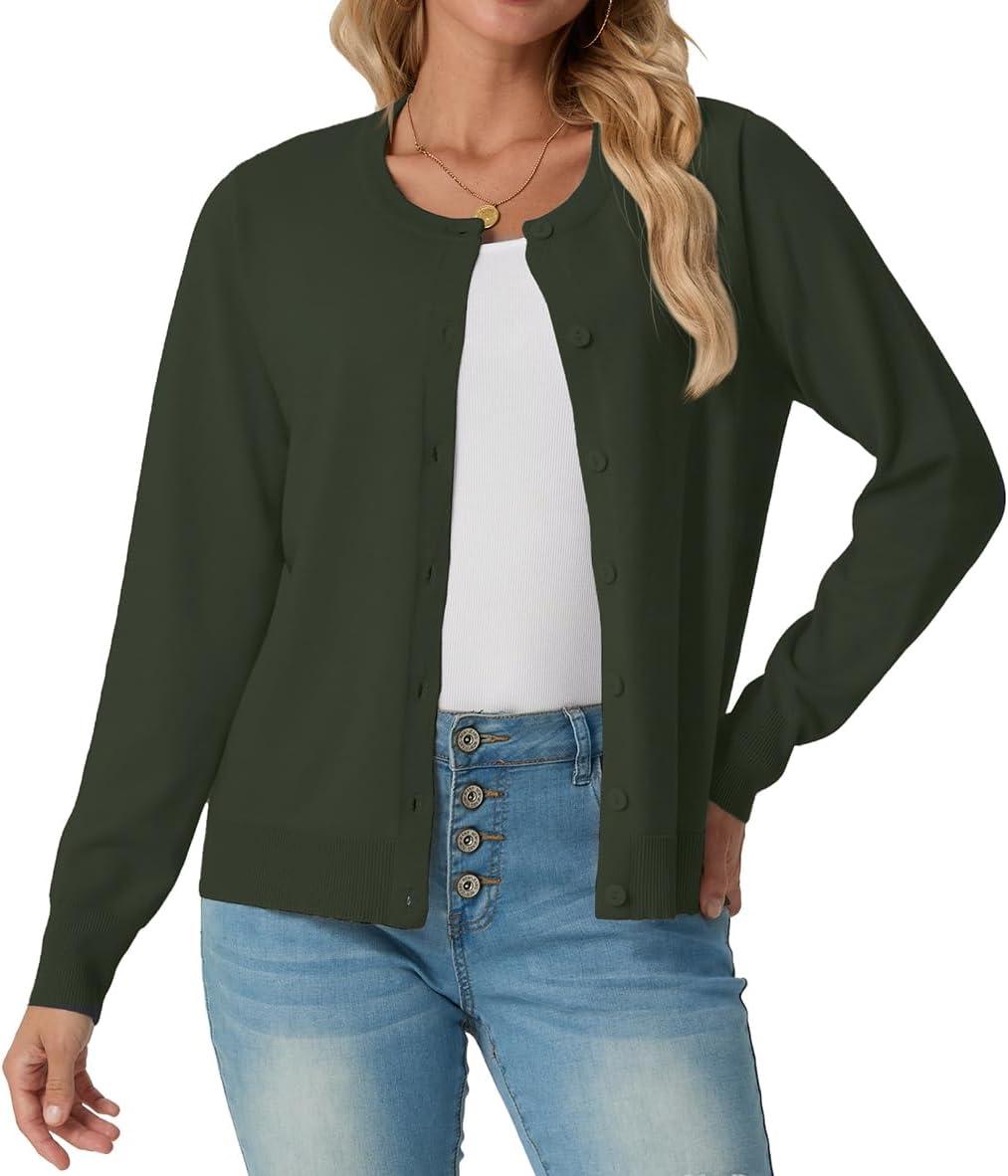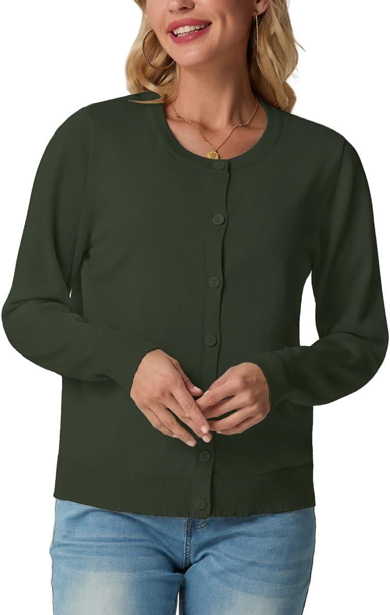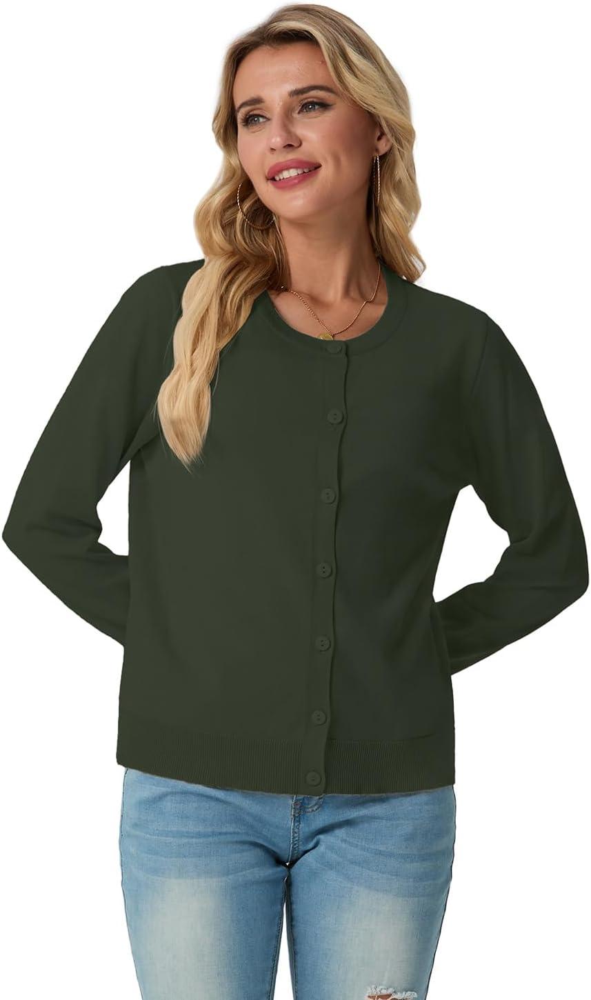 GRECERELLE Women’s Long Sleeve Lightweight Crewneck Casual Cardigan Sweater, S-2XL(Army Green)