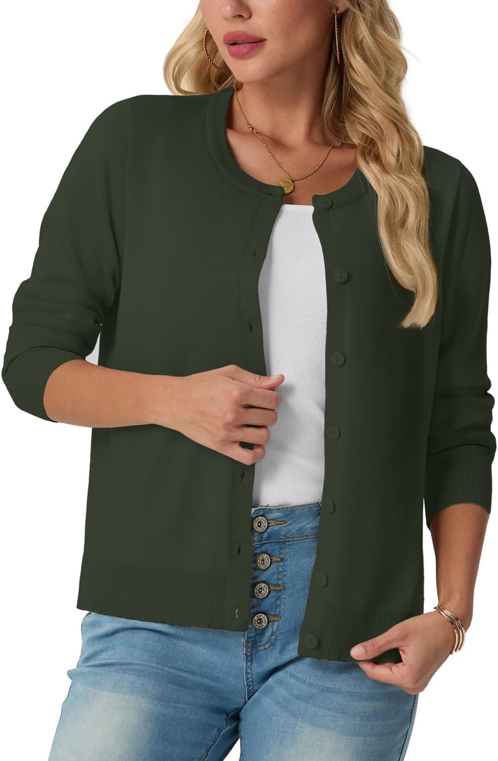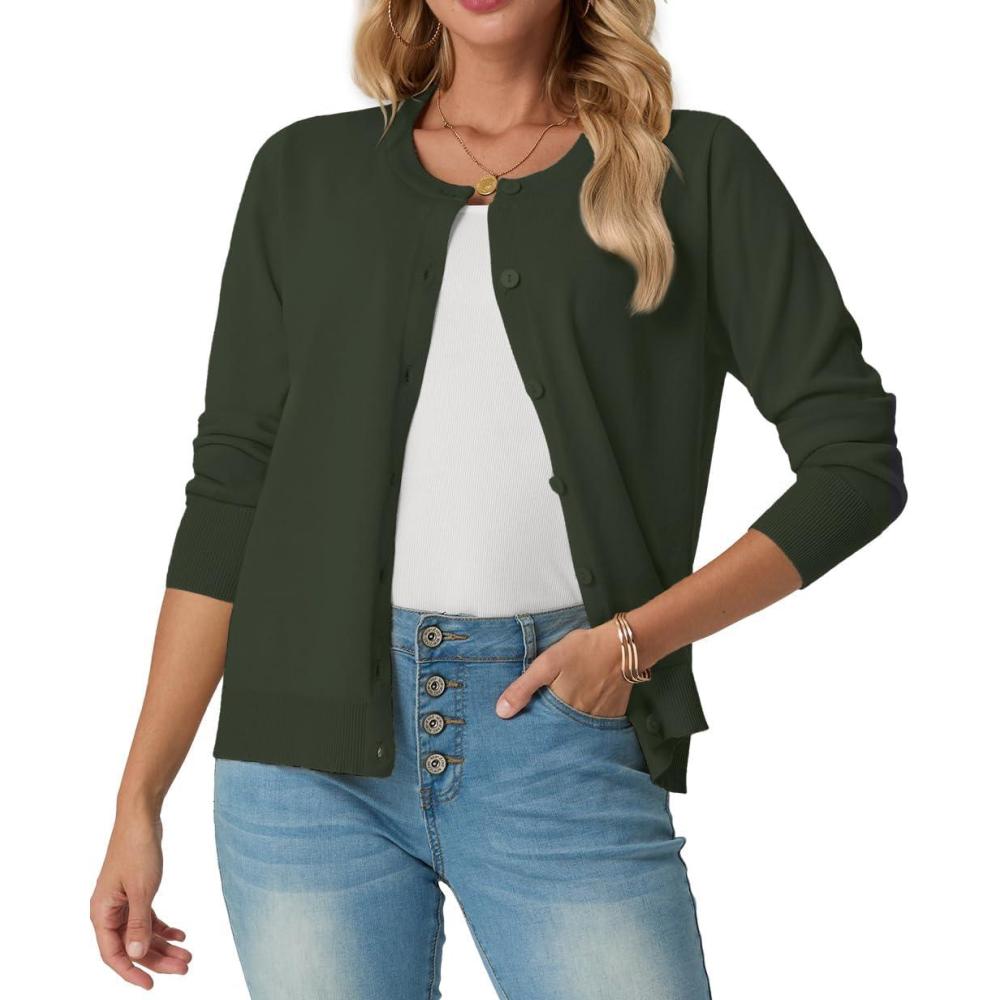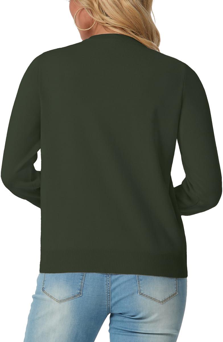 GRECERELLE Women’s Long Sleeve Lightweight Crewneck Casual Cardigan Sweater, S-2XL(Army Green)
