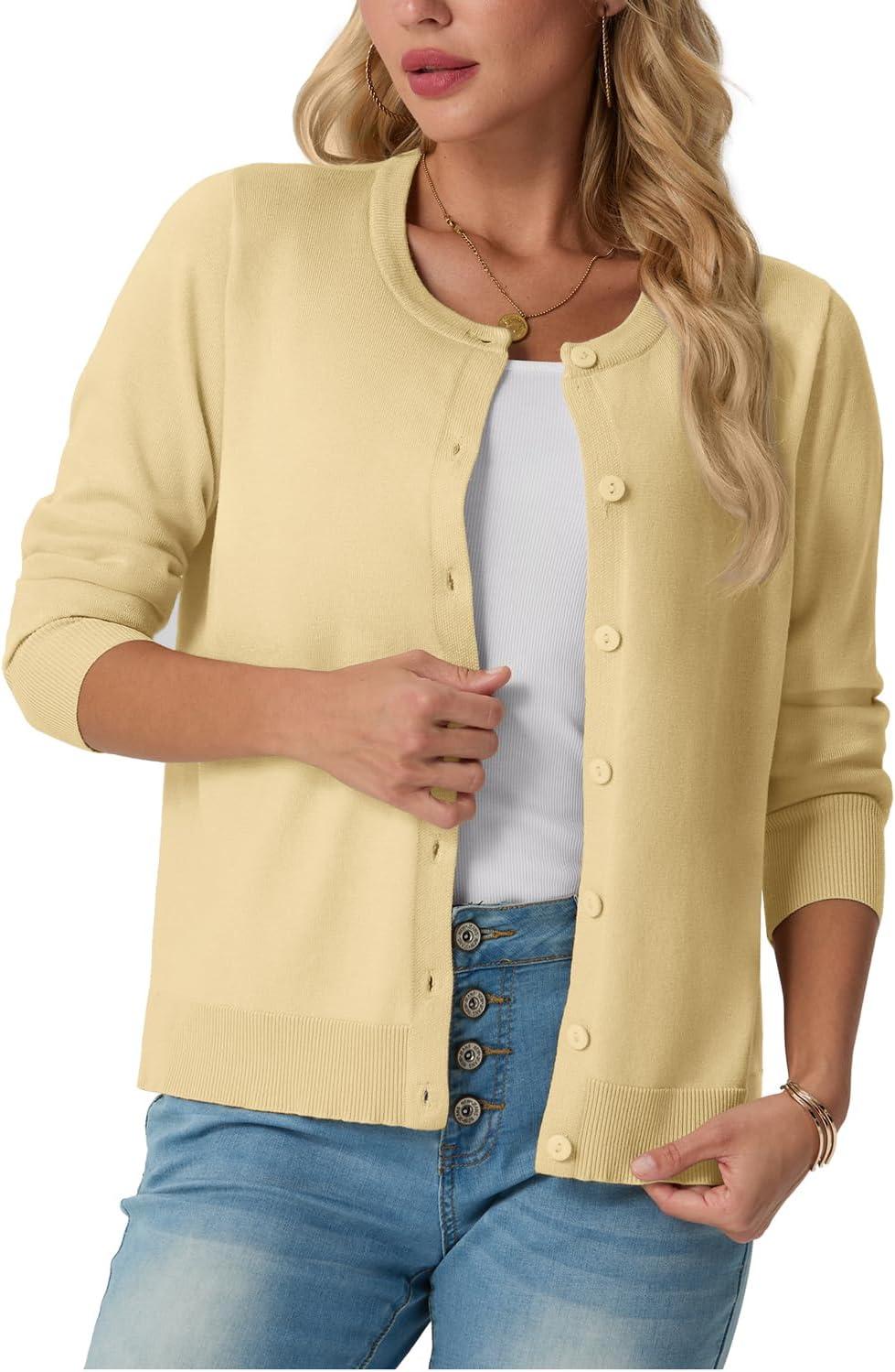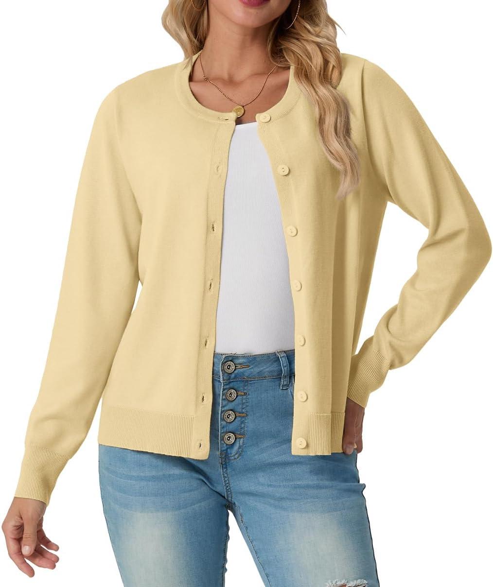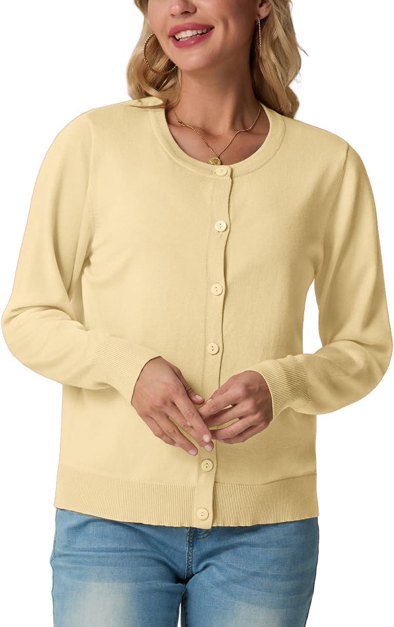 GRECERELLE Women's Long Sleeve Lightweight Crewneck Casual Cardigan Sweater, S-2XL(Butter Yellow)