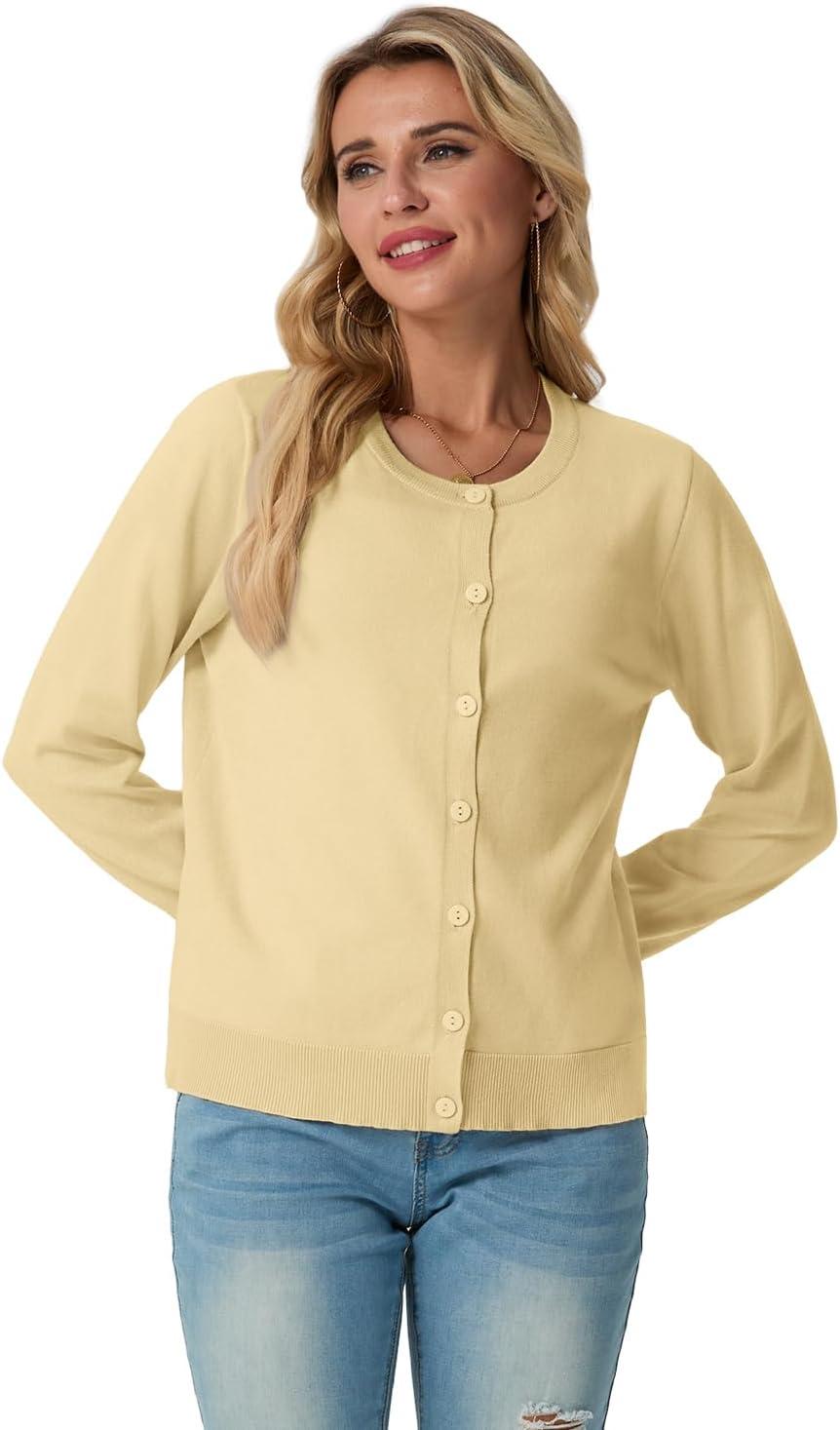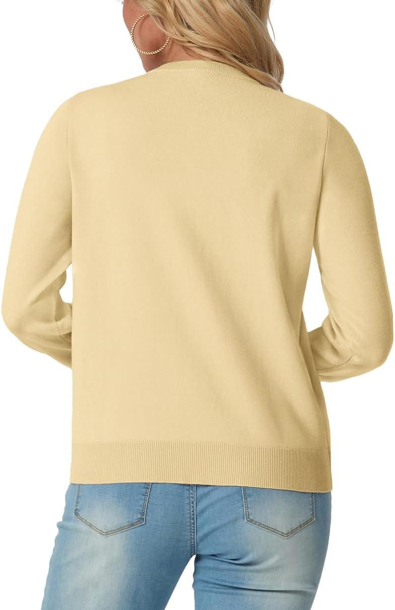 imageGRECERELLE Womens Long Sleeve Lightweight Crewneck Casual Cardigan Sweater S2XLButter Yellow