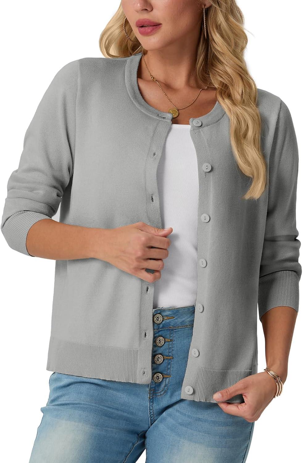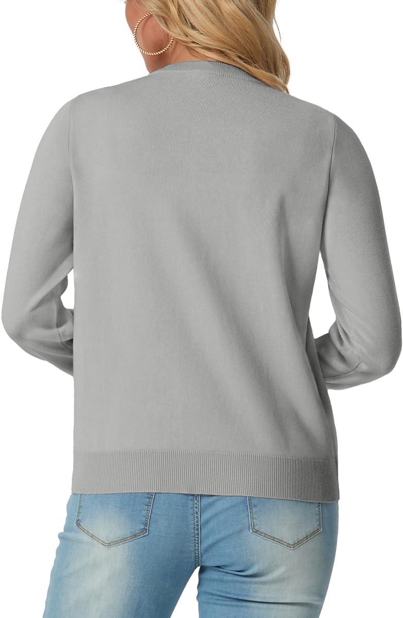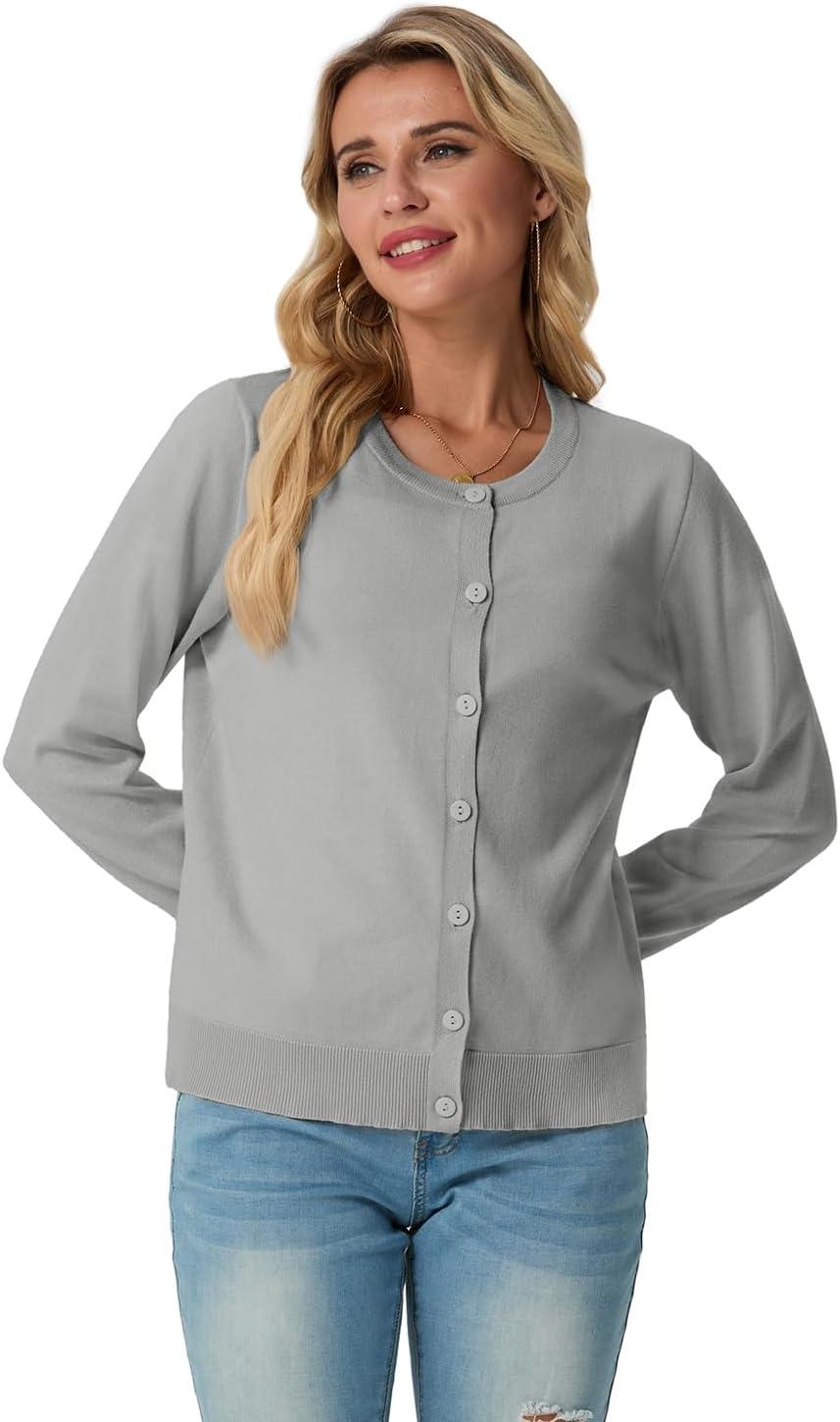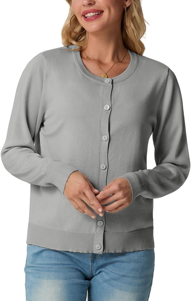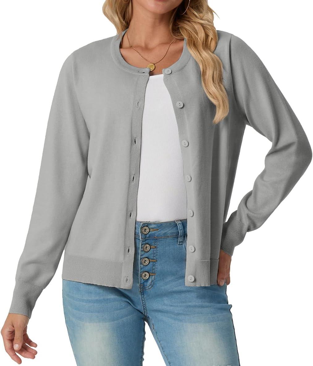 GRECERELLE Women’s Long Sleeve Lightweight Crewneck Casual Cardigan Sweater, S-2XL(Light Grey)