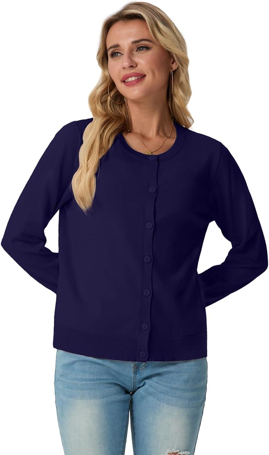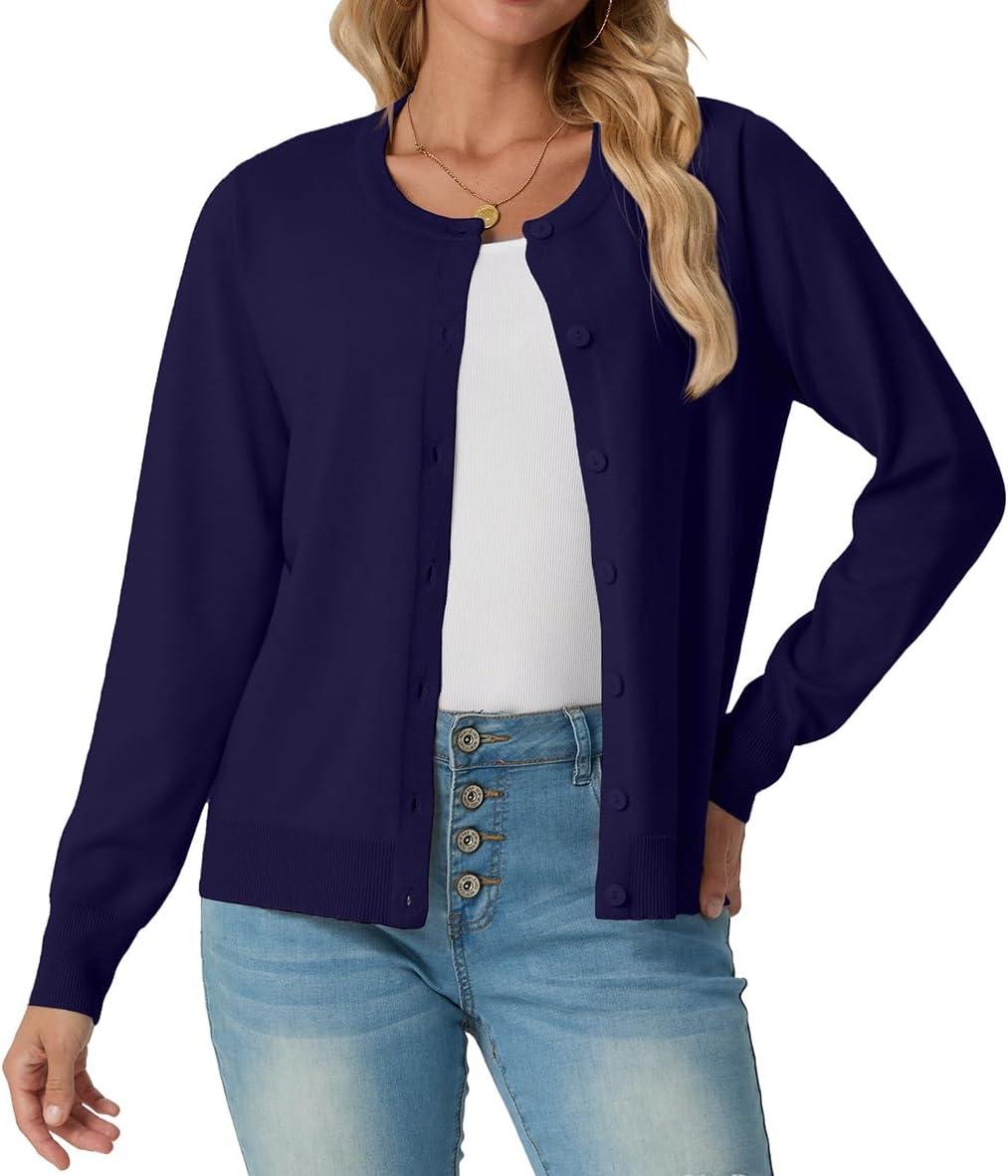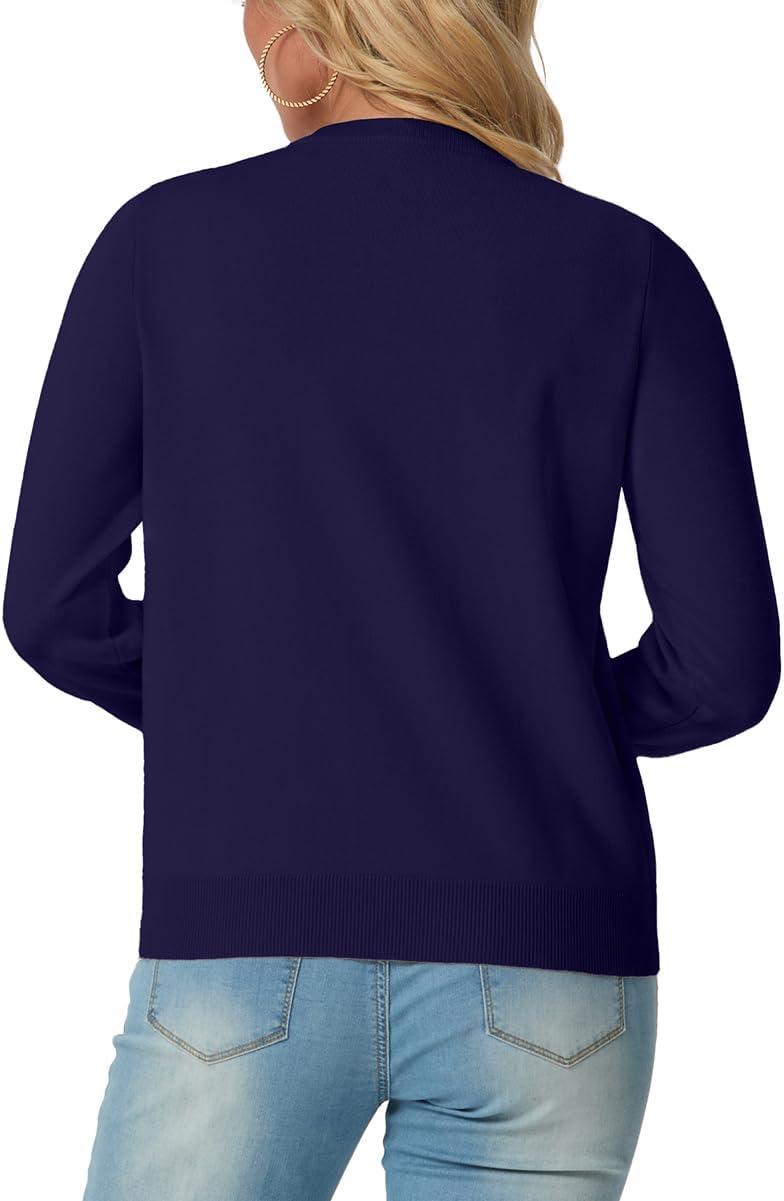 GRECERELLE Women’s Long Sleeve Lightweight Crewneck Casual Cardigan Sweater, S-2XL(Navy Blue)