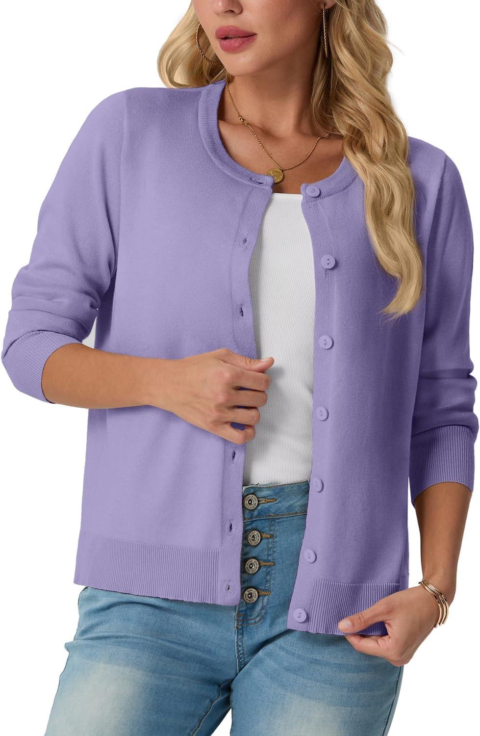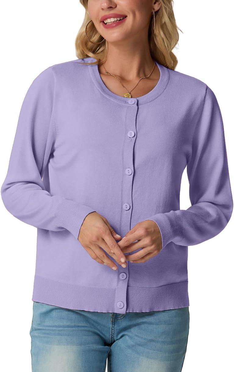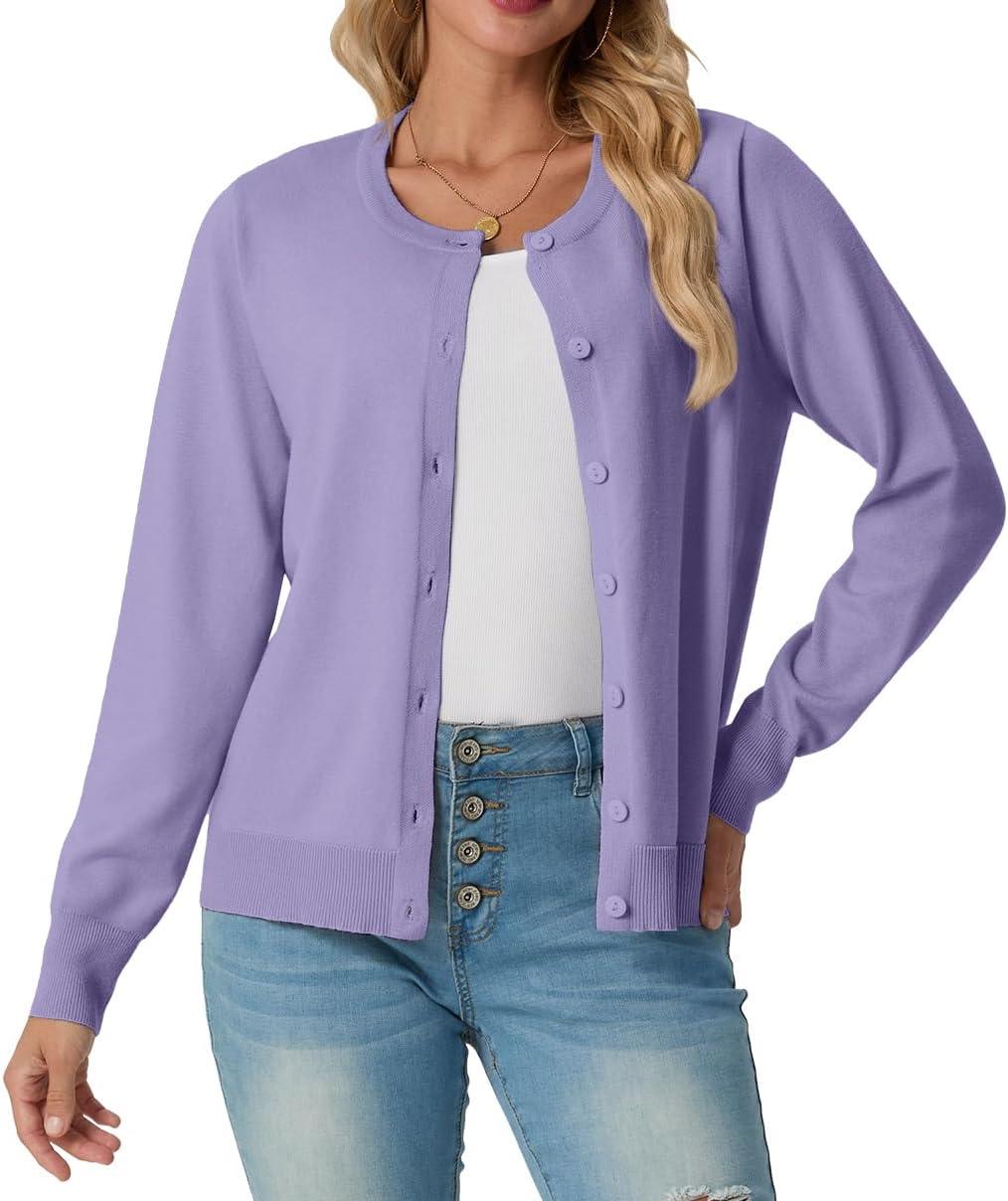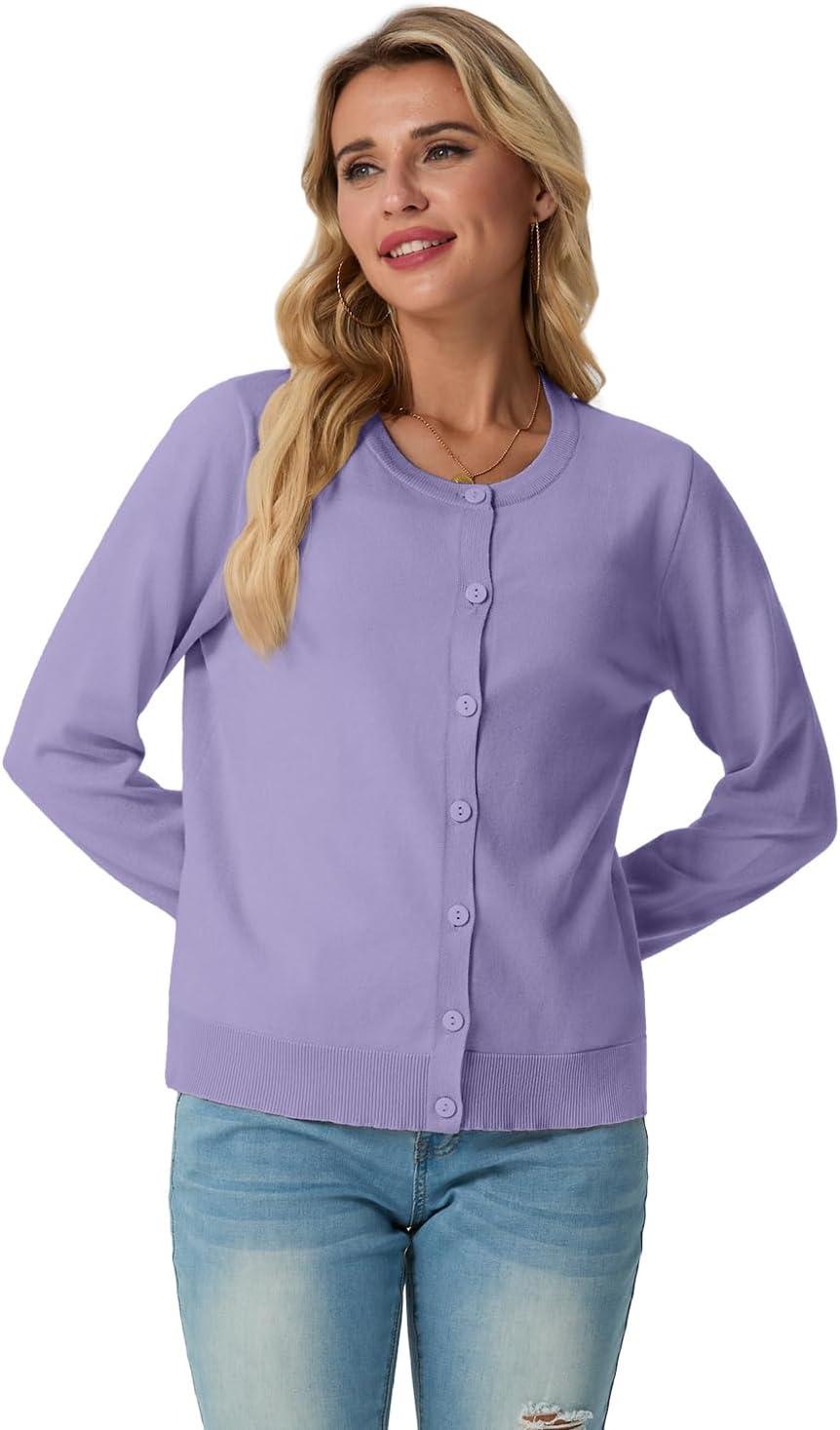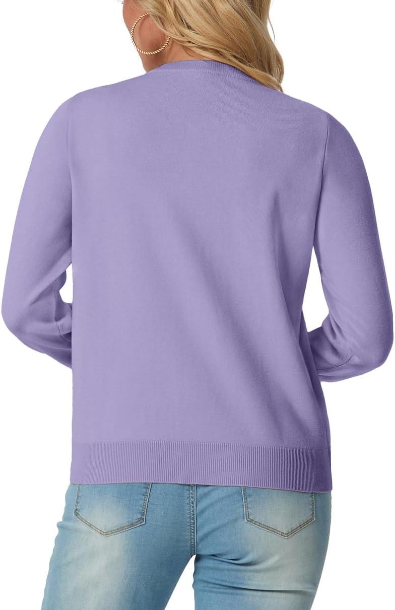 GRECERELLE Women’s Long Sleeve Lightweight Crewneck Casual Cardigan Sweater, S-2XL(Purple Gray)
