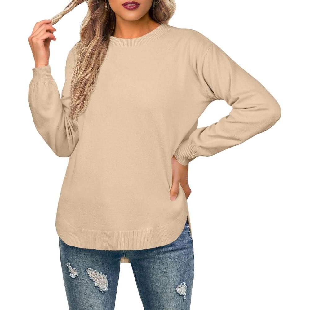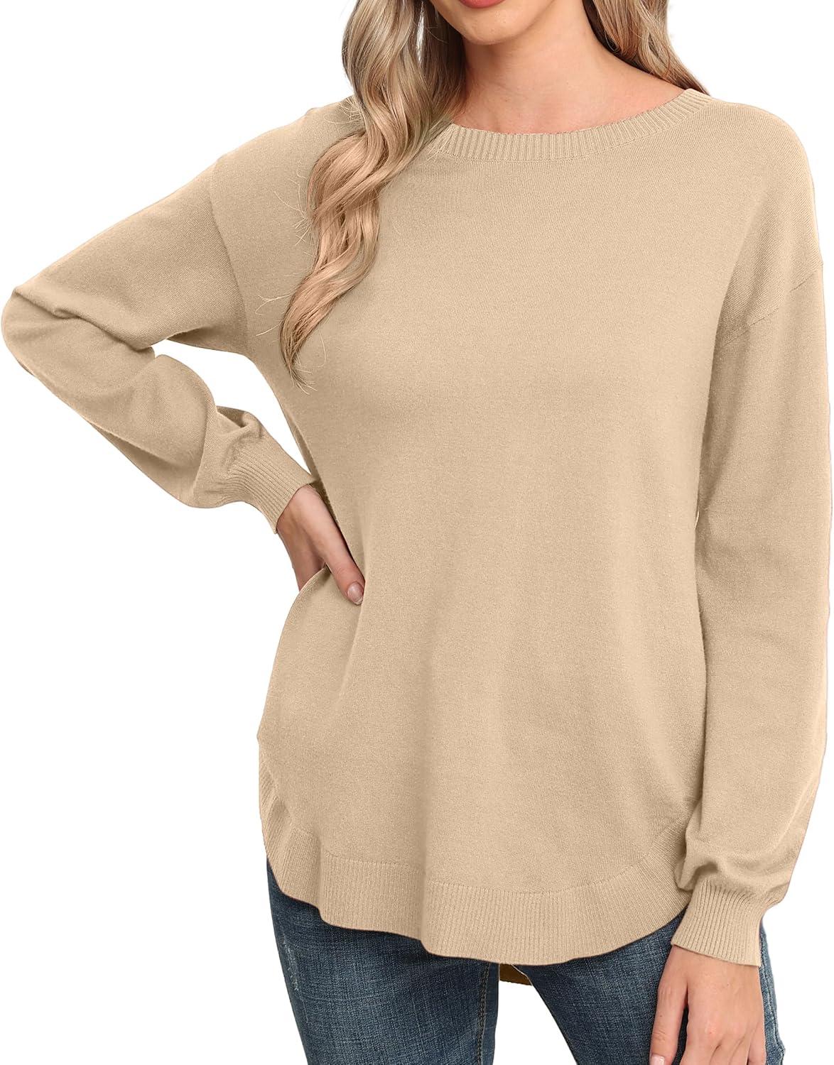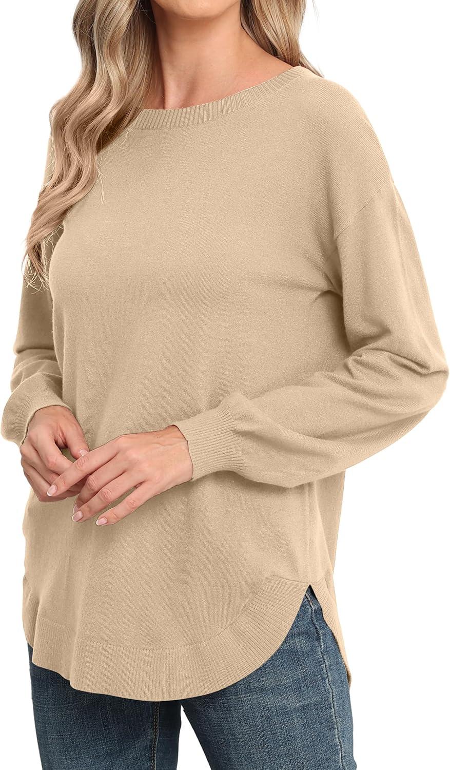 GRECERELLE Womens Long Sleeve Lightweight Crewneck Sweater Tops Casual Soft Knit Pullover Jumper(Apricot)