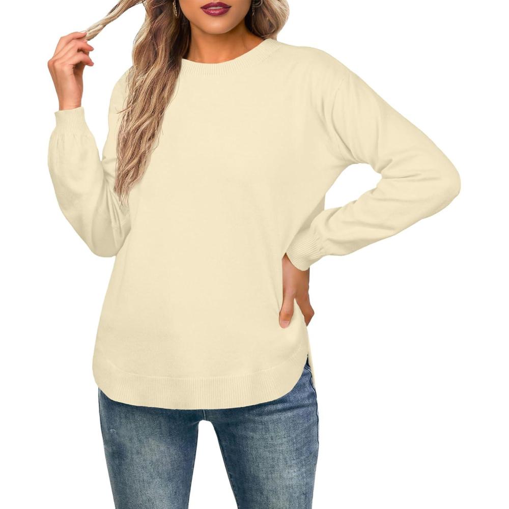 GRECERELLE Womens Long Sleeve Lightweight Crewneck Sweater Tops Casual Soft Knit Pullover Jumper(Beige)