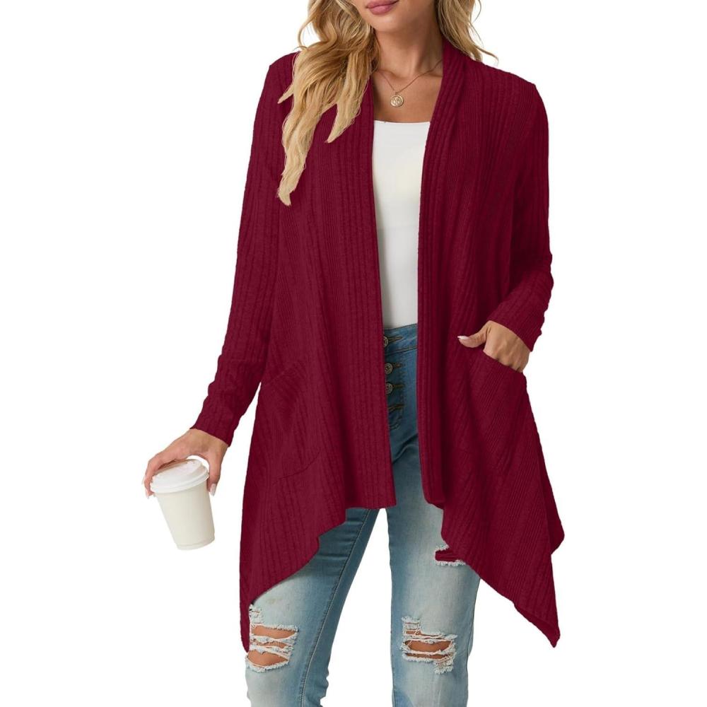 imageGRECERELLE Womens Long Sleeve Lightweight Draped Open Front Casual Cardigan Sweater with Pockets S2XLBurgundy
