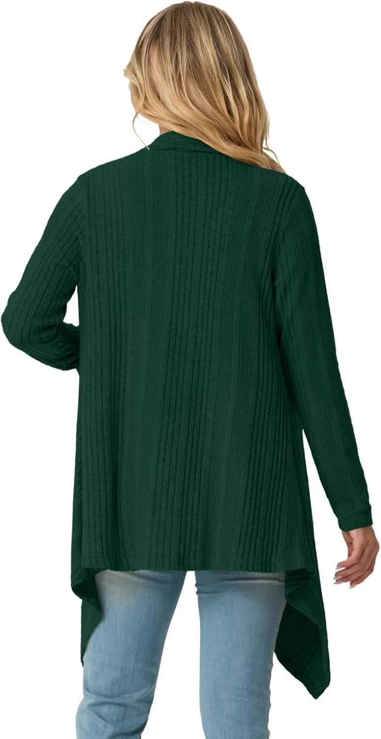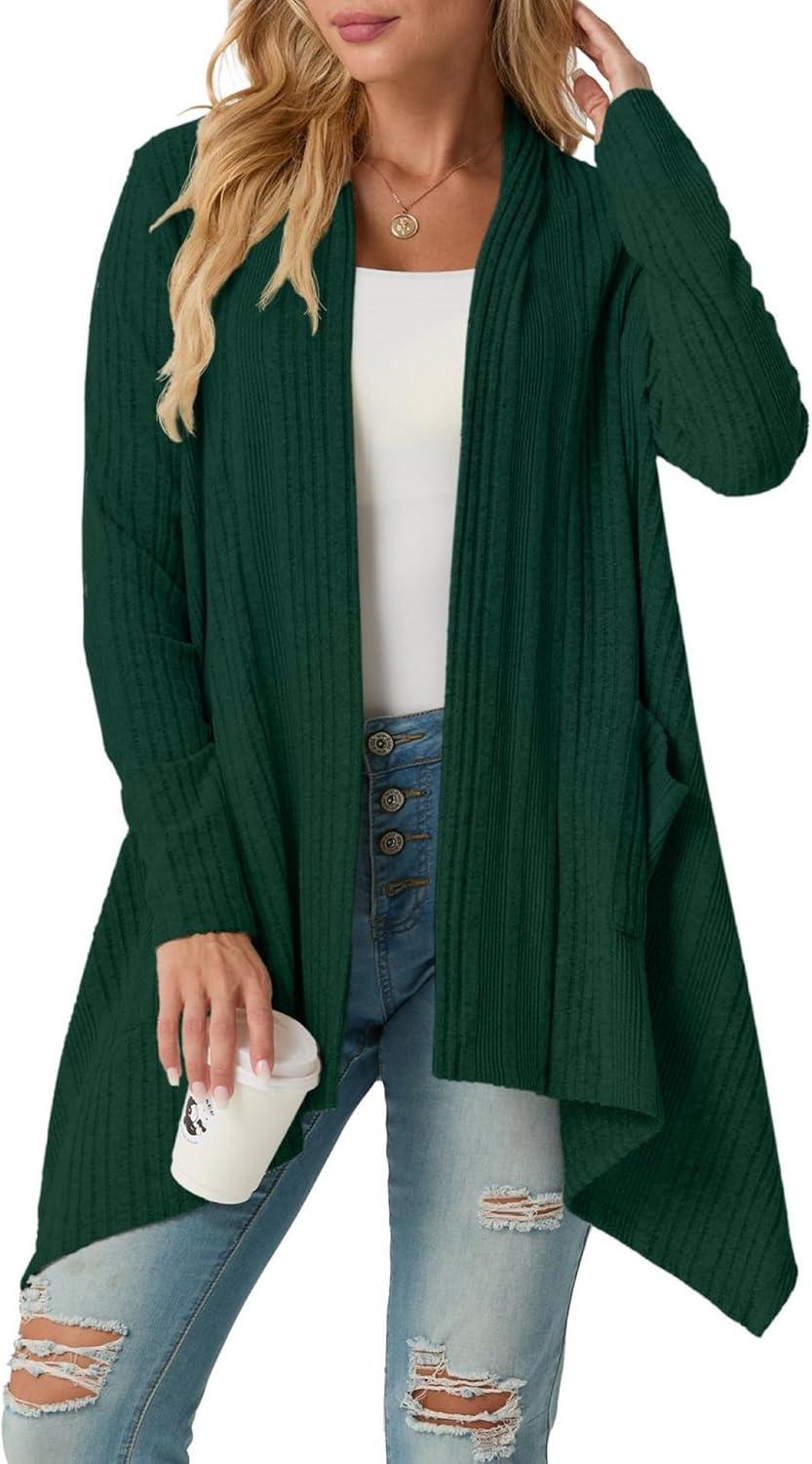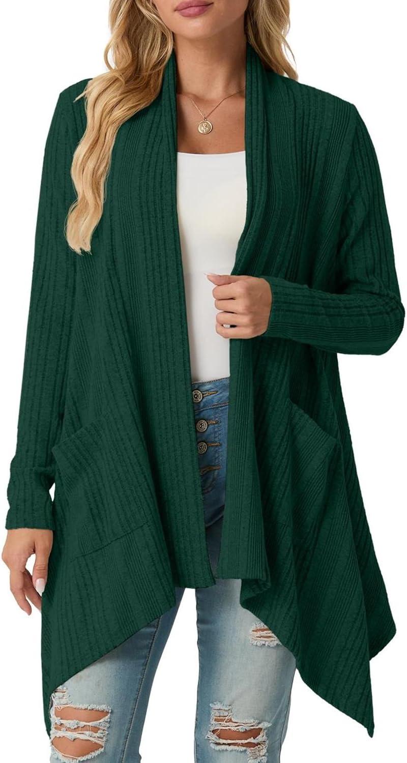 GRECERELLE Women's Long Sleeve Lightweight Draped Open Front Casual Cardigan Sweater with Pockets (S-2XL)(Dark Green)