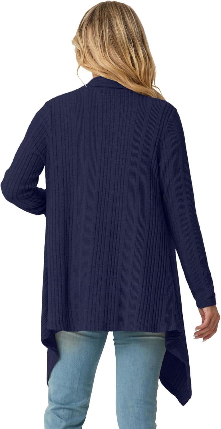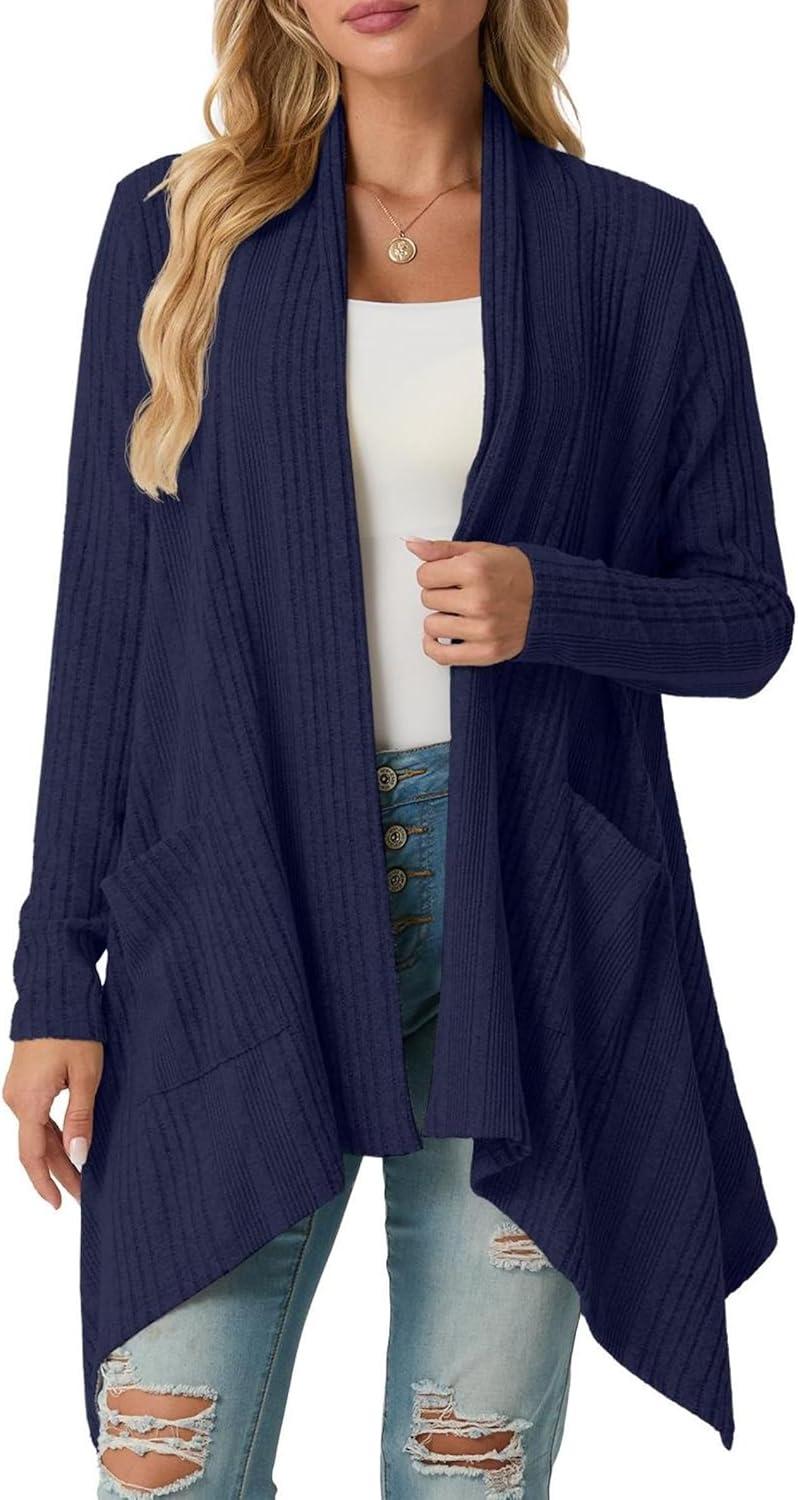 GRECERELLE Women's Long Sleeve Lightweight Draped Open Front Casual Cardigan Sweater with Pockets (S-2XL)(Navy Blue)