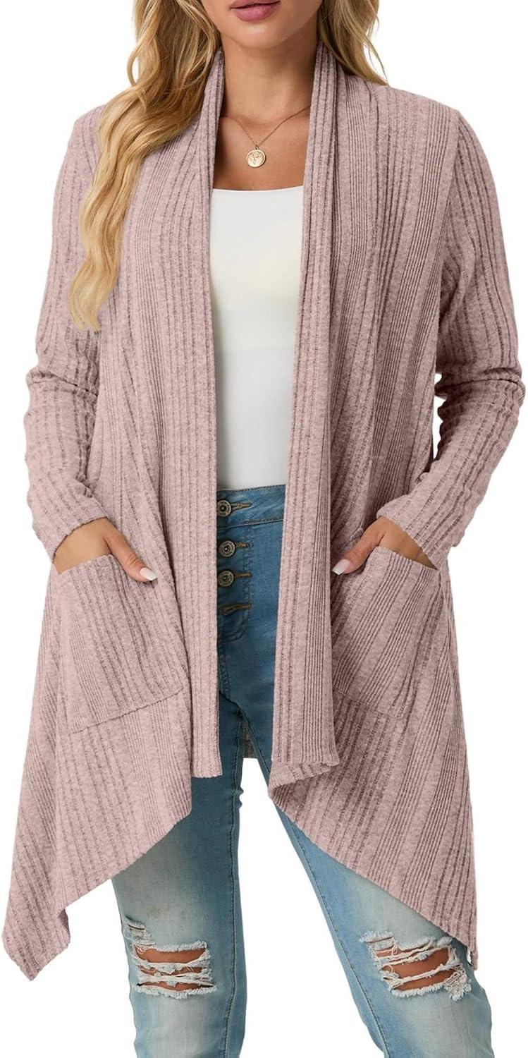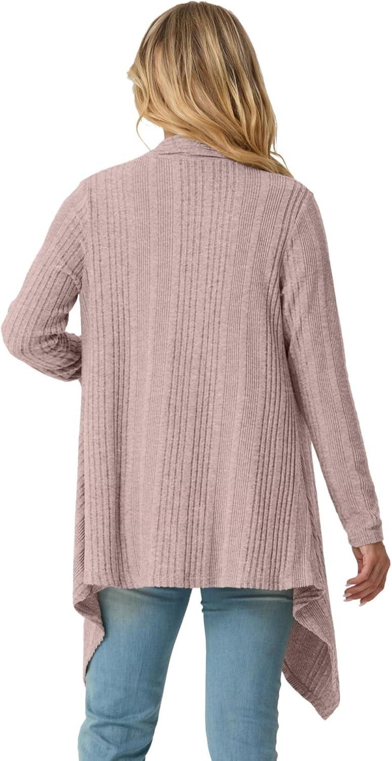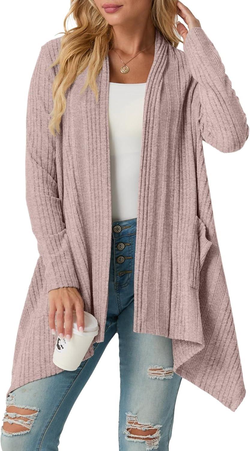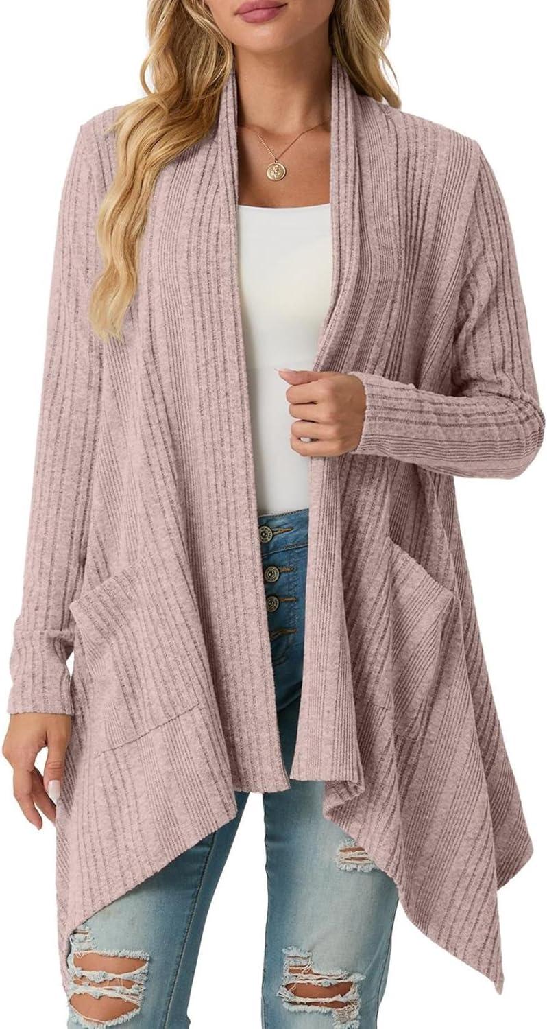 GRECERELLE Women’s Long Sleeve Lightweight Draped Open Front Casual Cardigan Sweater with Pockets (S-2XL)(Pink Gray)