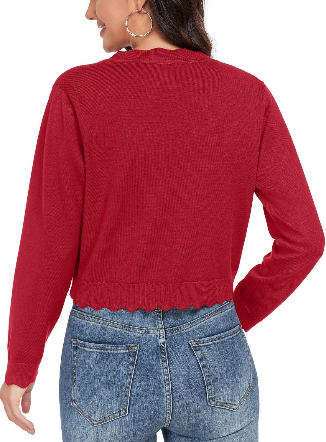 GRECERELLE Women's Long Sleeve Lightweight Open Front Cropped Cardigan Knit Sweaters Bolero Shrugs (S-2XL)(Red)