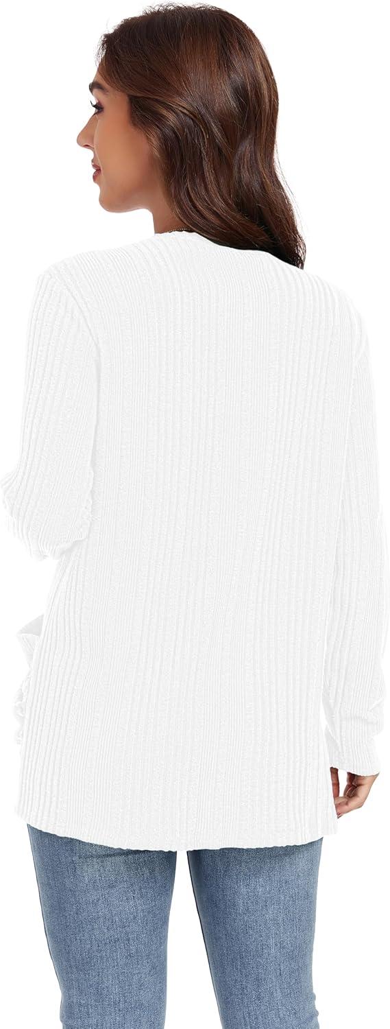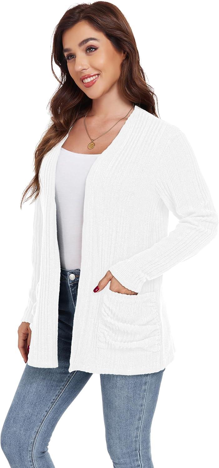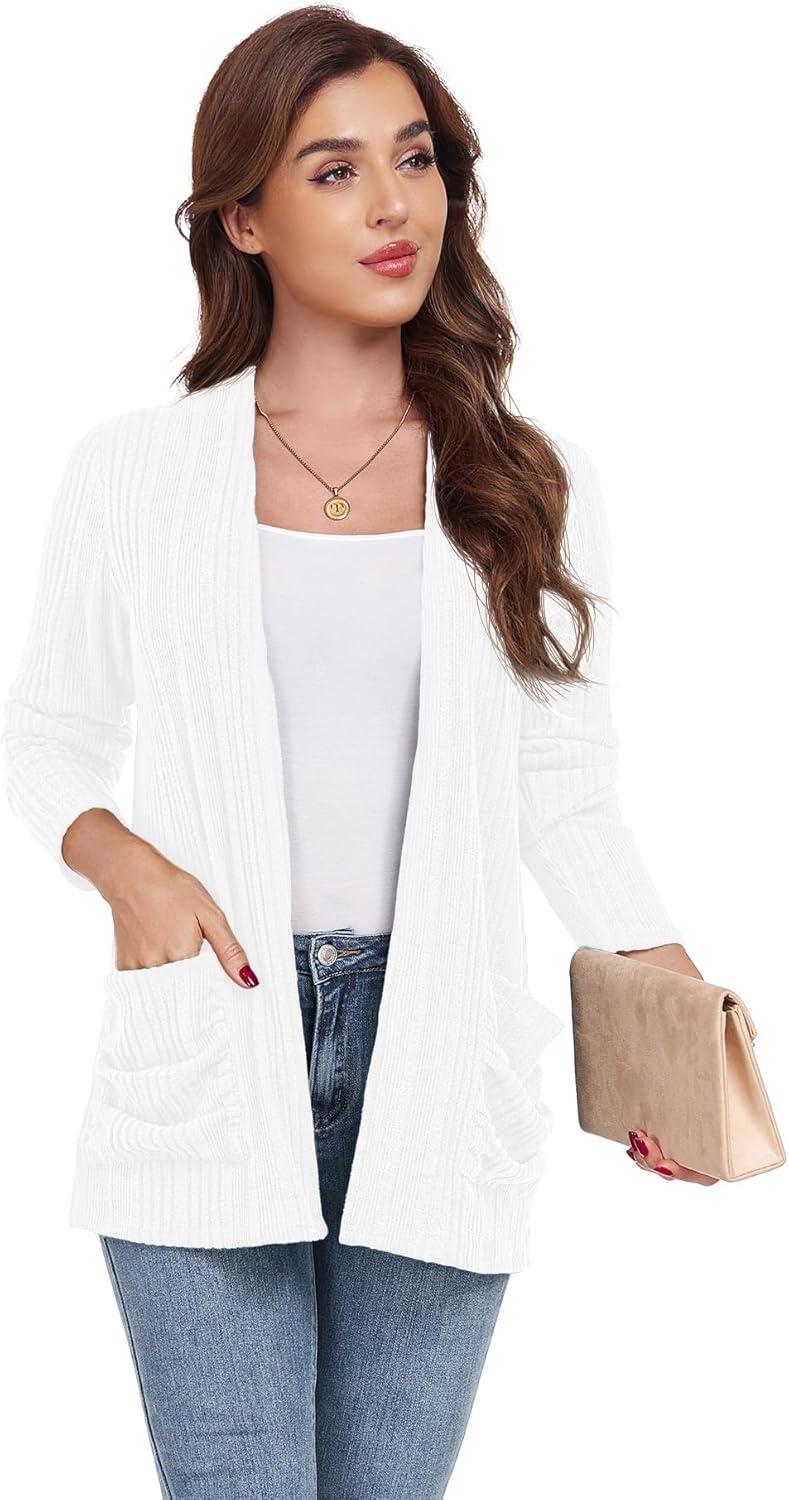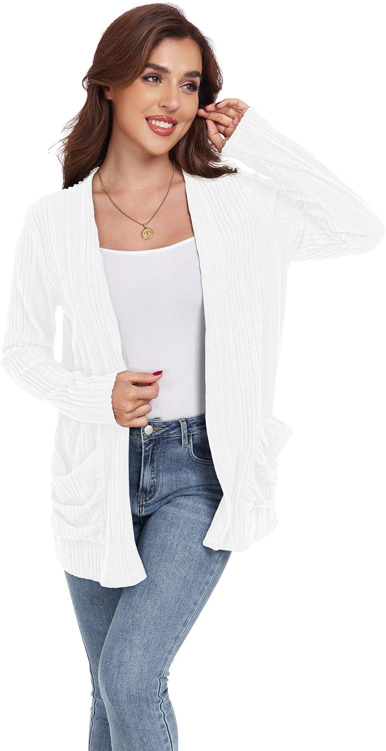 GRECERELLE Womens Long Sleeve Lightweight Open Front V-Neck Casual Cardigan Sweaters Outerwear with Pockets 2025, S-2XL(A-white)