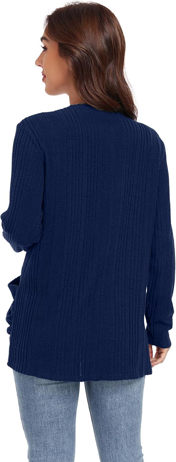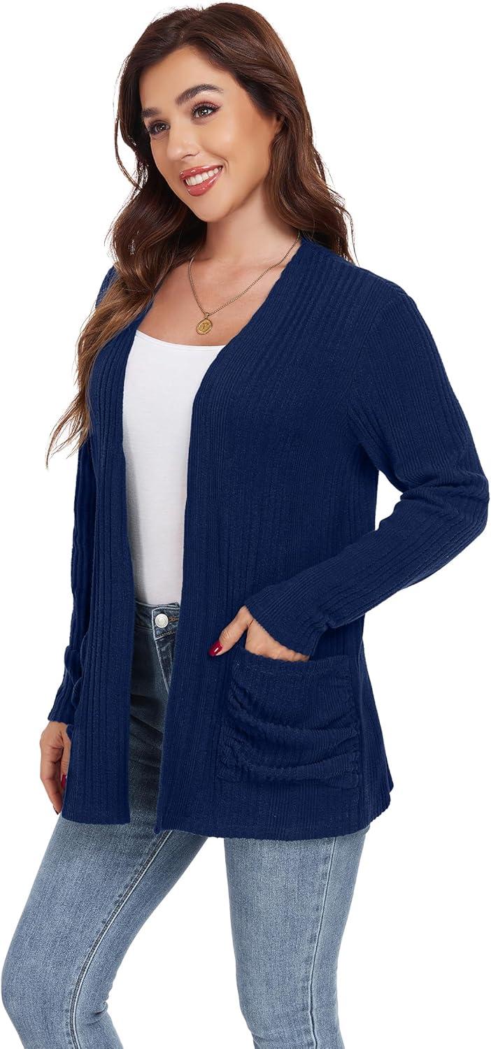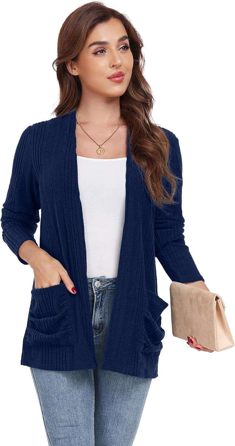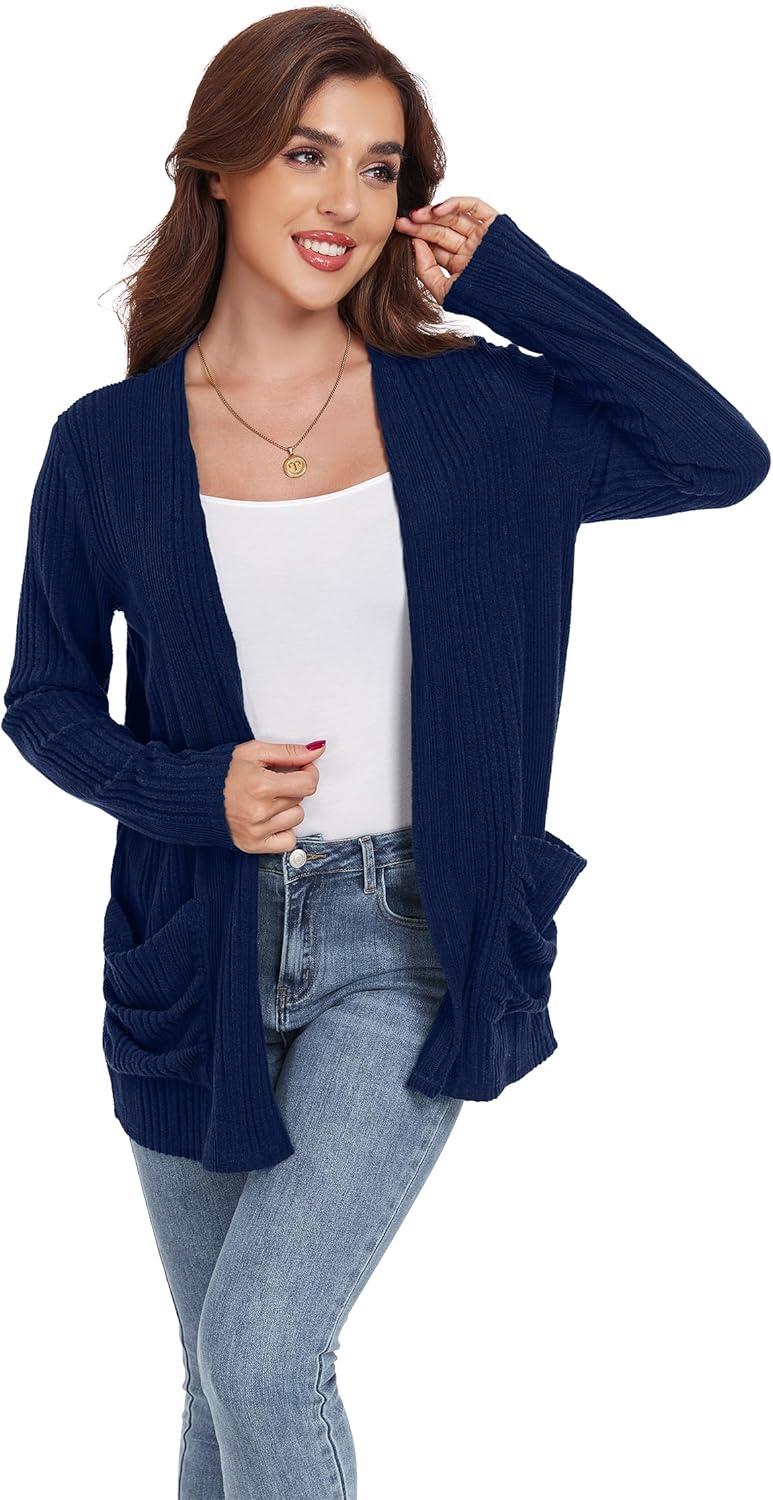 GRECERELLE Womens Long Sleeve Lightweight Open Front V-Neck Casual Cardigan Sweaters Outerwear with Pockets 2025, S-2XL(Navy Blue)
