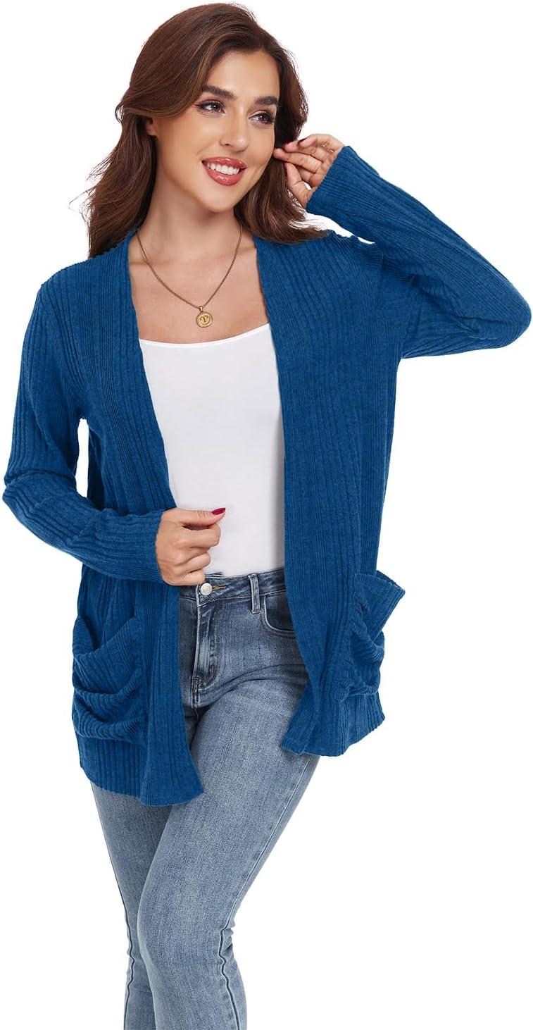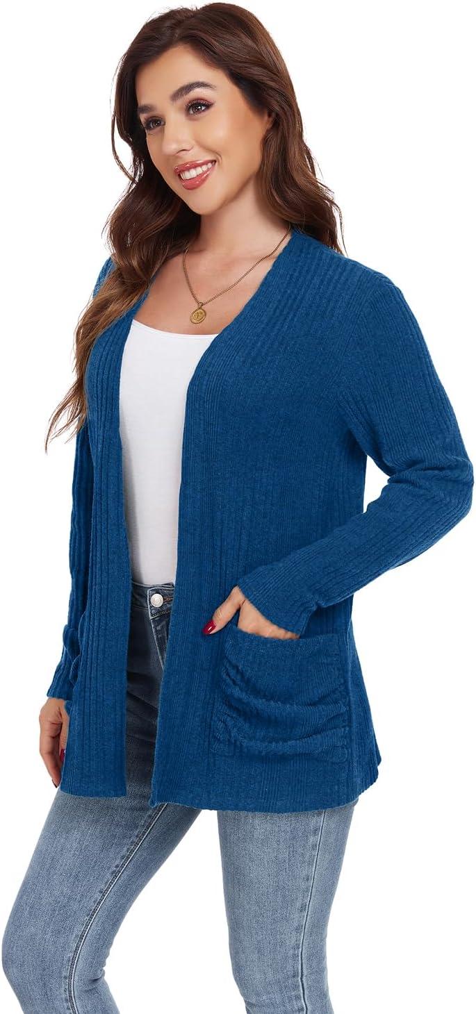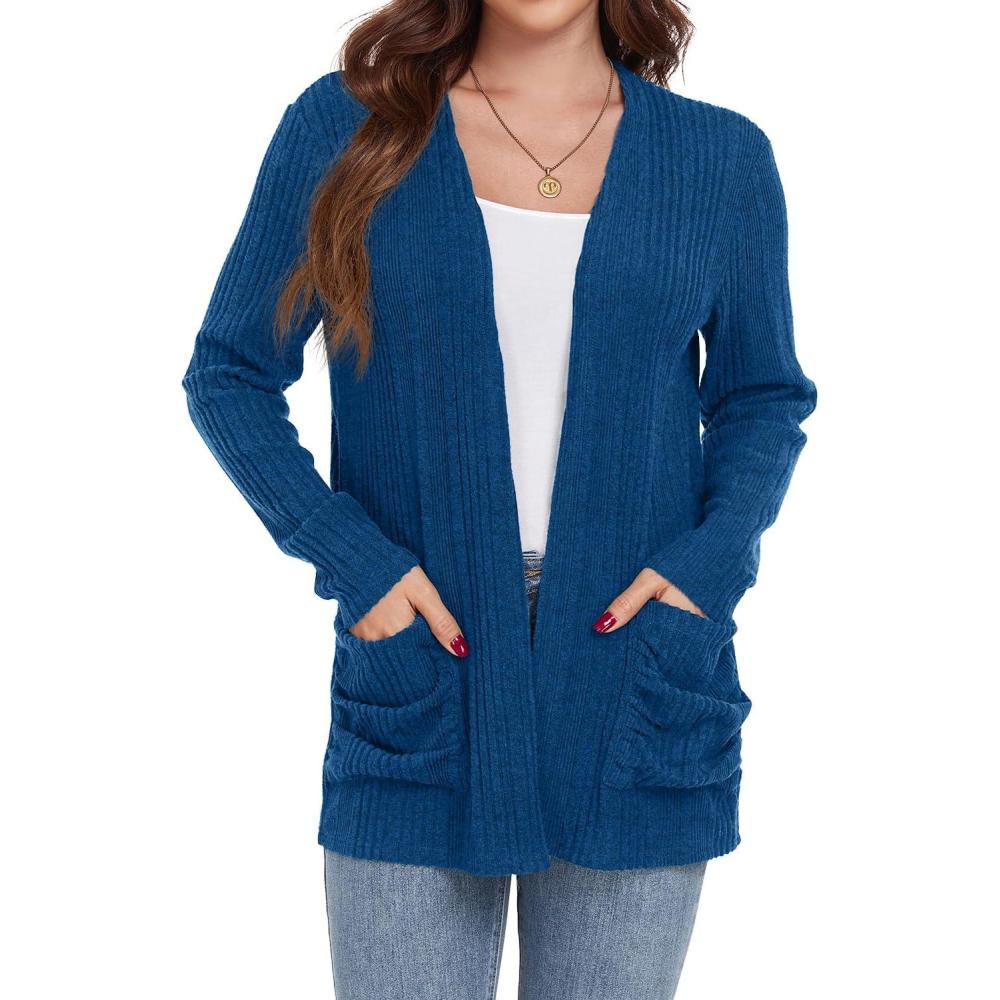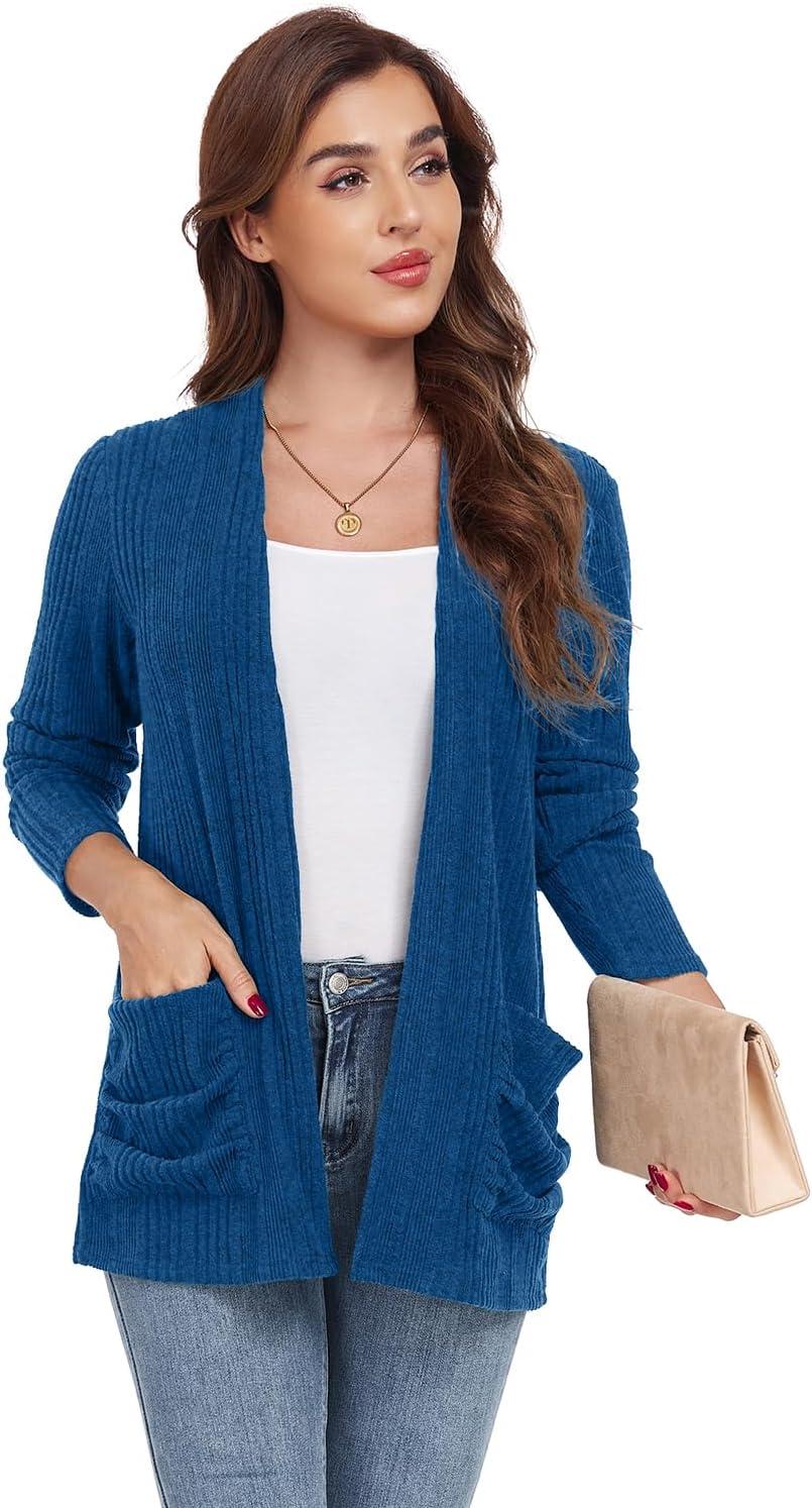 GRECERELLE Womens Long Sleeve Lightweight Open Front V-Neck Casual Cardigan Sweaters Outerwear with Pockets 2025, S-2XL(Royal Blue)