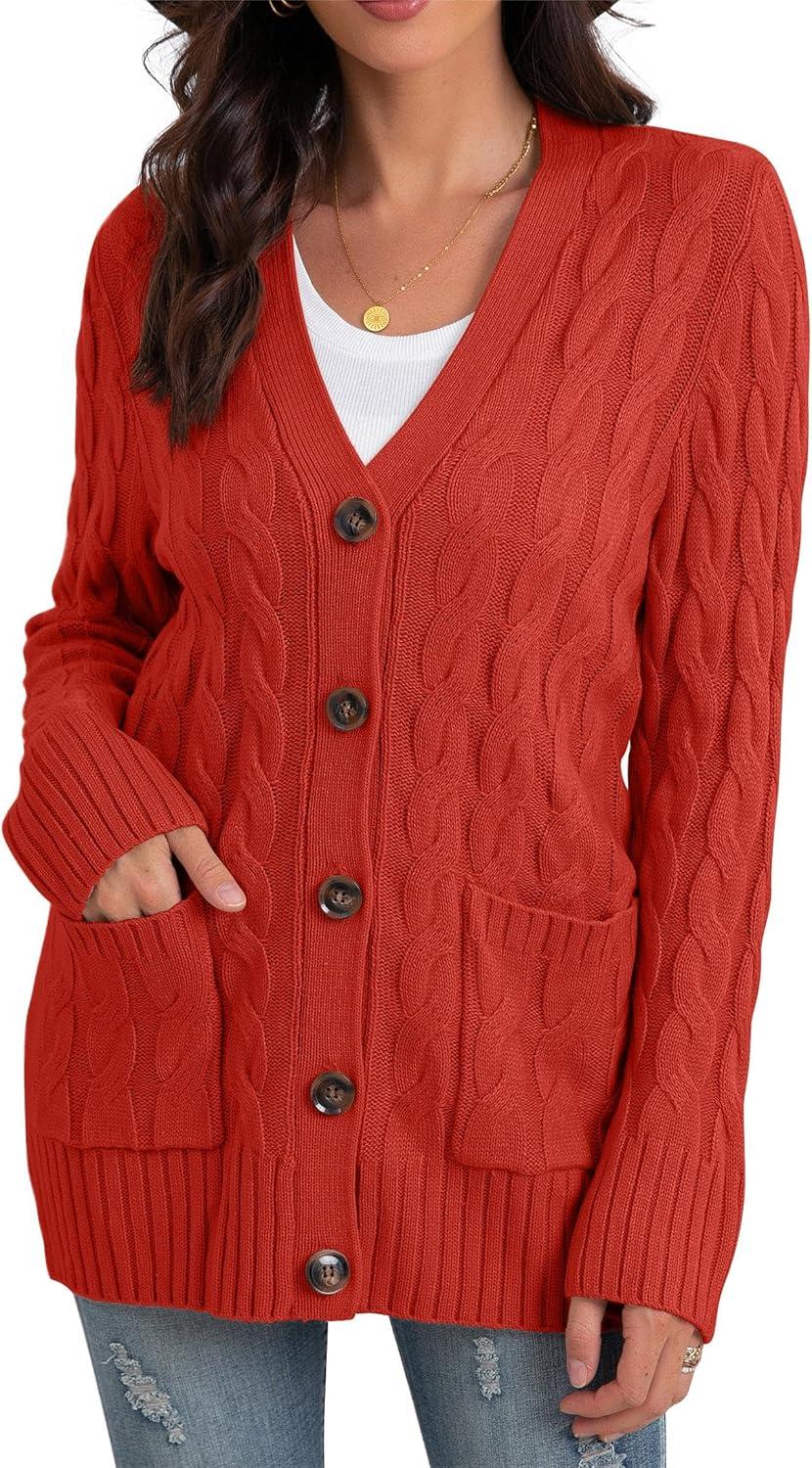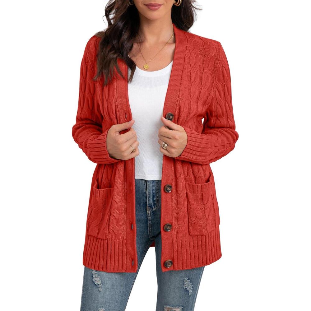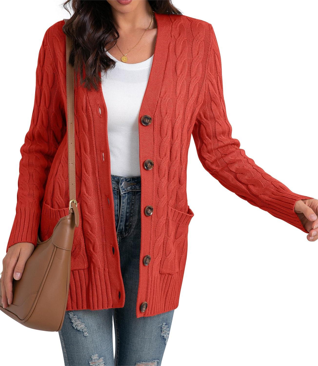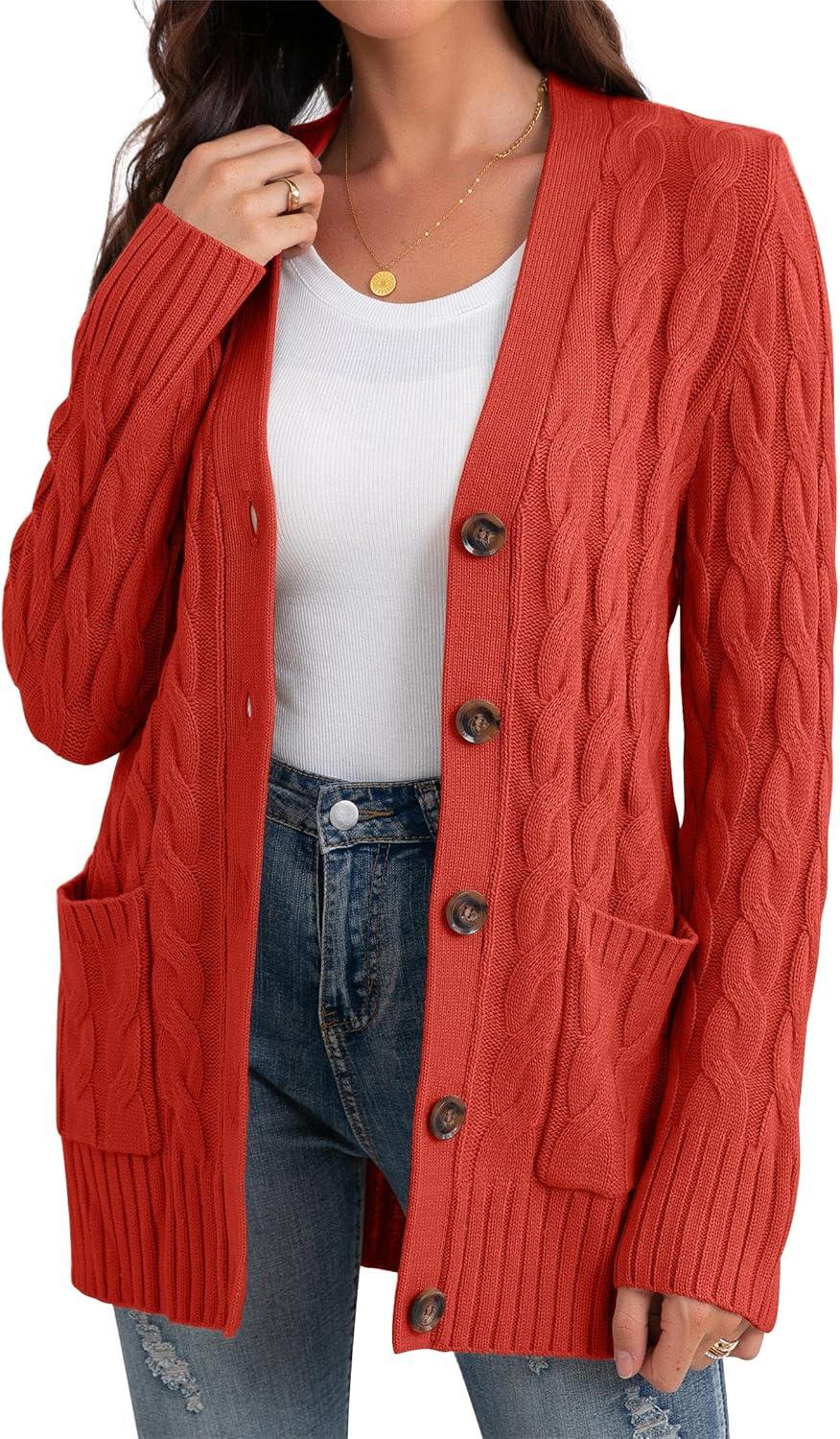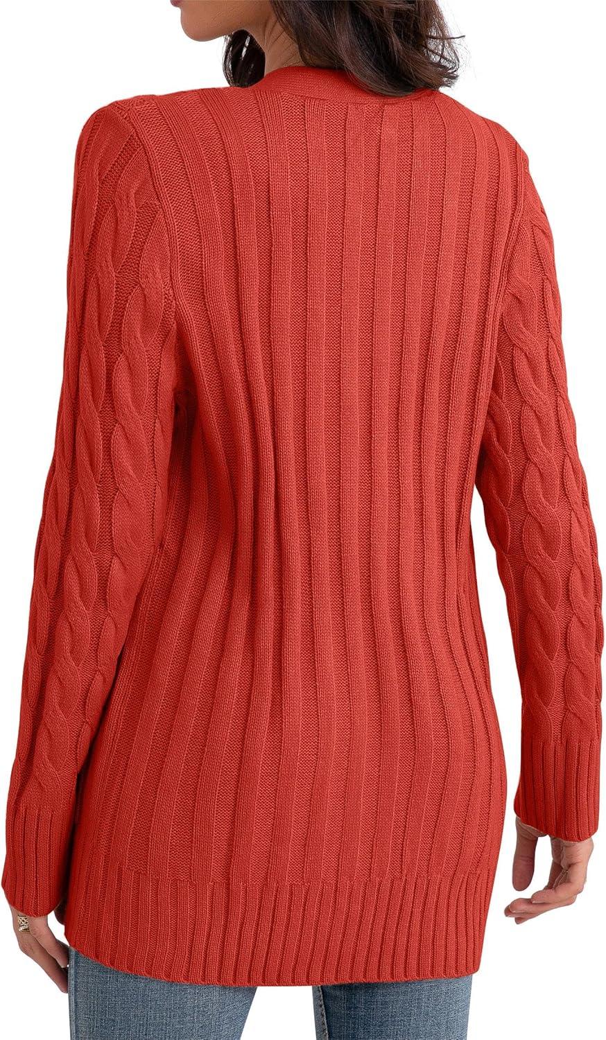 GRECERELLE Women’s Long Sleeve Loose Knit Cable Open Front Button Down Cardigan Sweater Outerwear Coat with Pockets(26-pumpkin)