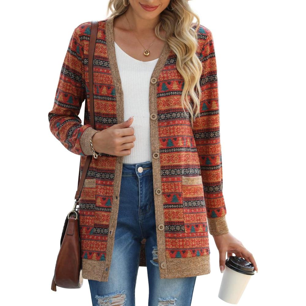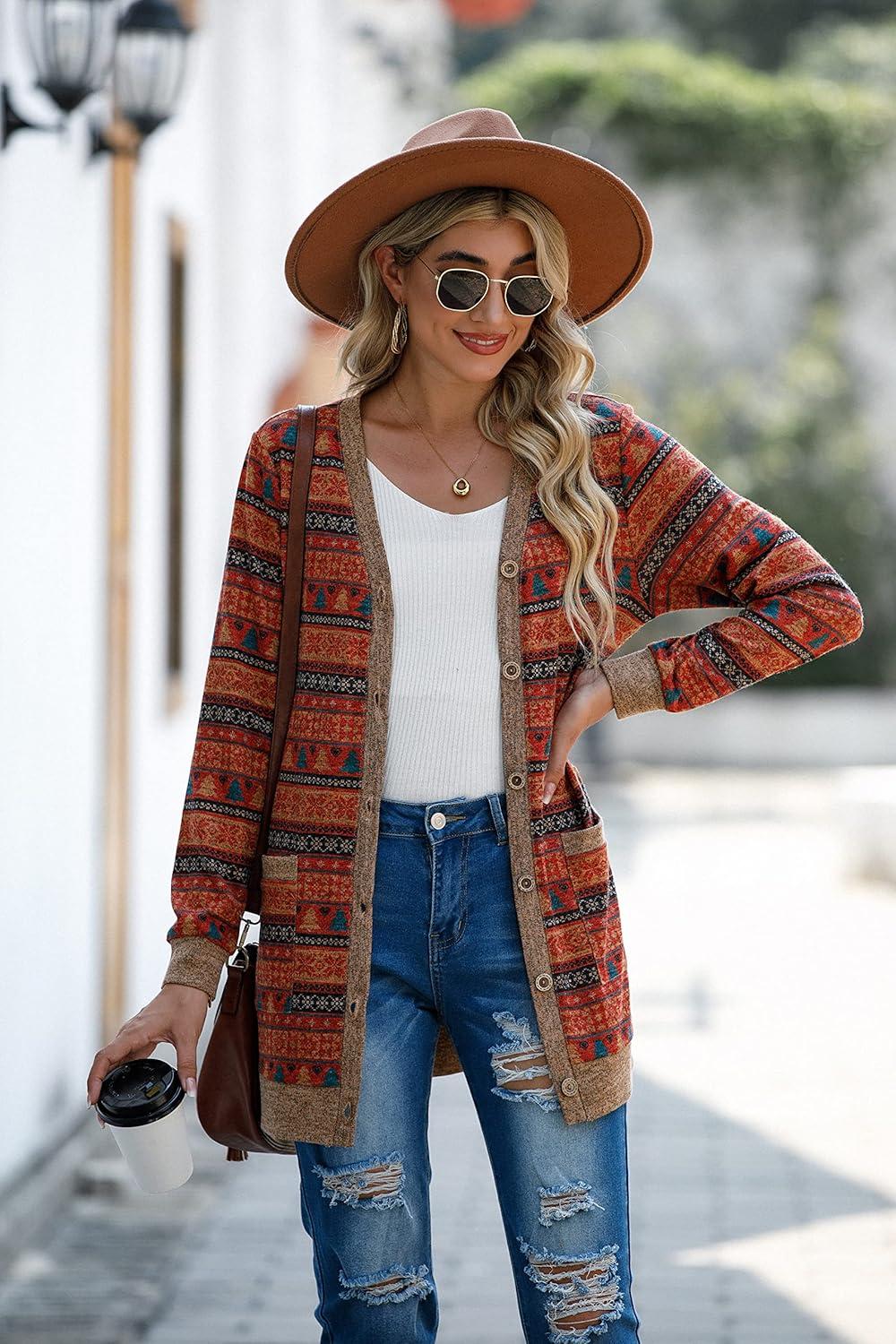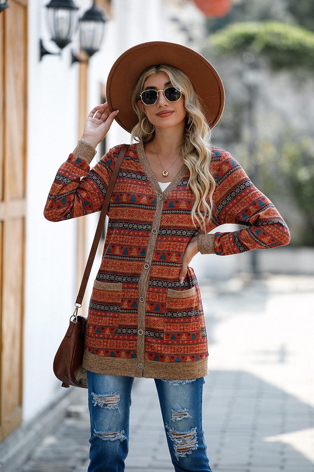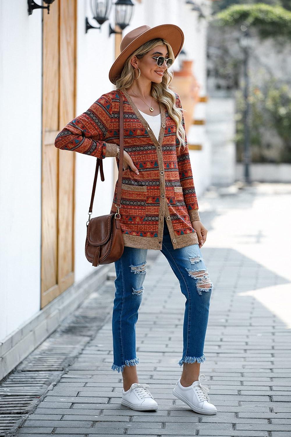 GRECERELLE Women’s Long Sleeve Open Front Cardigan Button Down Ribbed Lightweight Knit Outerwear with Pocket(Colorful Cashew Navy)