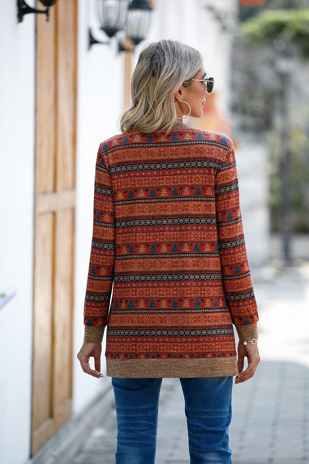 imageGRECERELLE Womens Long Sleeve Open Front Cardigan Button Down Ribbed Lightweight Knit Outerwear with PocketChristmas Tree Red
