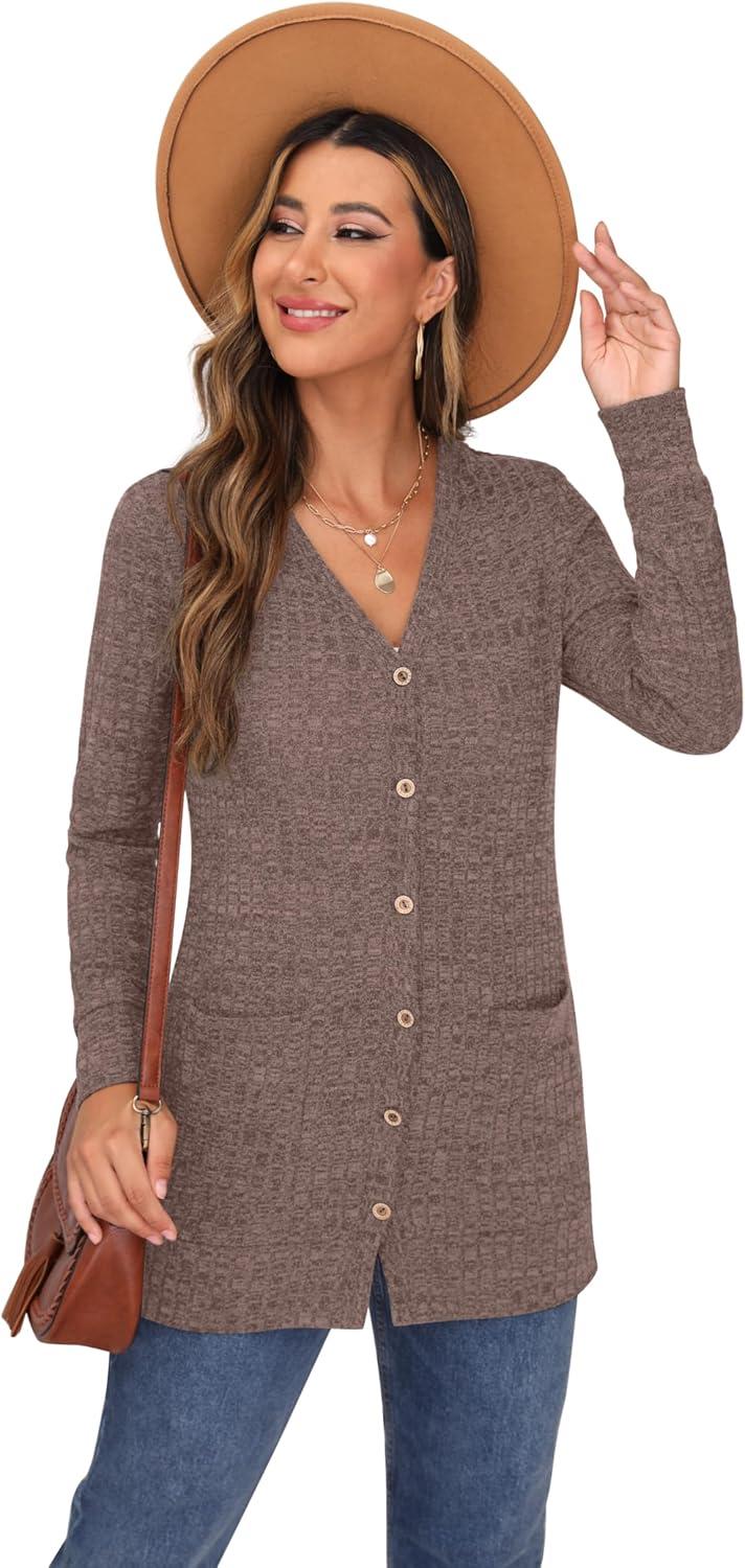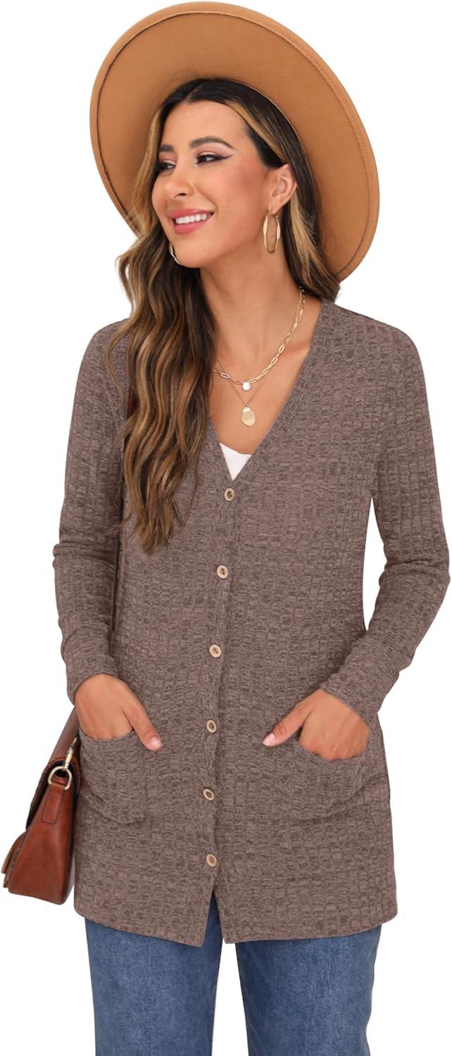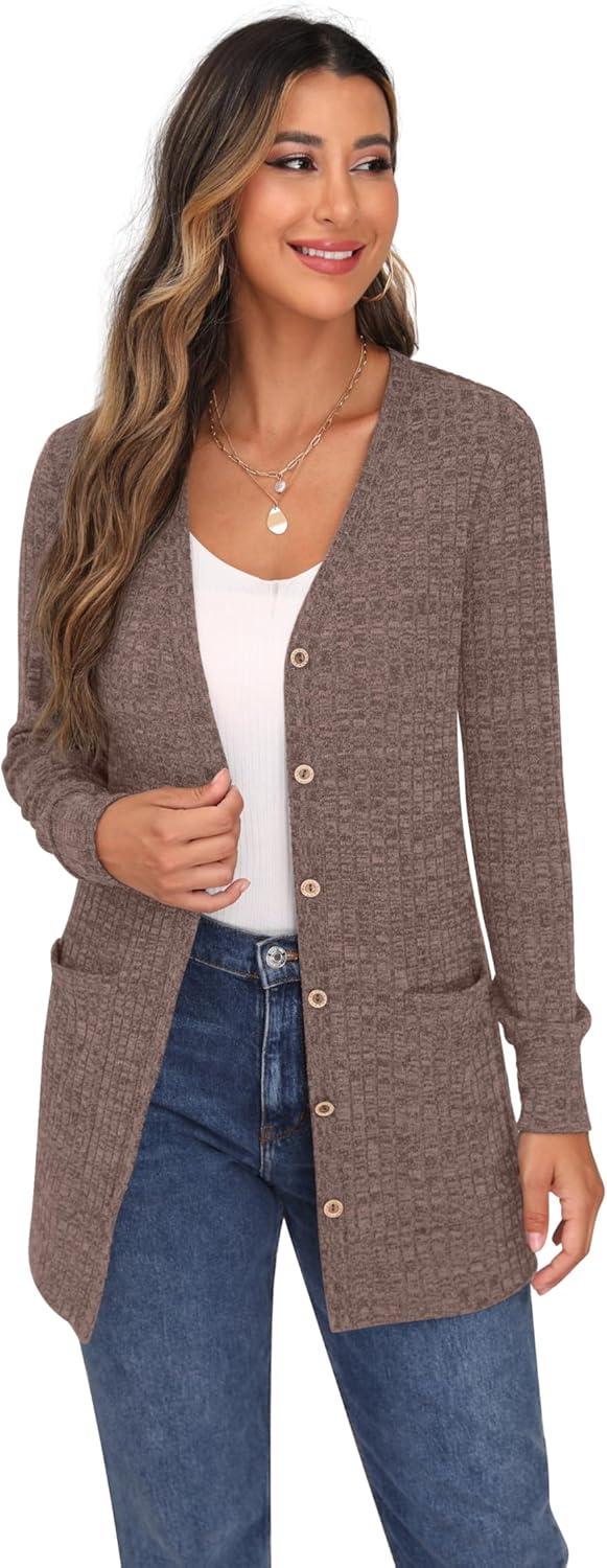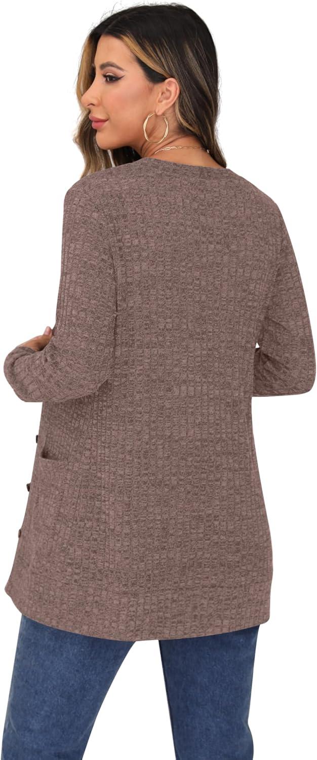 GRECERELLE Women’s Long Sleeve Open Front Cardigan Button Down Ribbed Lightweight Knit Outerwear with Pocket(Pink)