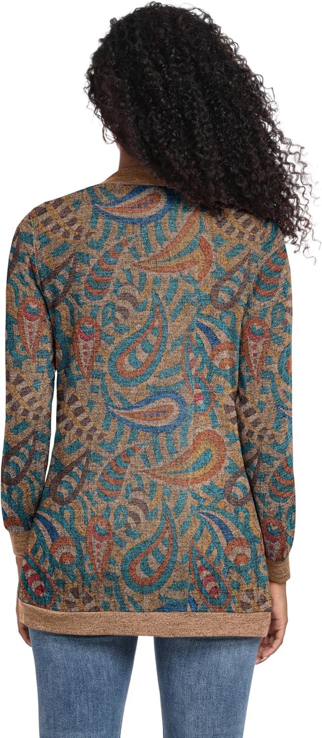 imageGRECERELLE Womens Long Sleeve Open Front Cardigan Casual VNeck Curved Hem Ribbed Knit Sweater Outerwear with PocketsPaisley Blue