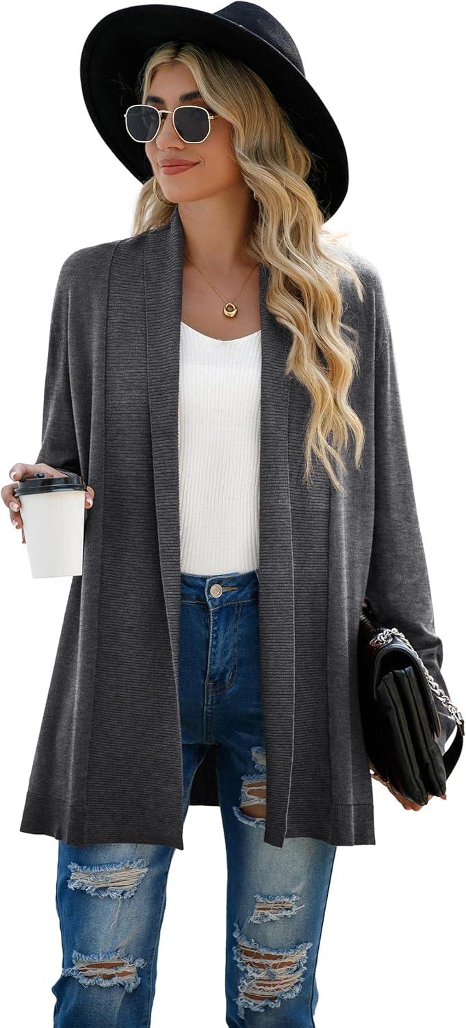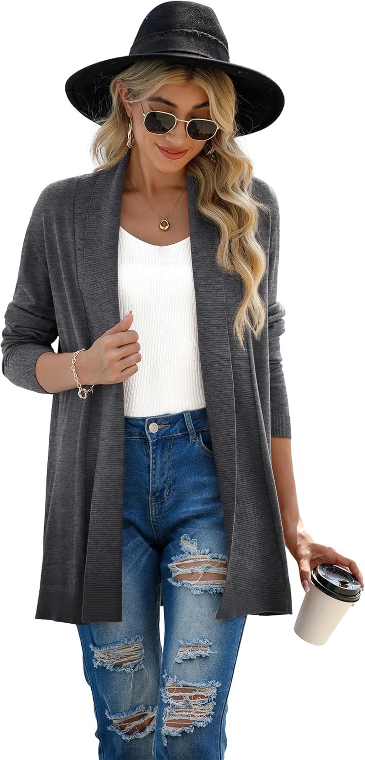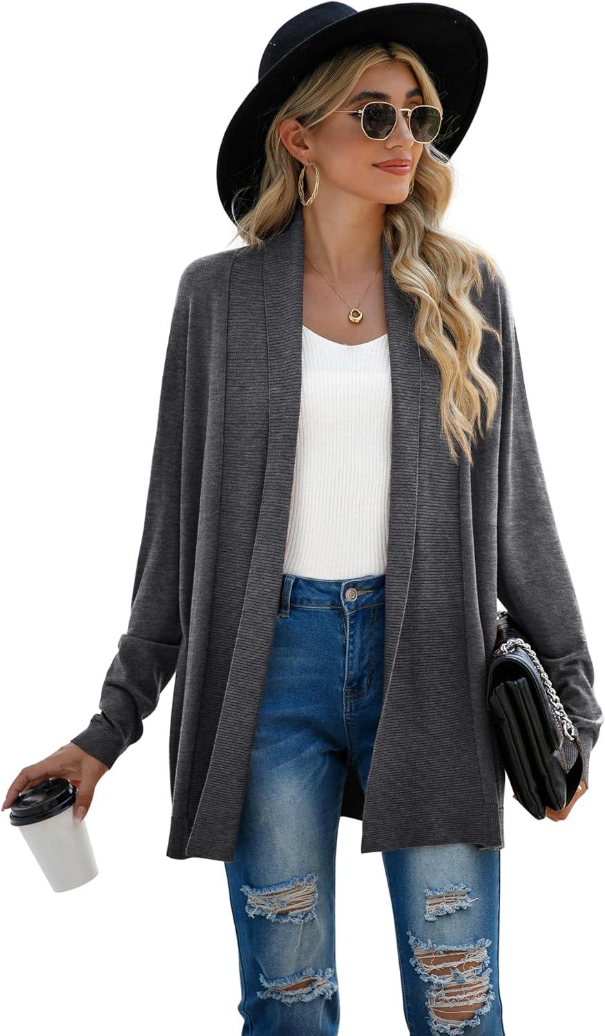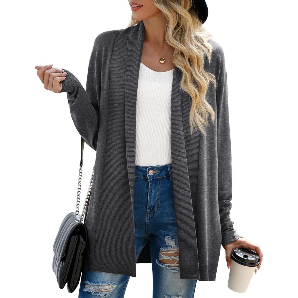 GRECERELLE Women’s Long Sleeve Open Front Lightweight Casual Business Dressy Cardigan Sweater Fall Winter(Carbon Grey)