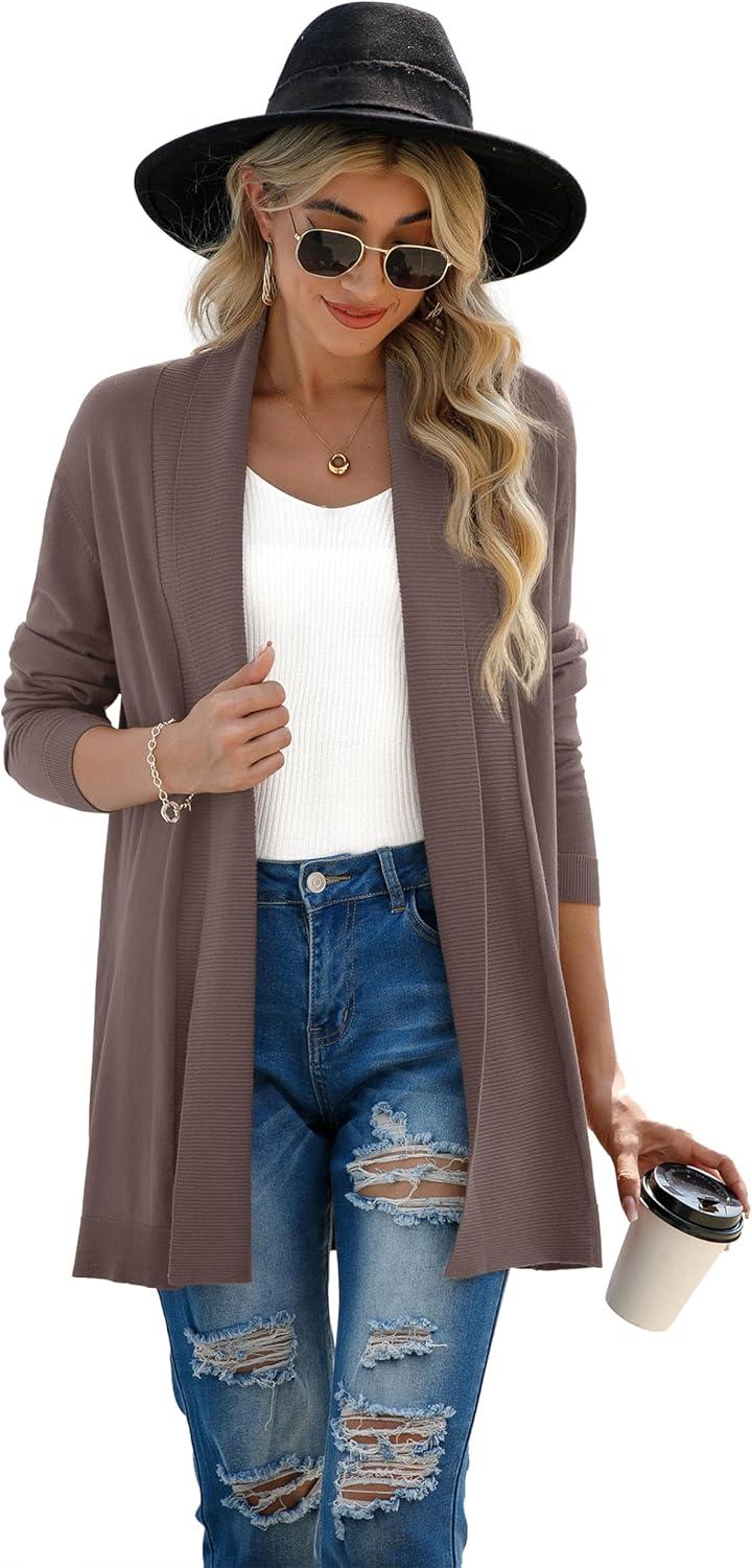 GRECERELLE Women's Long Sleeve Open Front Lightweight Casual Business Dressy Cardigan Sweater Fall Winter(Dark Khaki)