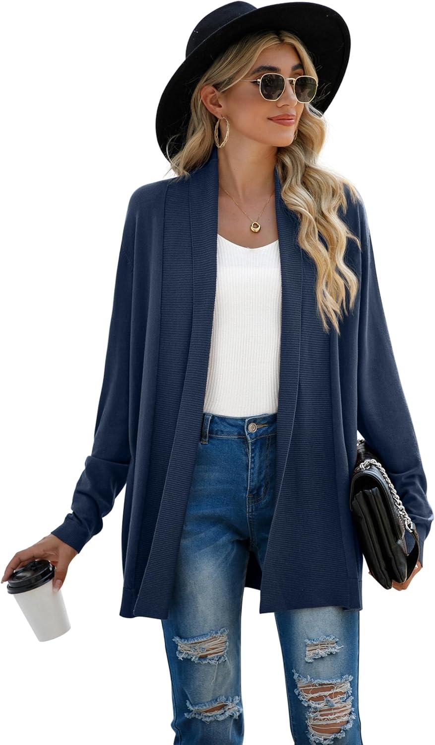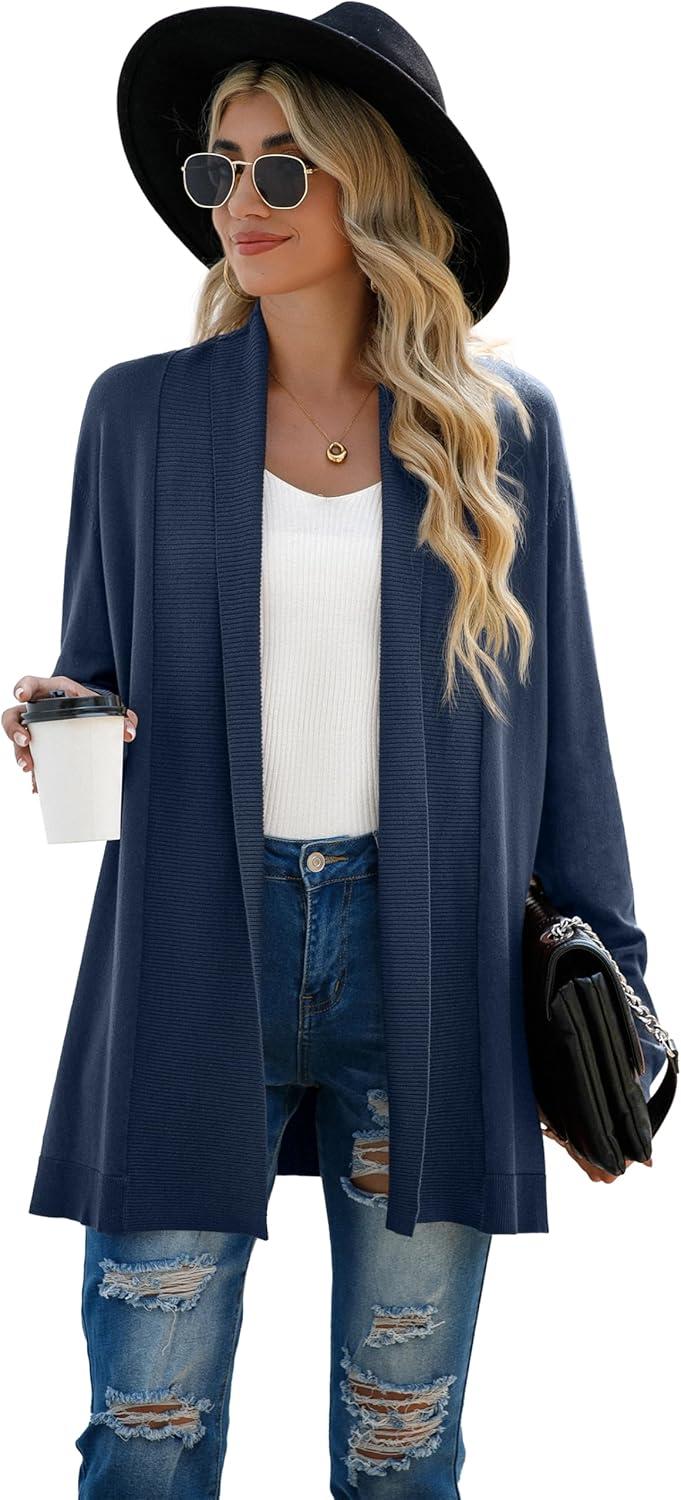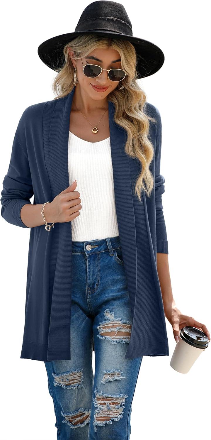 GRECERELLE Women’s Long Sleeve Open Front Lightweight Casual Business Dressy Cardigan Sweater Fall Winter(Indigo)