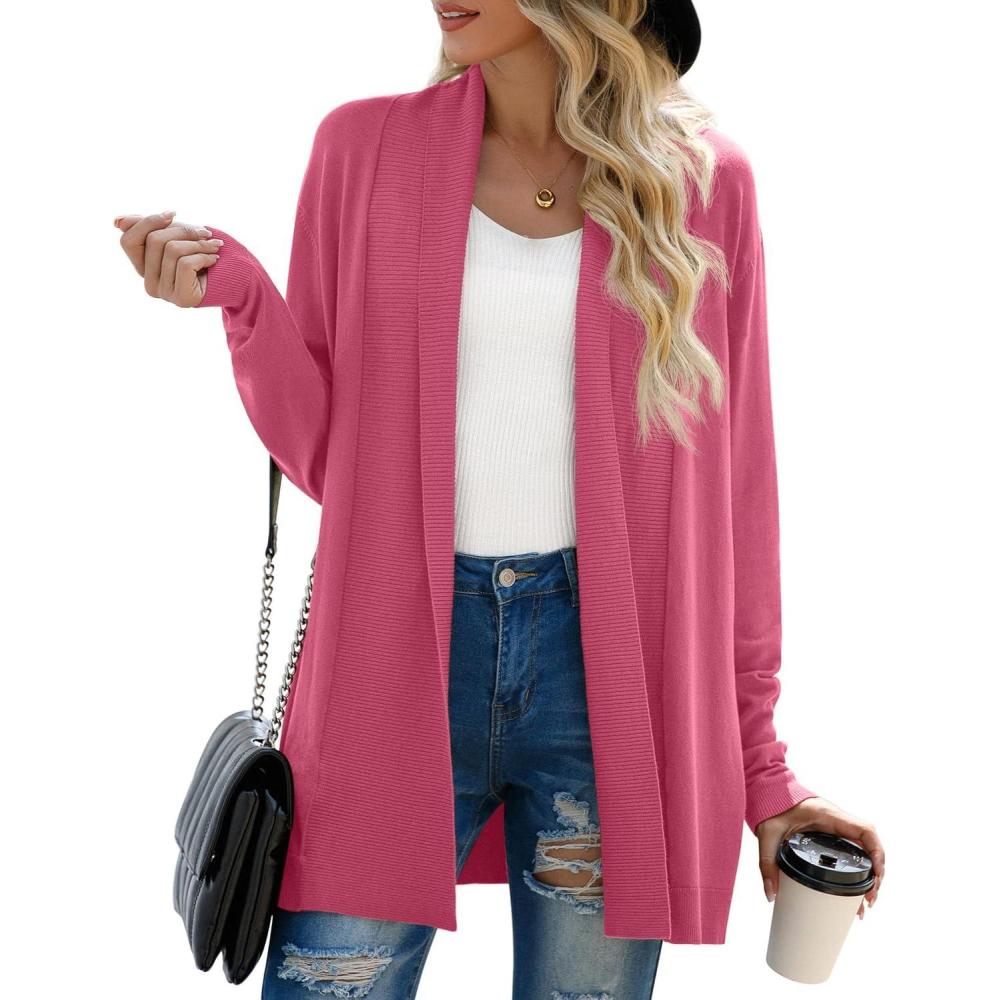 imageGRECERELLE Womens Long Sleeve Open Front Lightweight Casual Business Dressy Cardigan Sweater Fall WinterPeach Red