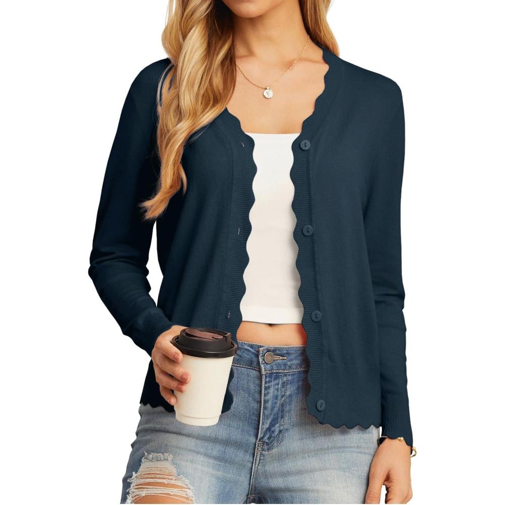 GRECERELLE Women's Cardigan Sweater Lightweight Long Sleeve V-Neck Button Down Knit Shrugs