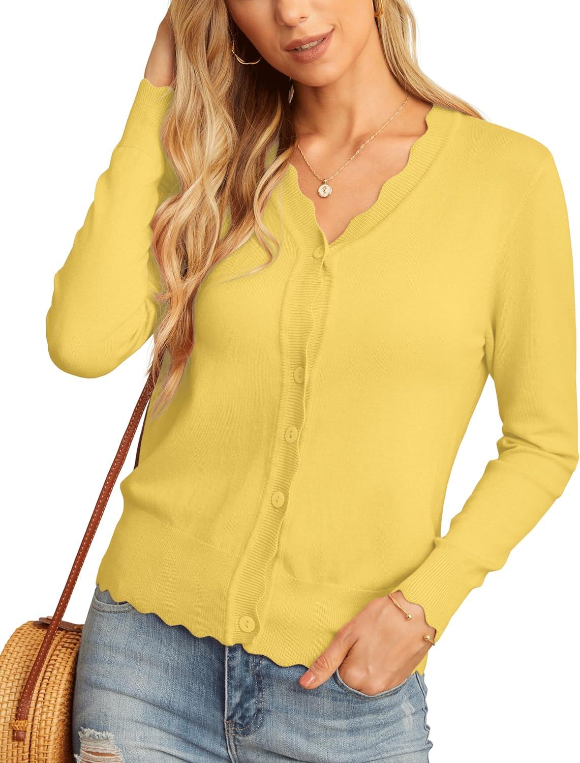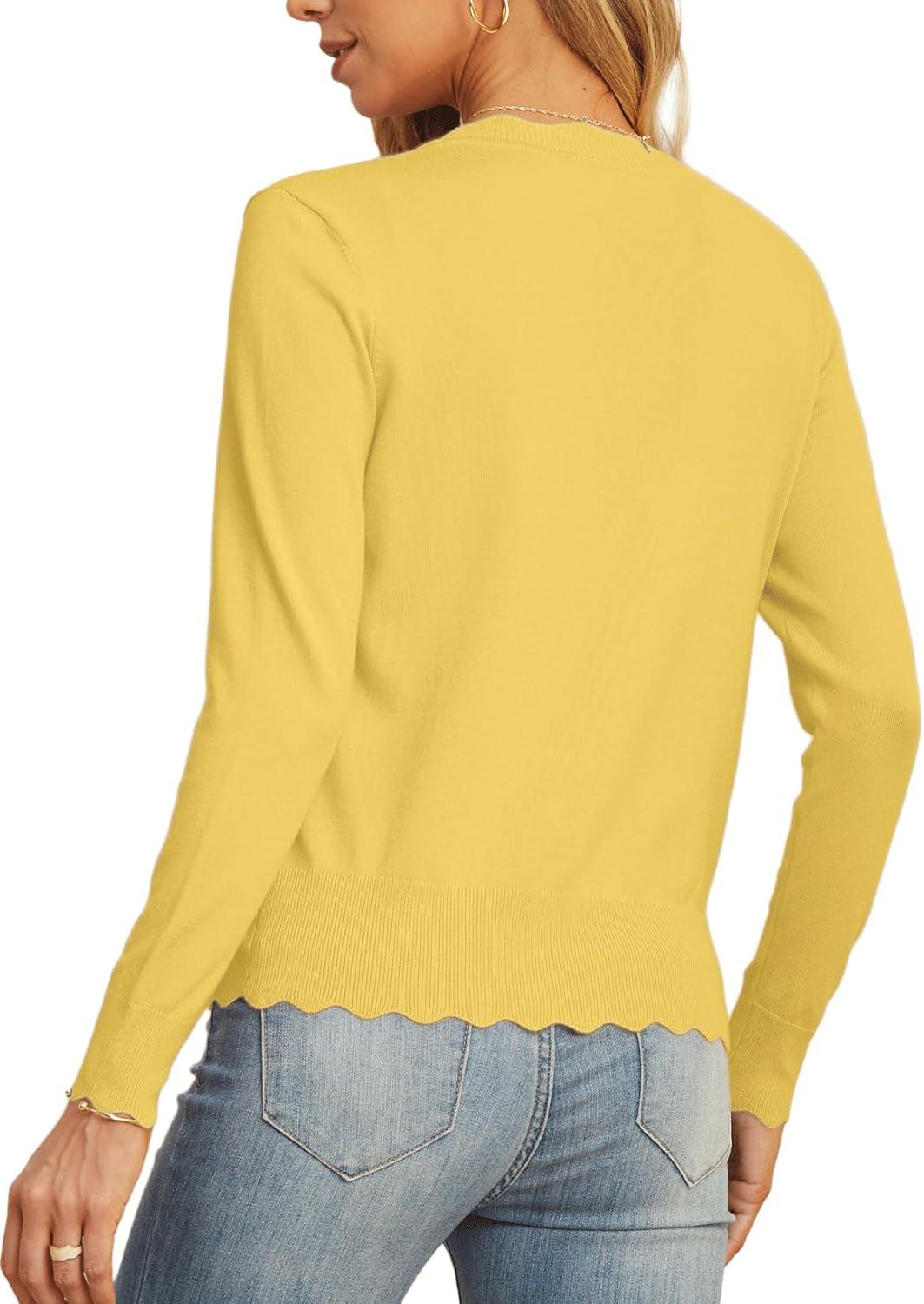 GRECERELLE Women’s Long Sleeve V-Neck Button Down Cardigan Knit Shrugs Sweater(Cheese Yellow)