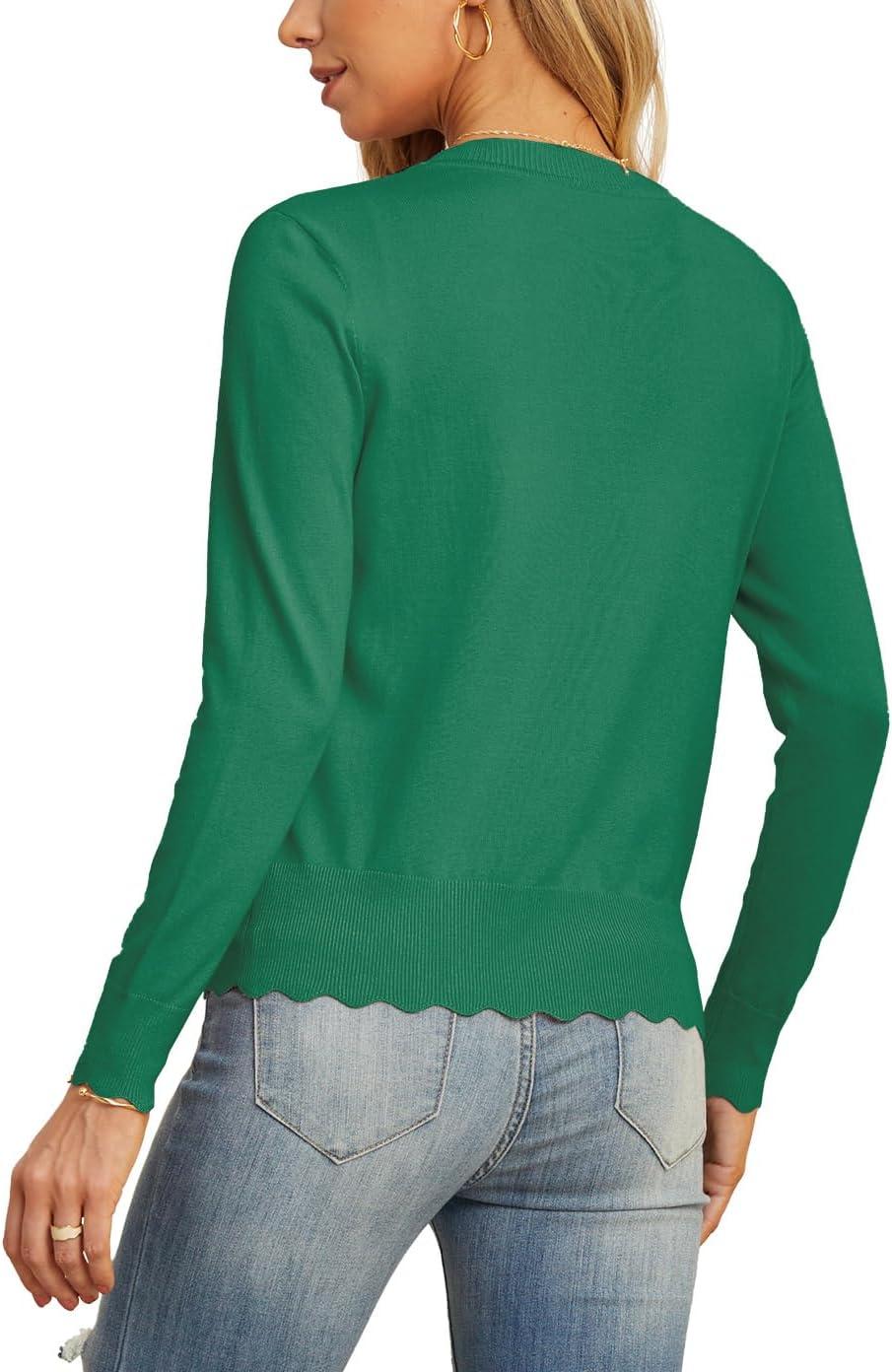 GRECERELLE Women’s Long Sleeve V-Neck Button Down Cardigan Knit Shrugs Sweater(Dark Green)
