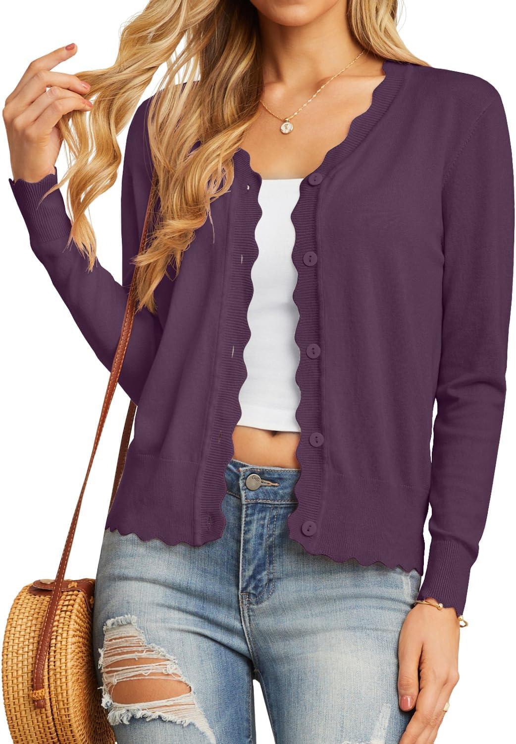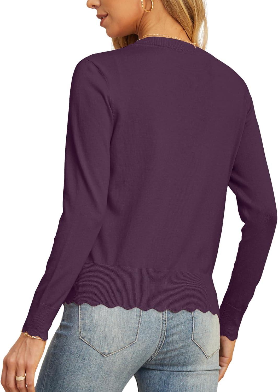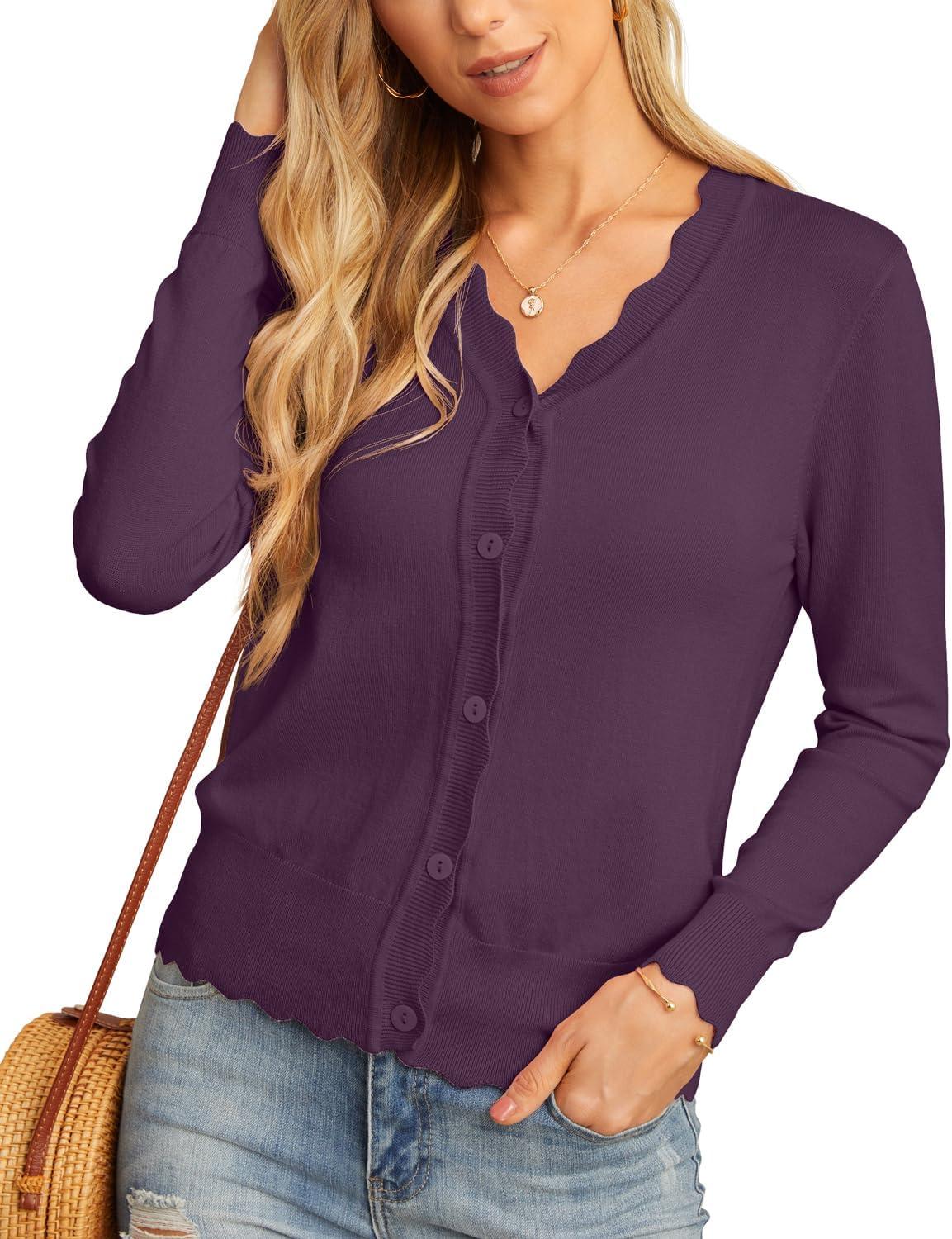 GRECERELLE Women’s Long Sleeve V-Neck Button Down Cardigan Knit Shrugs Sweater(Dark Purple Gray)