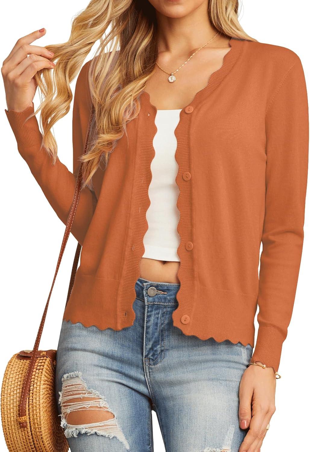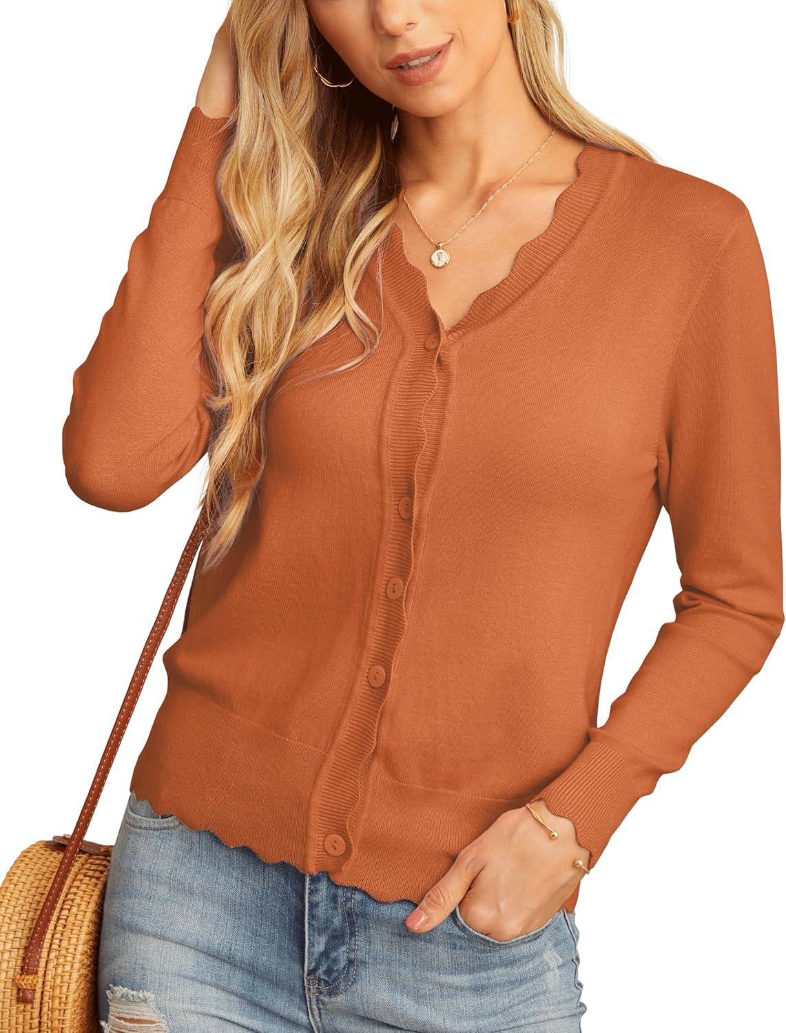 GRECERELLE Women's Cardigan Sweater Lightweight Long Sleeve V-Neck Button Down Knit Shrugs