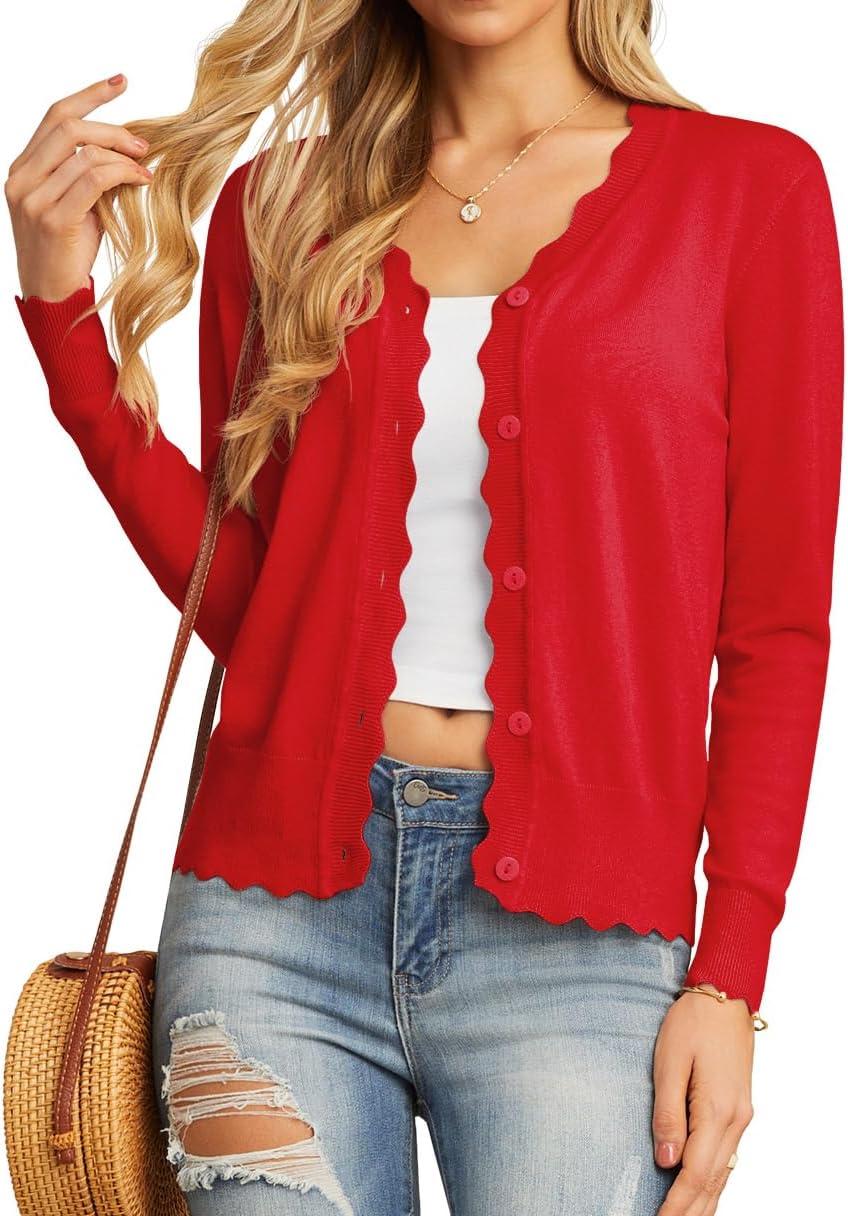 GRECERELLE Women’s Long Sleeve V-Neck Button Down Cardigan Knit Shrugs Sweater(Red)