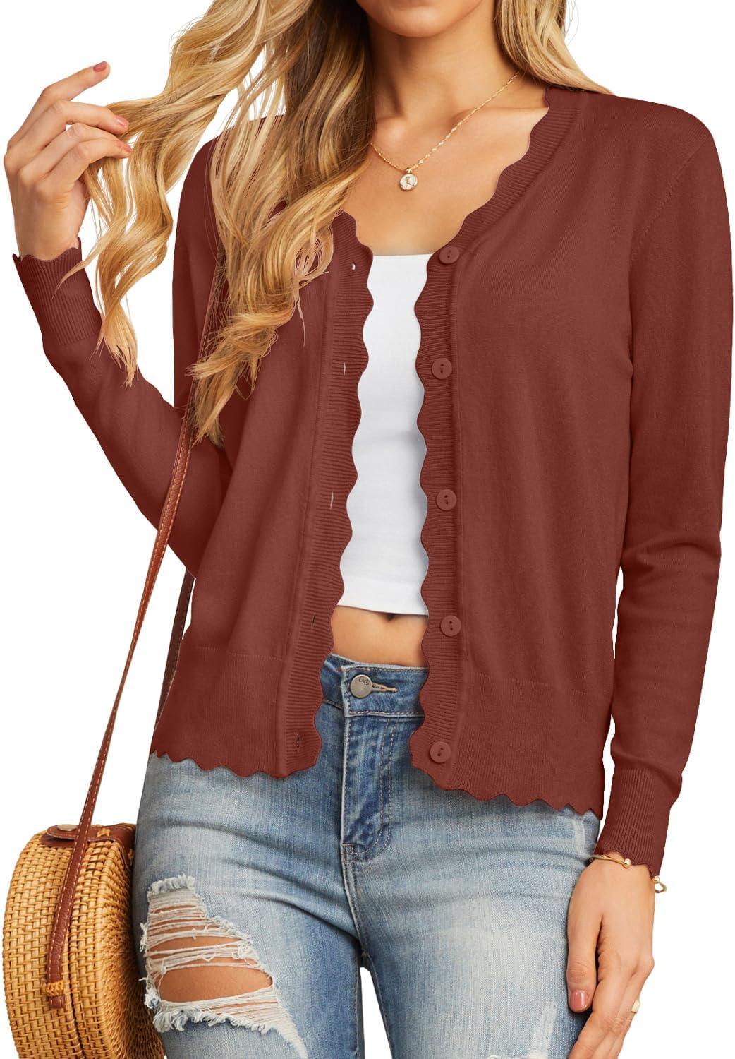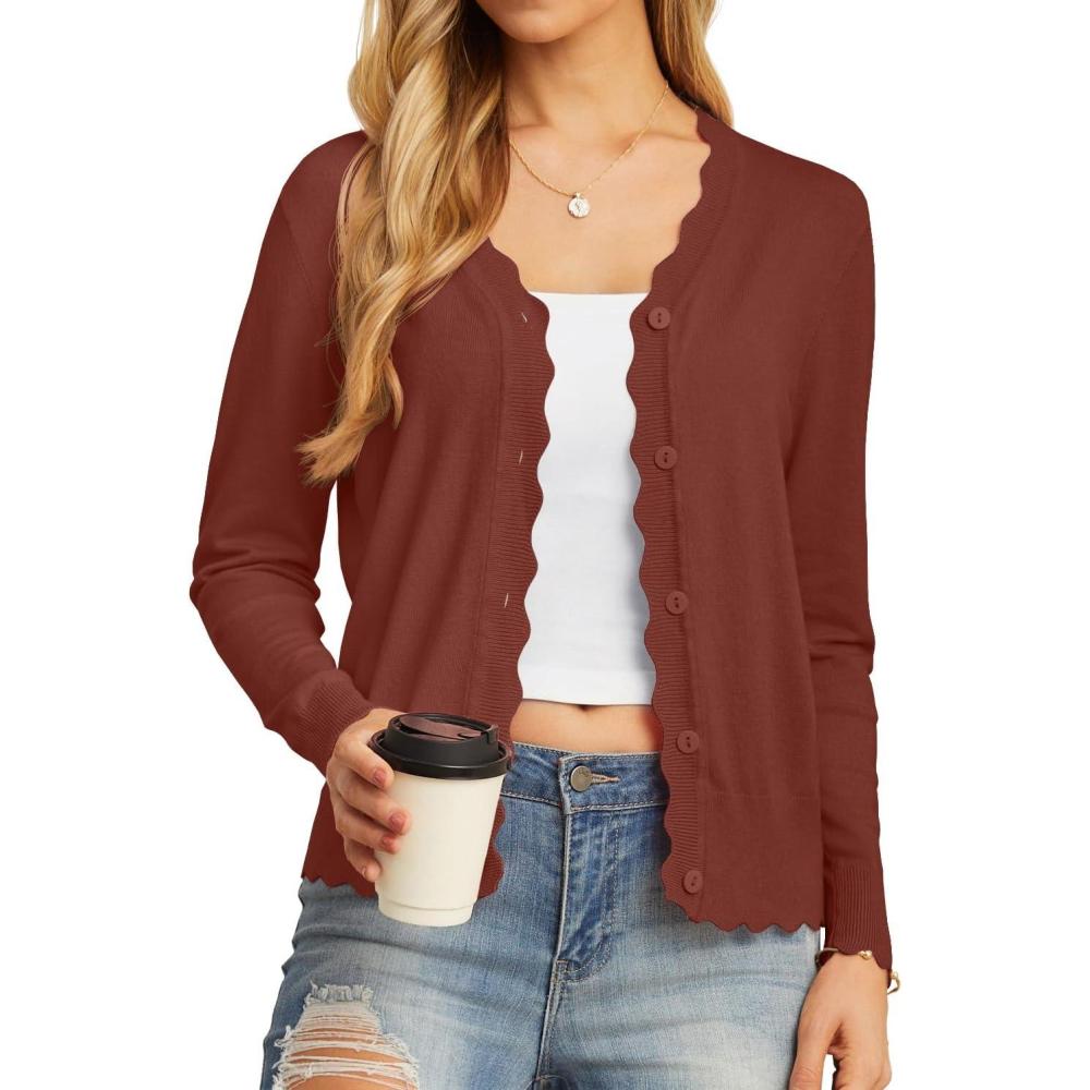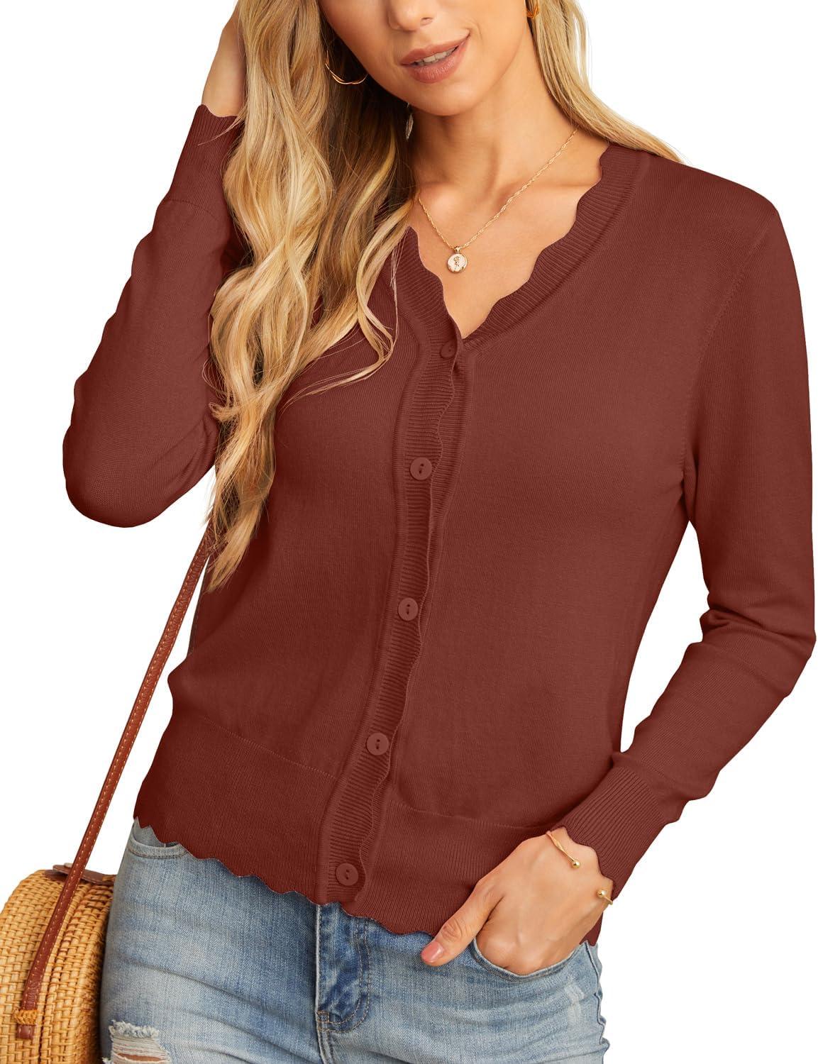 GRECERELLE Women's Cardigan Sweater Lightweight Long Sleeve V-Neck Button Down Knit Shrugs