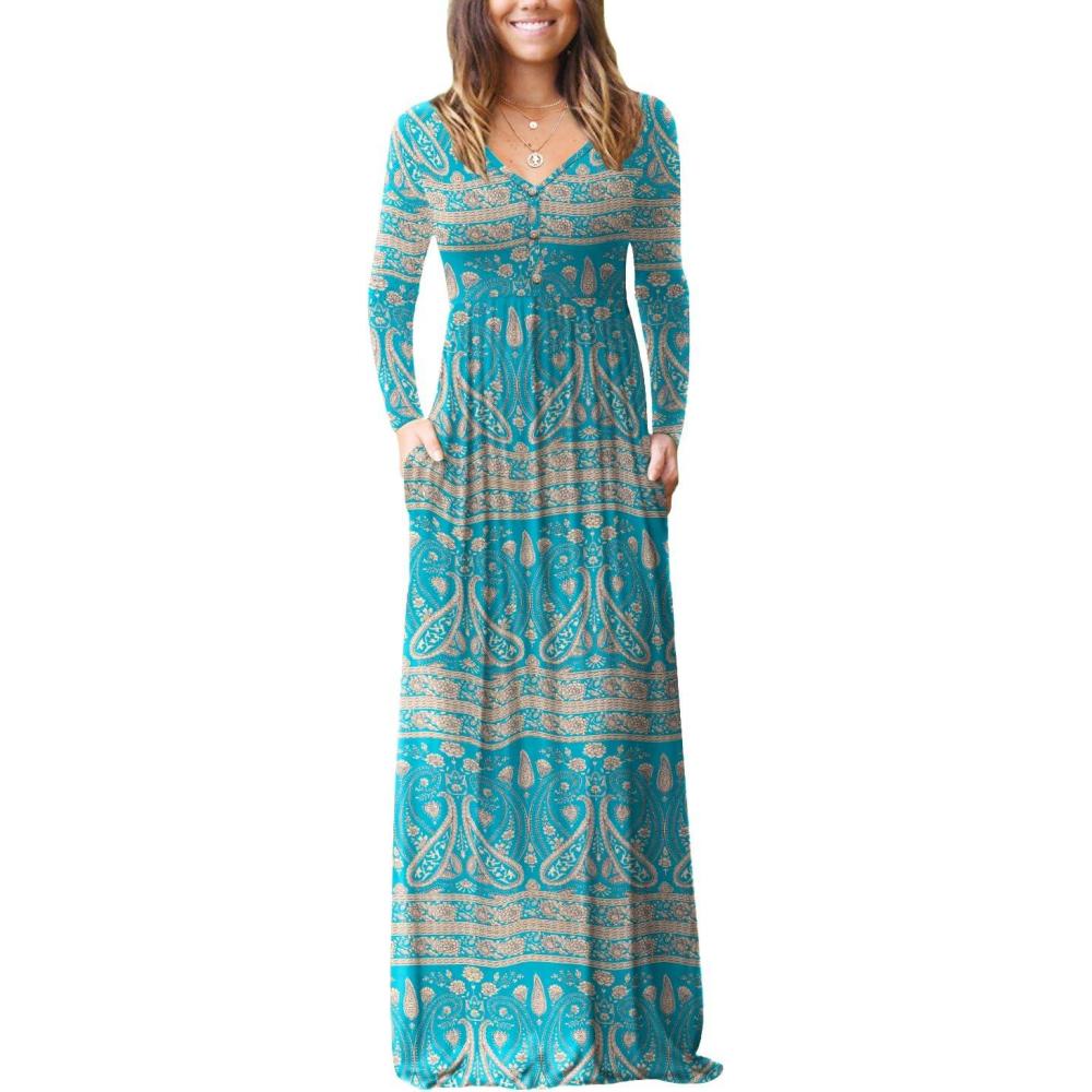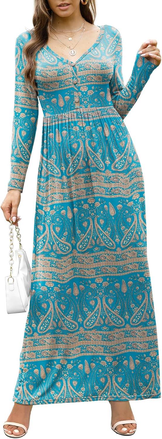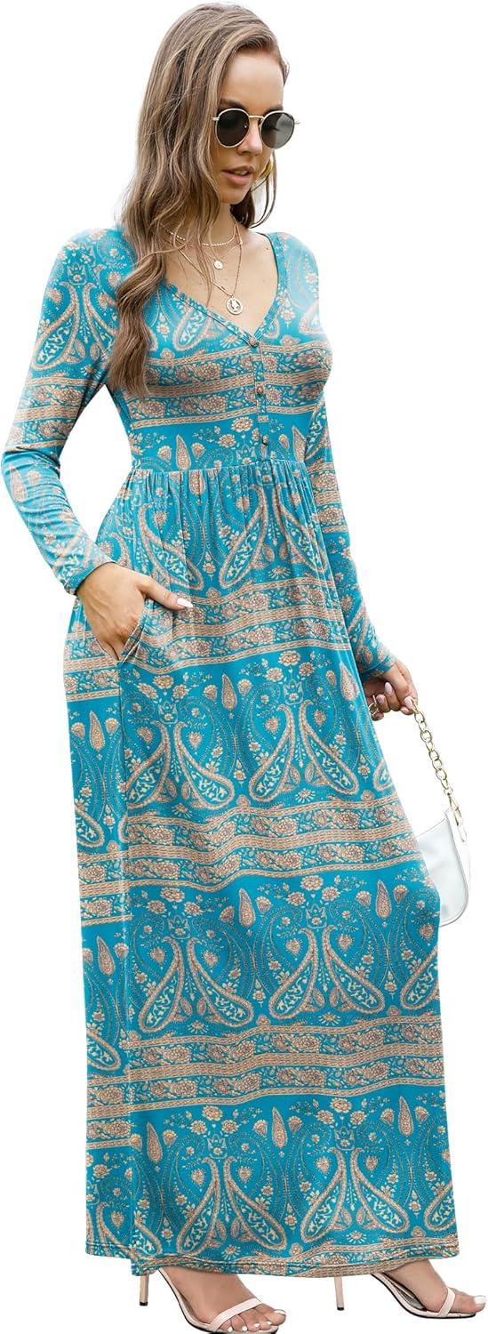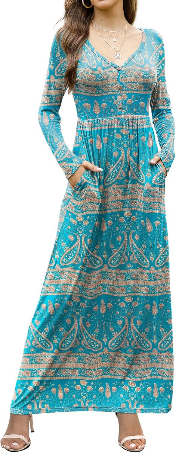 GRECERELLE Womens Long Sleeve V Neck Casual Button Maxi Dress 2025 with Pockets(Gray Azalea)