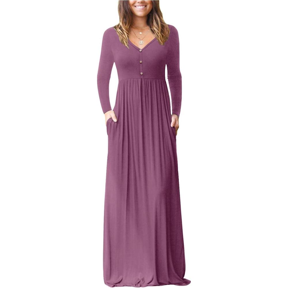 imageGRECERELLE Womens Long Sleeve V Neck Casual Button Maxi Dress 2025 with PocketsRed Gray