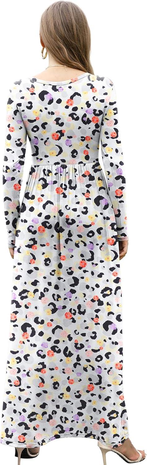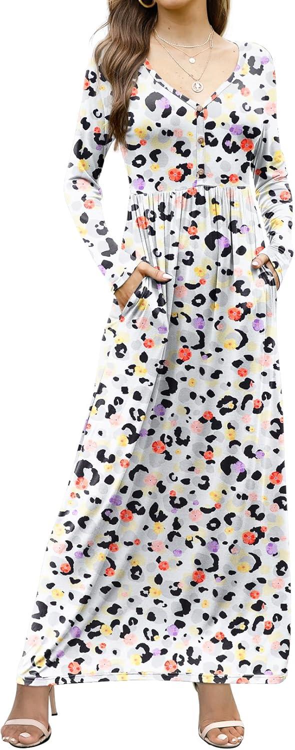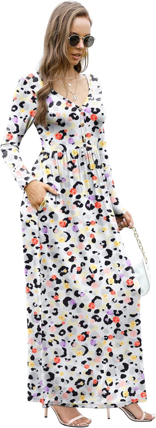 GRECERELLE Womens Long Sleeve V Neck Casual Button Maxi Dress 2025 with Pockets(Red Sunflower)
