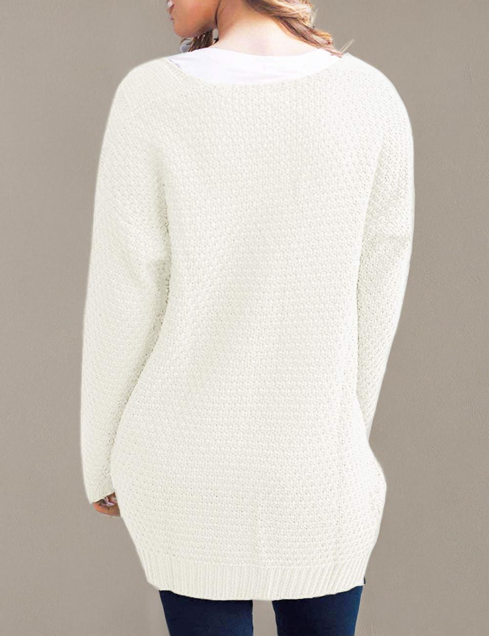 GRECERELLE Women's Loose Open Front Long Sleeve Chunky Knit Cable Cardigans Sweater with Pockets(05 White)
