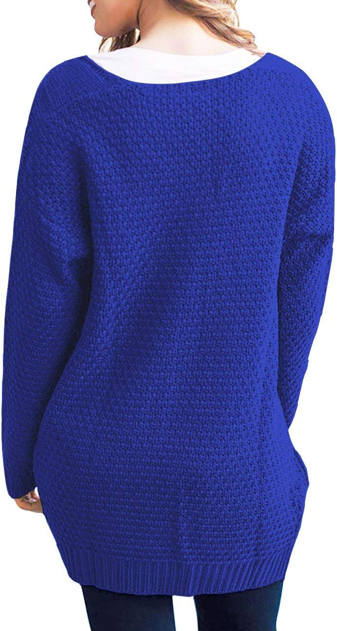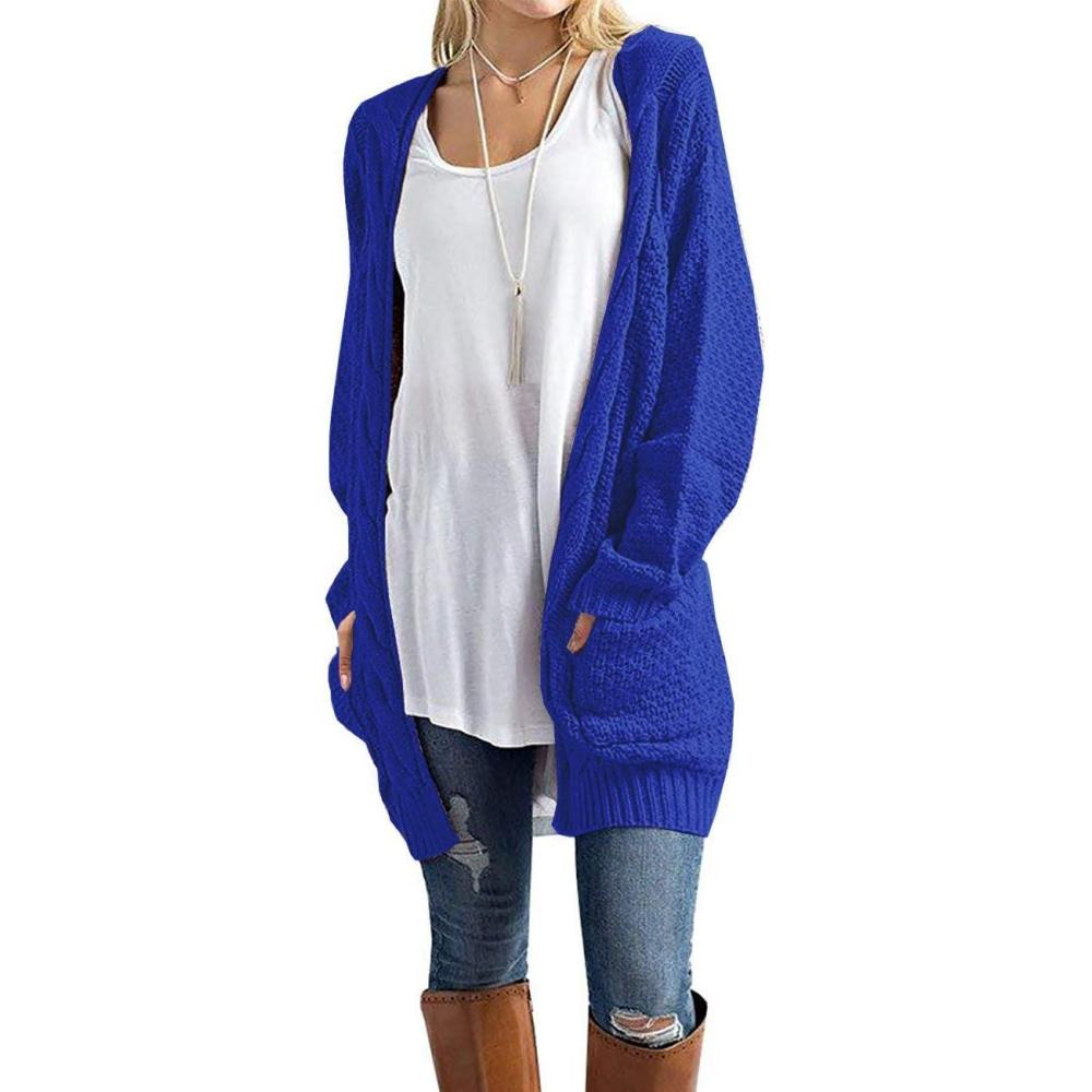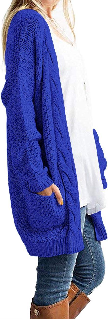 GRECERELLE Women’s Loose Open Front Long Sleeve Chunky Knit Cable Cardigans Sweater with Pockets(06 Royal Blue)