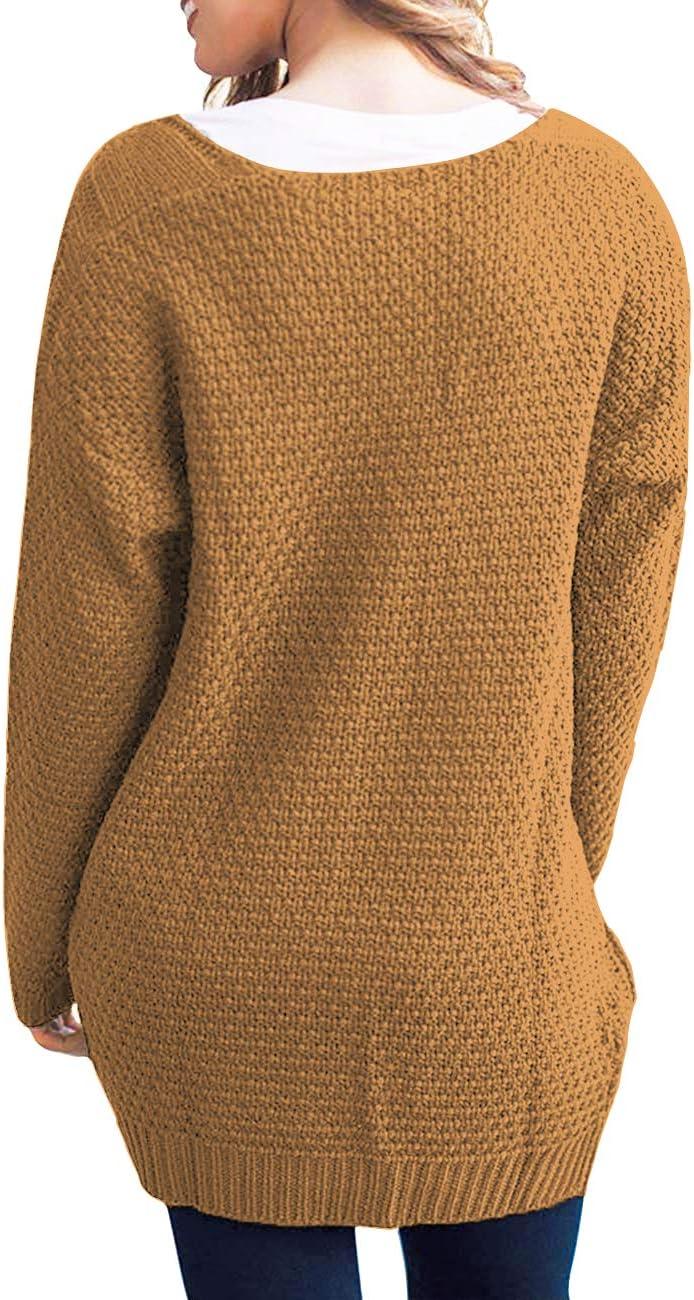 GRECERELLE Women's Loose Open Front Long Sleeve Solid Color Knit Cardigans Sweater Blouses With Packets