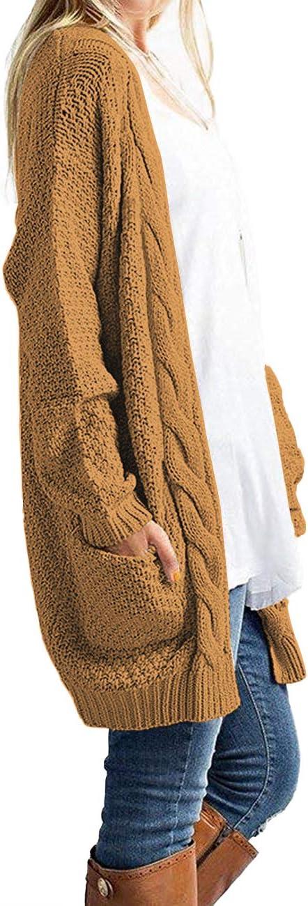 GRECERELLE Women’s Loose Open Front Long Sleeve Chunky Knit Cable Cardigans Sweater with Pockets(16 Blackish Green)