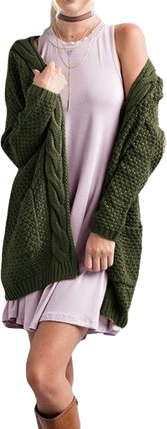 GRECERELLE Women’s Loose Open Front Long Sleeve Chunky Knit Cable Cardigans Sweater with Pockets(12 Dark Green)