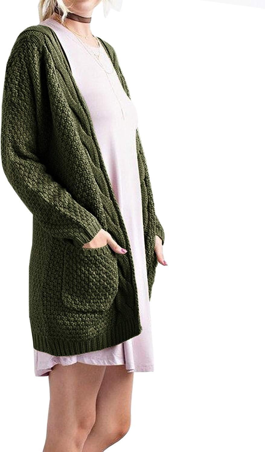 GRECERELLE Women's Loose Open Front Long Sleeve Solid Color Knit Cardigans Sweater Blouses With Packets